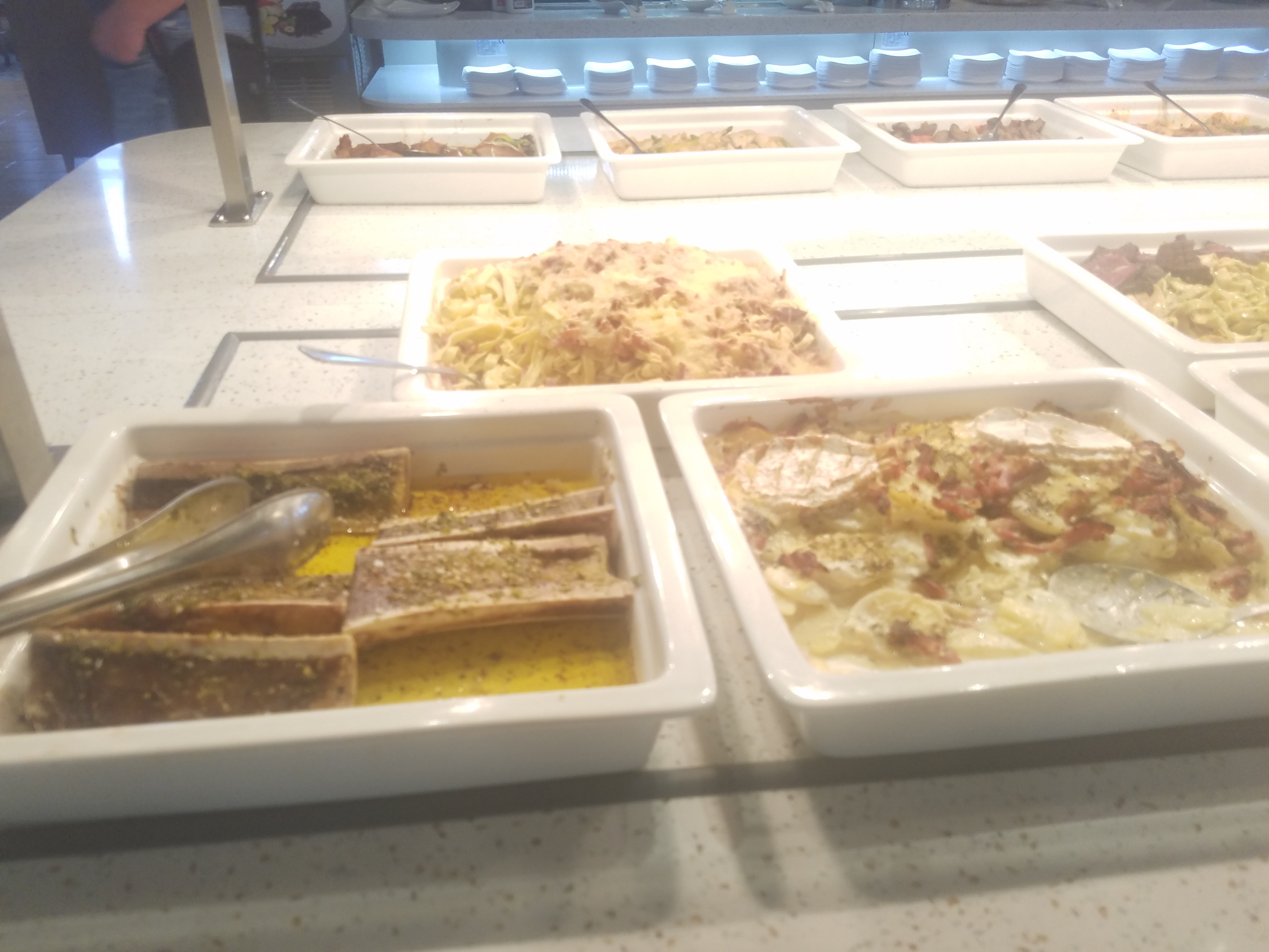 Déjà venue plusieurs fois sans soucis, c était cette fois ci la fois de trop! Le Dîner commençait plutôt bien avec les fruits de mer et sushi qui étaient frais. Par contre, les plats chauds et bien TOUT était froid ou à peine tiède... j en ai fait part au serveur/barmaid ( qui était très sympathique), ils avaient simplement oublier d allumer mes plaques chauffantes! Nous n avons donc pas manger de plats chauds! Arrivé au dessert, rebelote, une seule vitrine d allumé, résultat les desserts sur une était à température ambiante, les gâteaux à base de crème s effondrés sur eux-mêmes! Le gâteau à base de mousse ne ressemblait plus à rien! A la caisse, j ai dit a la personne au moment de payer que les plaques des desserts n etait pas allumé. Il n avait pas m air de bien comprendre le francais ou alors il s en fichait complètement ! De plus personne pour debarasser les assiettes, il faut debarasser nous memes !On ne reviendra pas, dommage!