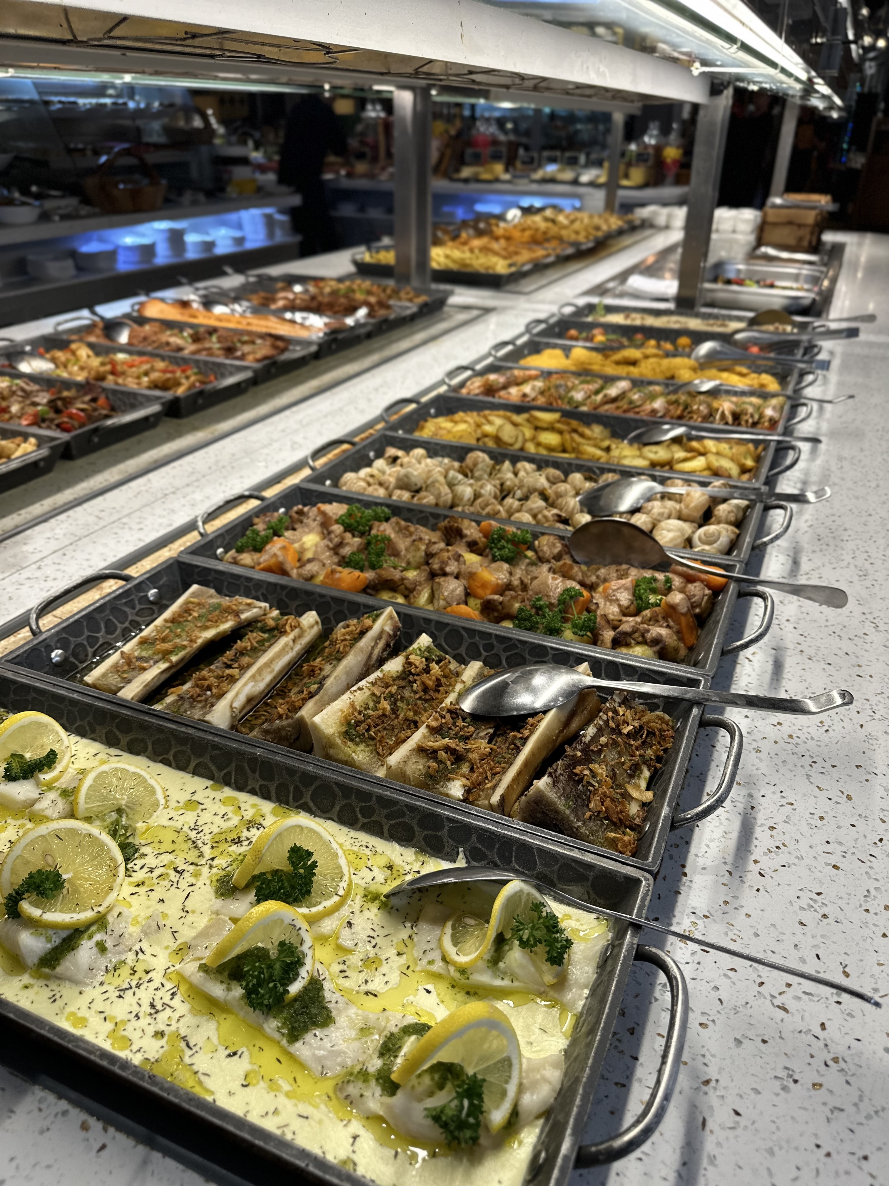 Un restaurant magnifique avec un grand choix d'entrées (charcuteries, foie gras, crustacés, coquillages, sushis...) et de desserts. Les plats chauds proposés sont succulents! Rien à redire, à découvrir !!!