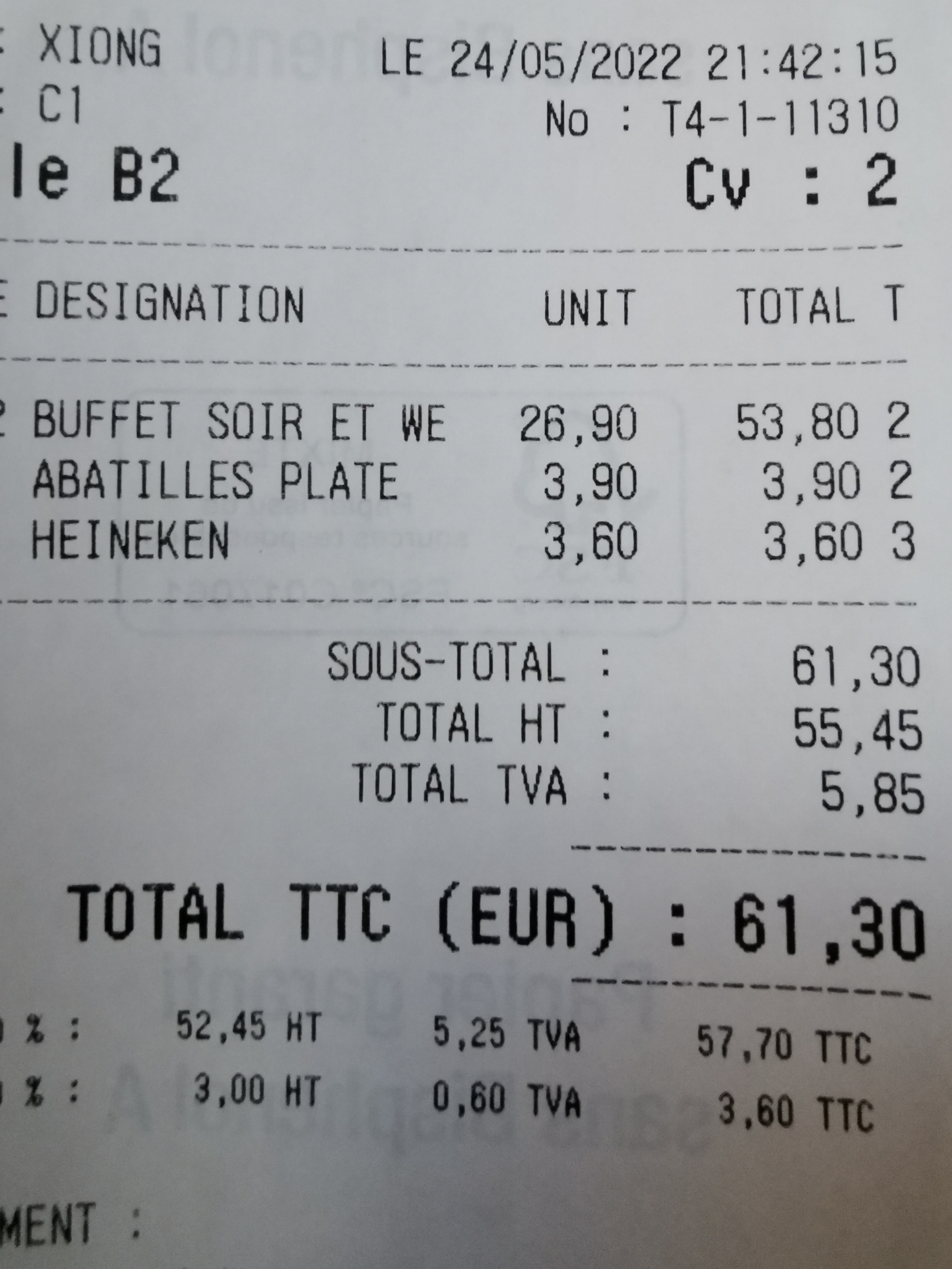 - ✔️ Dîner