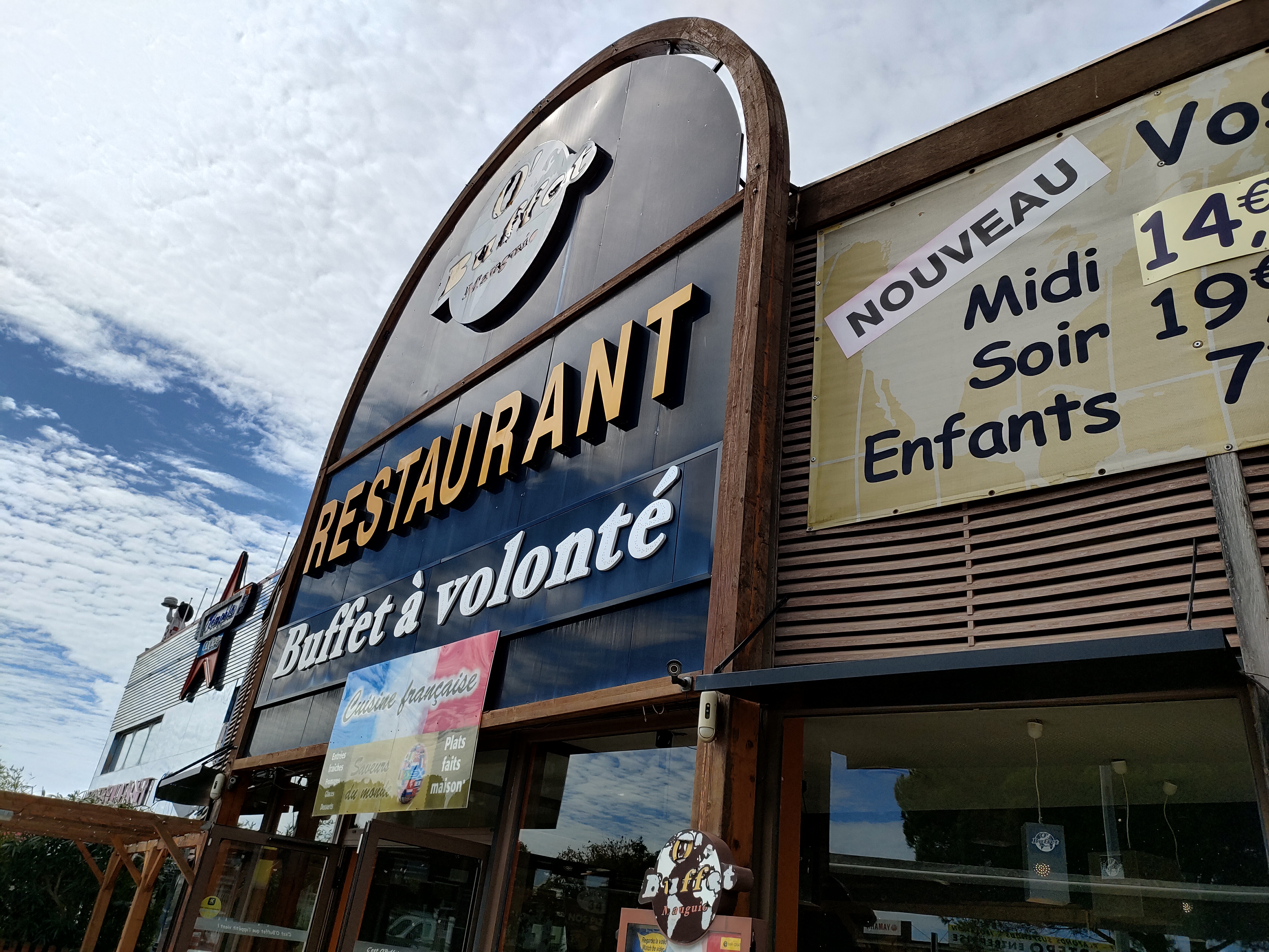 Pour les professionnels des buffet à volonté, ne vous attendez pas à un gigantesque buffets. C'est plus un buffet d'auberge de campagne, c'est sympa et sa change des buffets asiatique. Combient de personnes ce gare sur le parking du restaurant pour aller au restaurant d'à côté, sa n'a aucun sens et vous aviez aucun respect en vers ce restaurant. En tout cas c'était très bon, un grand merci au personnel. Personnel très aimable et gentille. Info : Accepte les chèques vacances