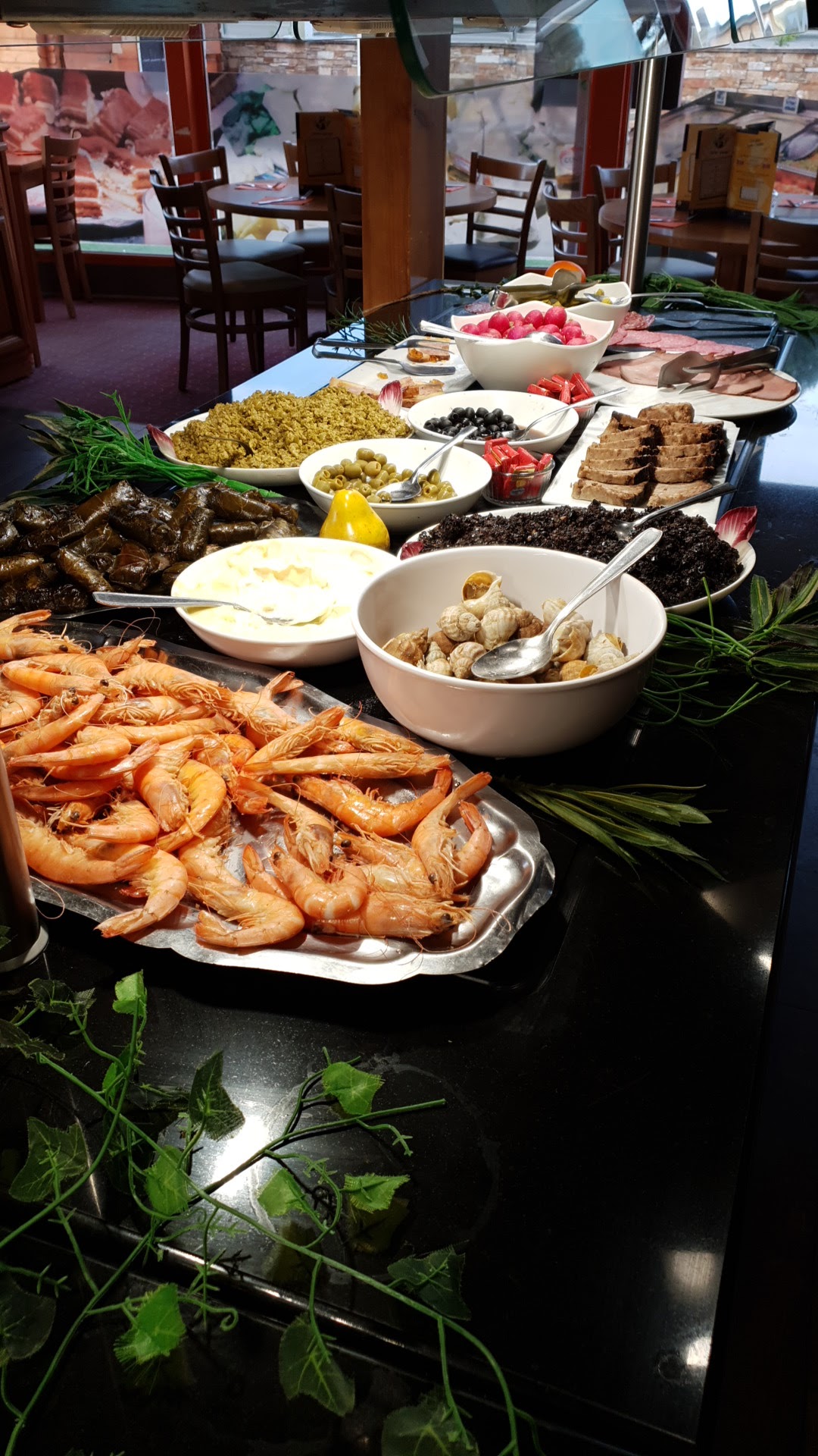 Pour un restaurant à volonté, on s’attendait à avoir plus de choix. Le peu de plats qu’il y’avait était juste « pas bon du tout ». Des Gambas pas frais, qu’on aurait dit bouillît…vraiment écœura en bouche. Des sauces à la crème avec un goût de lait qui a tourné…on dirait les restes des plats du midi qu’il ont réchauffé pour le soir. La seule chose qui était bon si je recherche du positif c’était le pain, que j’ai mangé avec de la salade verte. Et la serveuse était vraiment très sympathique et chaleureuse. J’étais aller y’a 6 ans dans ce restaurant c’était déjà pas terrible. Mais la c’était encore plus que décevant. J’y retournerai plus ça c’est sur!