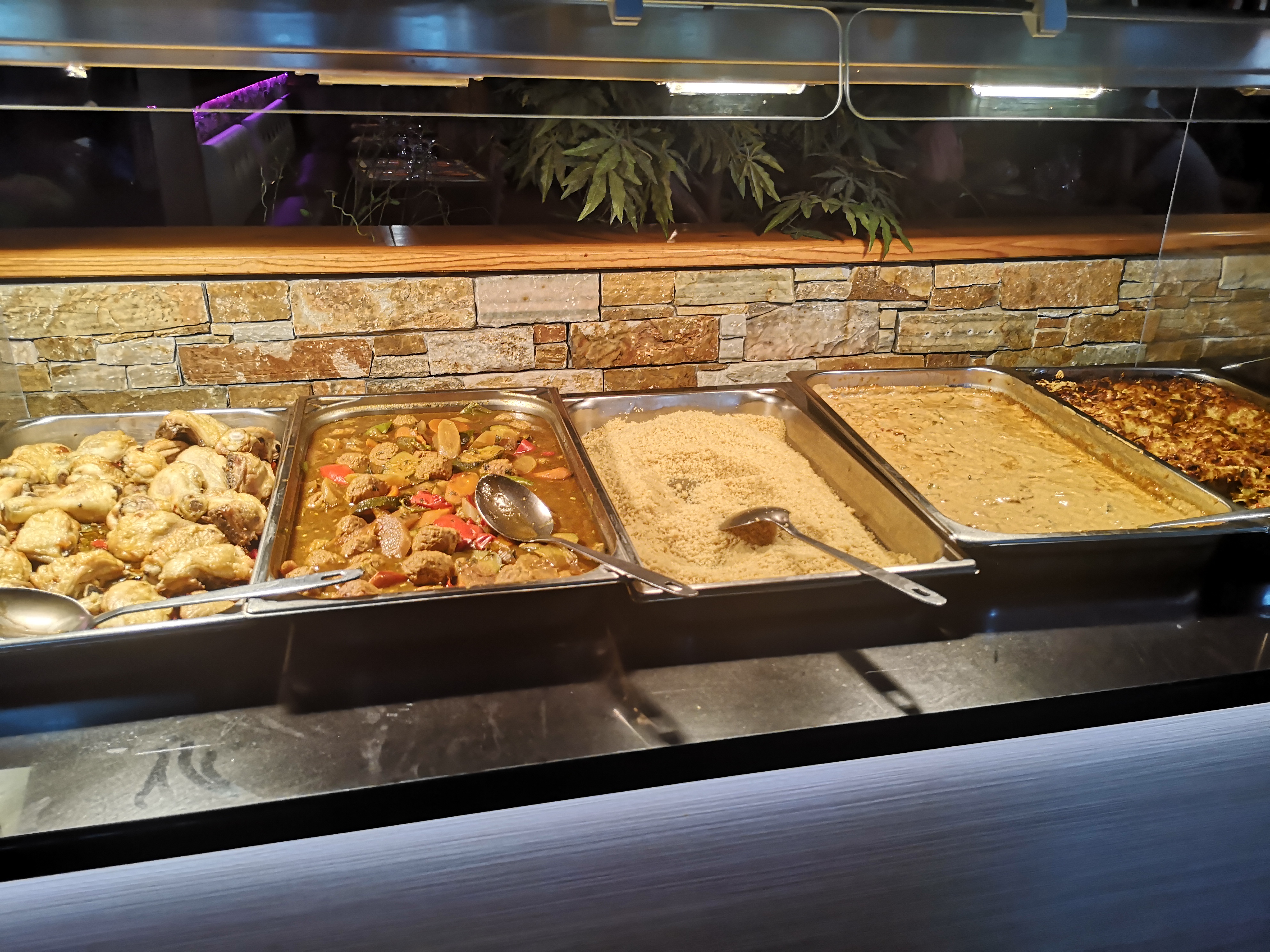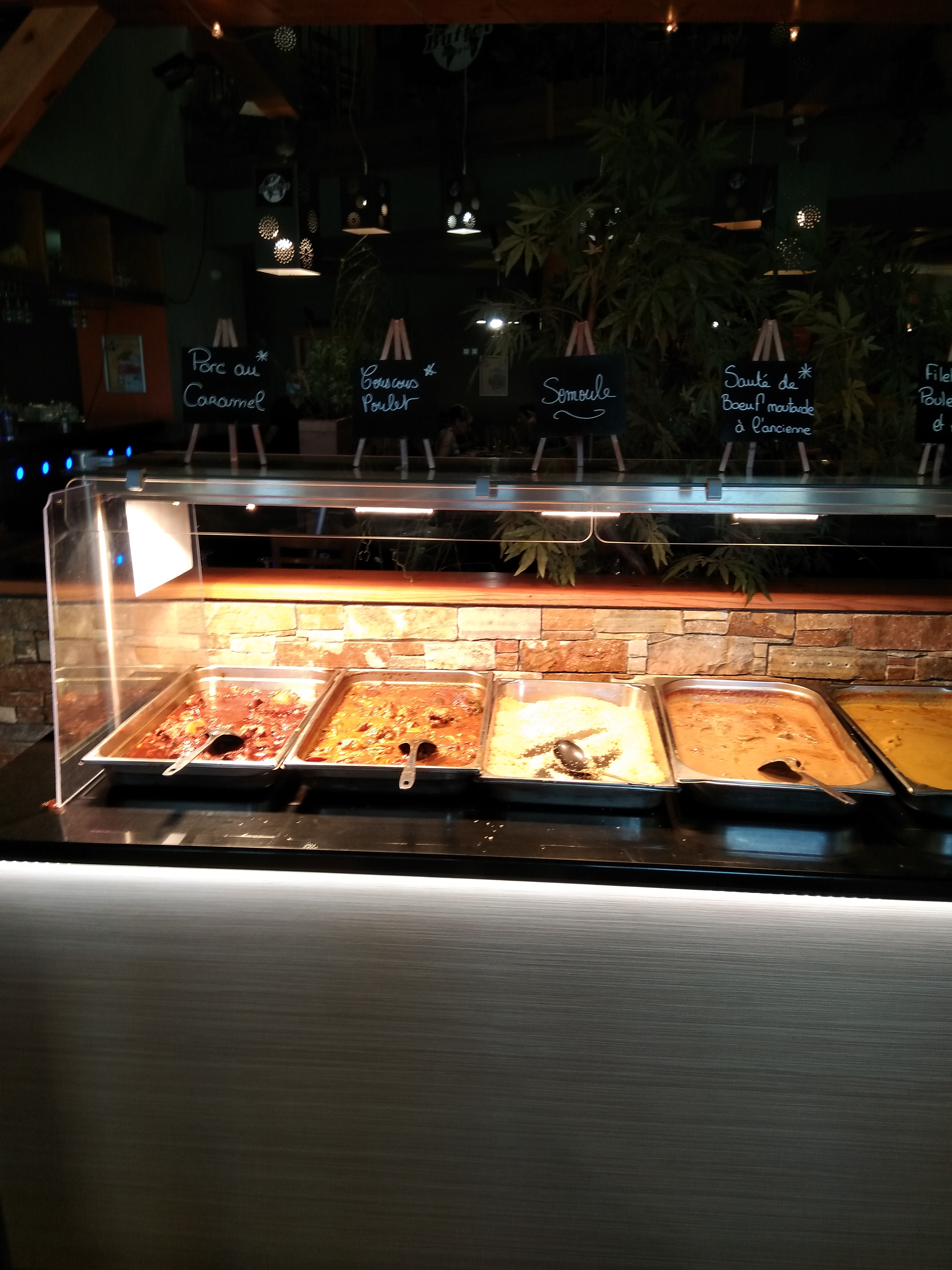 Pas de choix plats réchauffés Pourtant une habituée de ce buffet je vois la qualité se dégrader. Les plats ne sont pas frais du jour; parfois sur 3 soirs d'affilés les mêmes plats sont proposés. A chaque fois tajine semoule gambas. Pareil pour les accompagnements. Je suis très déçue je suis venue plusieurs fois et je suis repartie après avoir vu toujours les mêmes plats. Idem pour les desserts aucun fruit si ce n'est de temps à autre une salade de fruits pas frais! Les gâteaux sont gras. Manque d'hygiène à niveau des couverts également... Cela m'inquiète car si les mêmes plats sont présentés chaque soir cela signifie que ce sont des restes de la veille et avant veille. J'ai de gros doutes quant à la fraîcheur de le nourriture. Bref je ne compte pas revenir de si tôt !