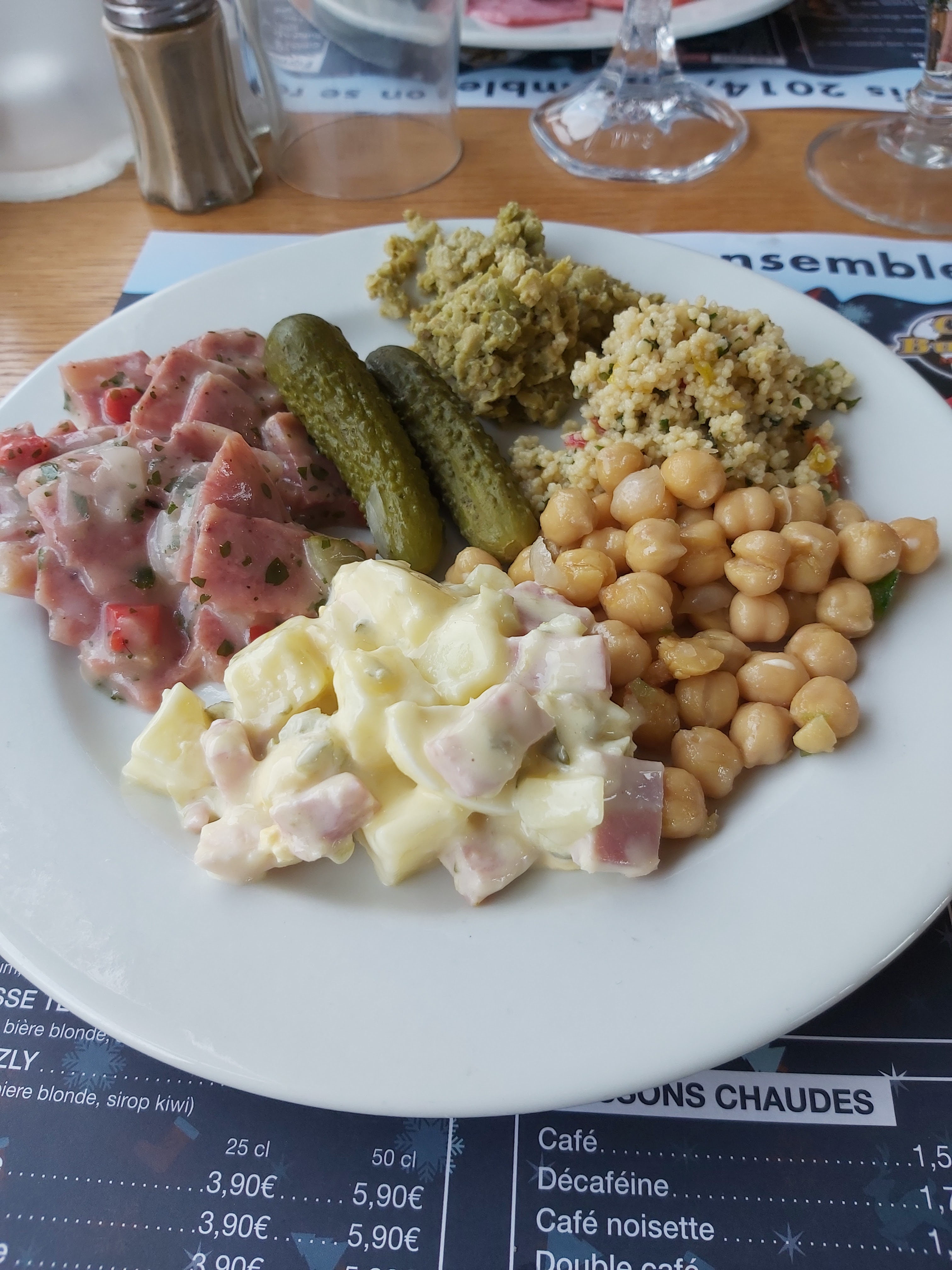 Nous y sommes aller en familles 2 fois en avril et mai 2022 pour un repas de midi la 1er fois j'ai pris 1 panna cotta fruit rouge le coulis fruit rouge piqué je ne l'ai donc pas mangé la 2eme fois je prend en entrée de la macédoine et du coleswa que je n'ai pas pue mange car la mayonnaise de la macédoine et la salade colewaw piqué ... En plat chaud rien a dire juste que czst toujours les même plats couscous, gardaient taureau , kebab ... bien domage car ke concert est bien mais je ne pense pas y revenir a cause de ses désagrément