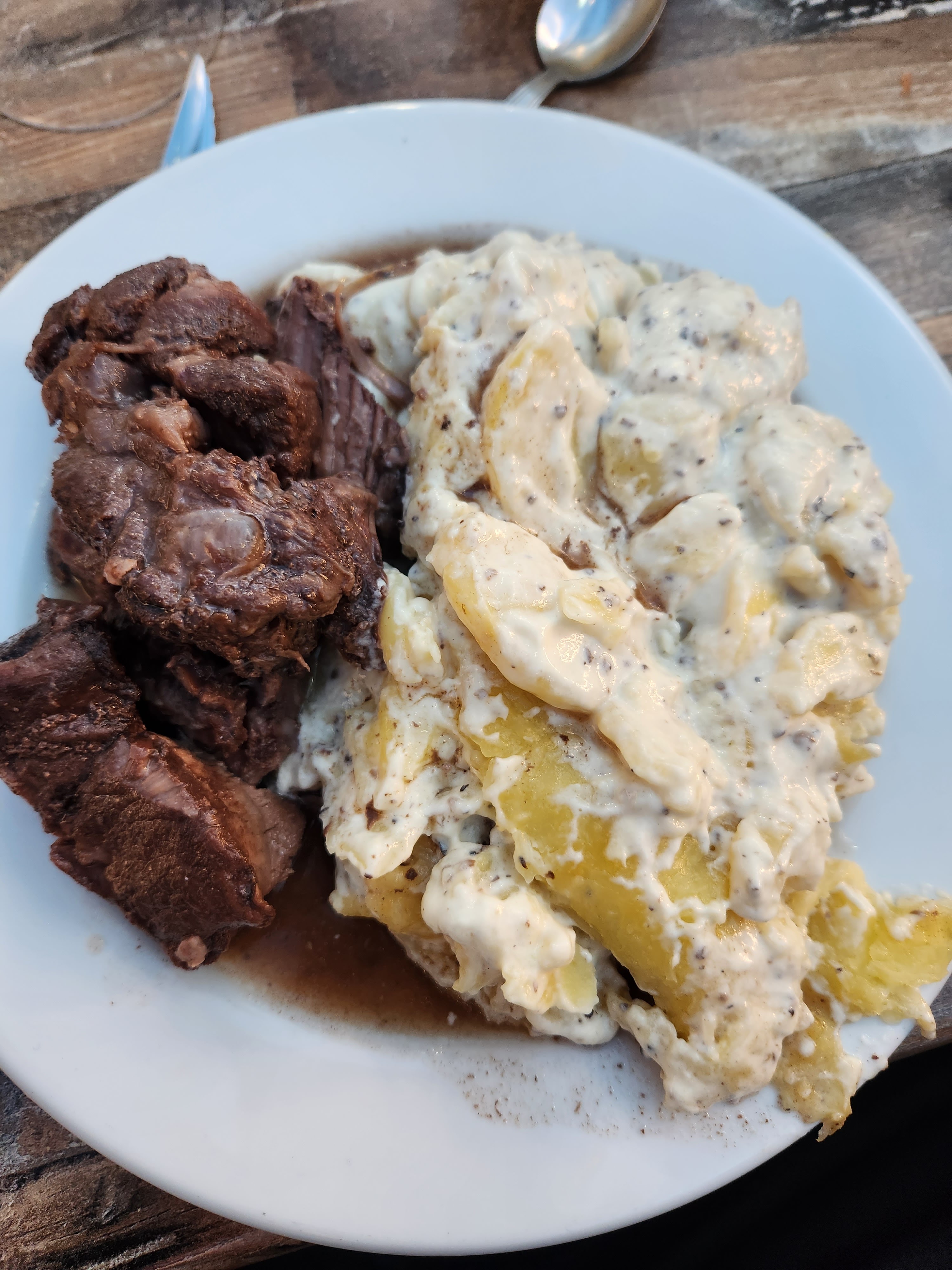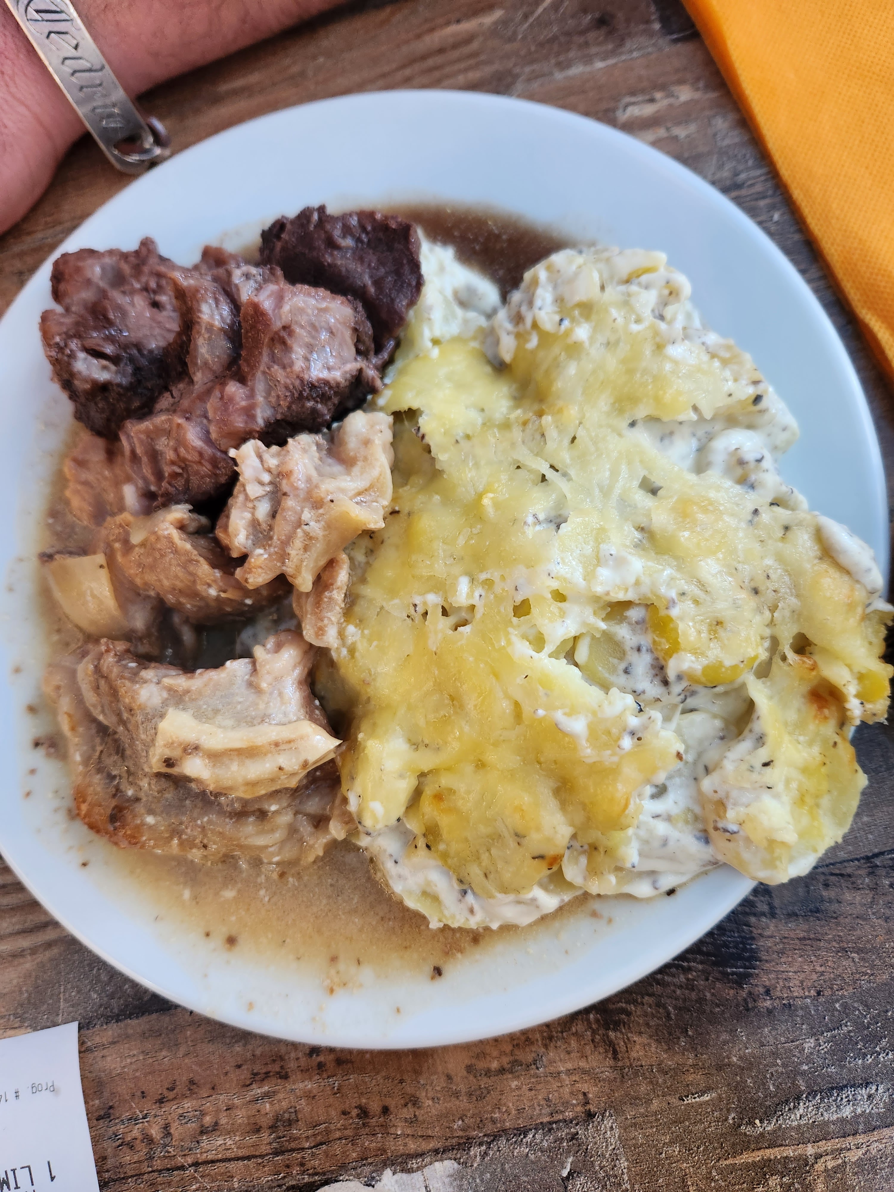 tout est bon de l'apéro au dessert c est un bonheur d y retourner chaque fois que possible déjà 4 fois en 1.mois et demi et c est pas fini ..... la nourriture est fraîche et l installation des lampes permettant au plat de rester bien chaud est superbe pas la peine de réchauffer . À goûter absolument le gratin dauphinois de la tuerie 🍴🔪🥄🍽👌👌👌