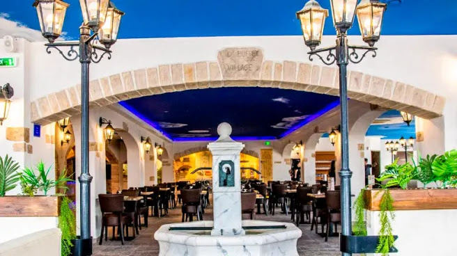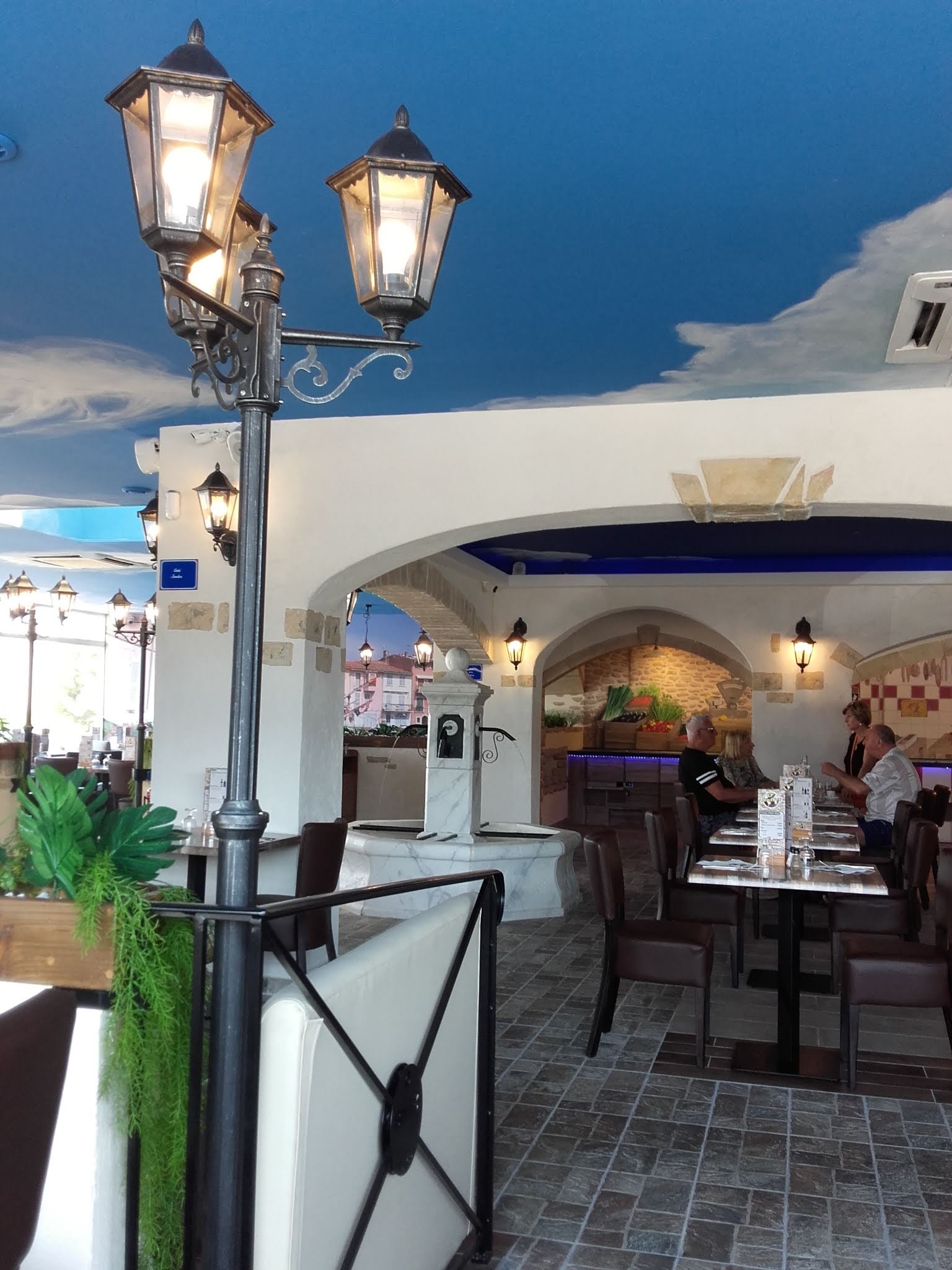 Un décor top et dépaysant on a la sensation d’être dans un petit village avec la fontaine au milieu de restaurant super . Le buffet est très complet tous le monde peux y manger beaucoup de choix chinois français italiens grillade il y en a pour tout le goût. Les desserts sont très bon aussi. Nouveau restaurant Très agréable à très vite