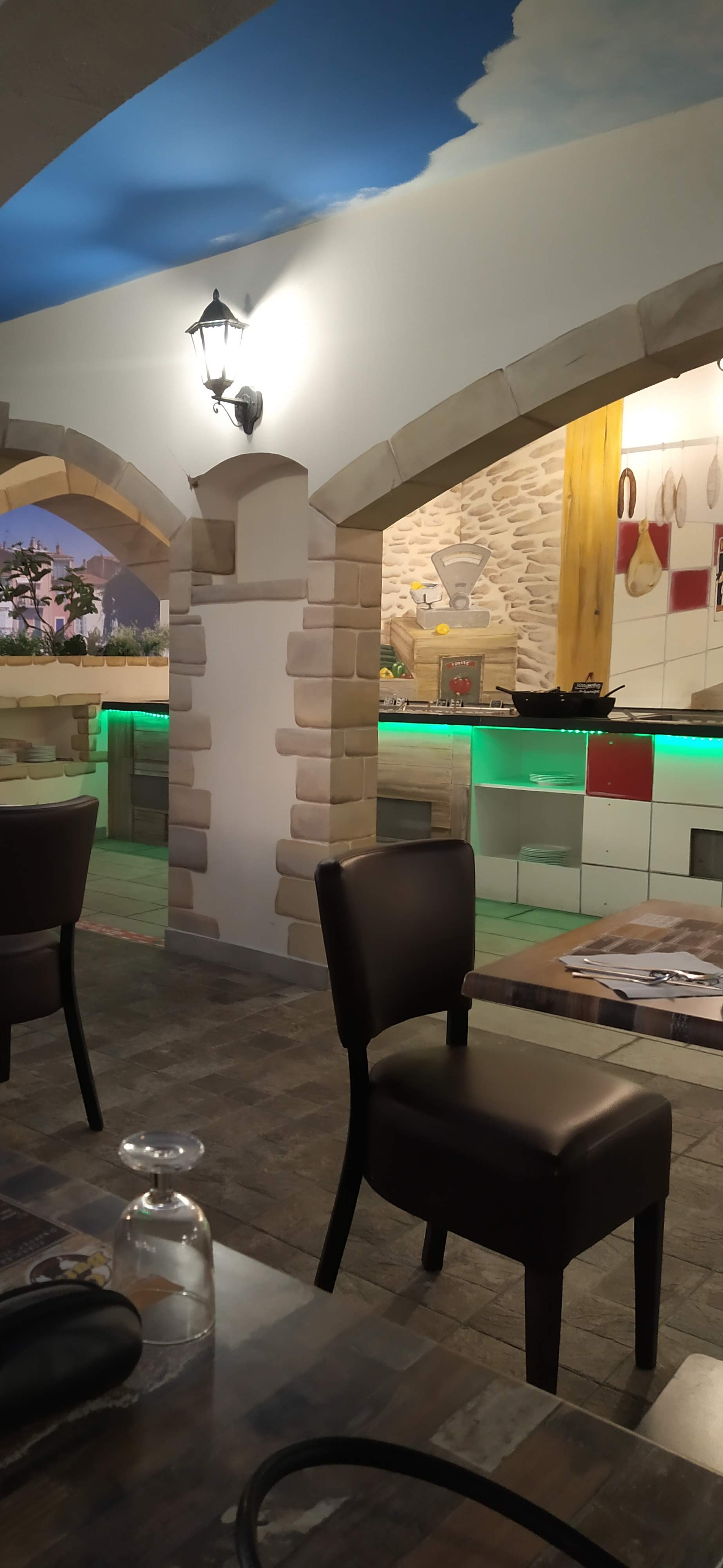 Malgré la décoration très jolie , le restaurant ma déçue . Il manque de choix , une seule grillade proposée et des plats chaud qui sont froid . Les pizzas en revanche sont très bonnes . Le dessert est ce qui me déçoit le plus , fromage dur et immangeable et surtout comment peut t'on appeler une glace gout Nutella quand celle ci a gout de chocolat simple que l'on retrouve dans les cantines scolaires !! Je trouve cela inadmissible de mentir sur son produit , surtout que les enfants sont déçus par la suite . Les 2 étoiles sont pour la déco et les pizzas . Vous savez des à présent sur quoi s’améliorer...