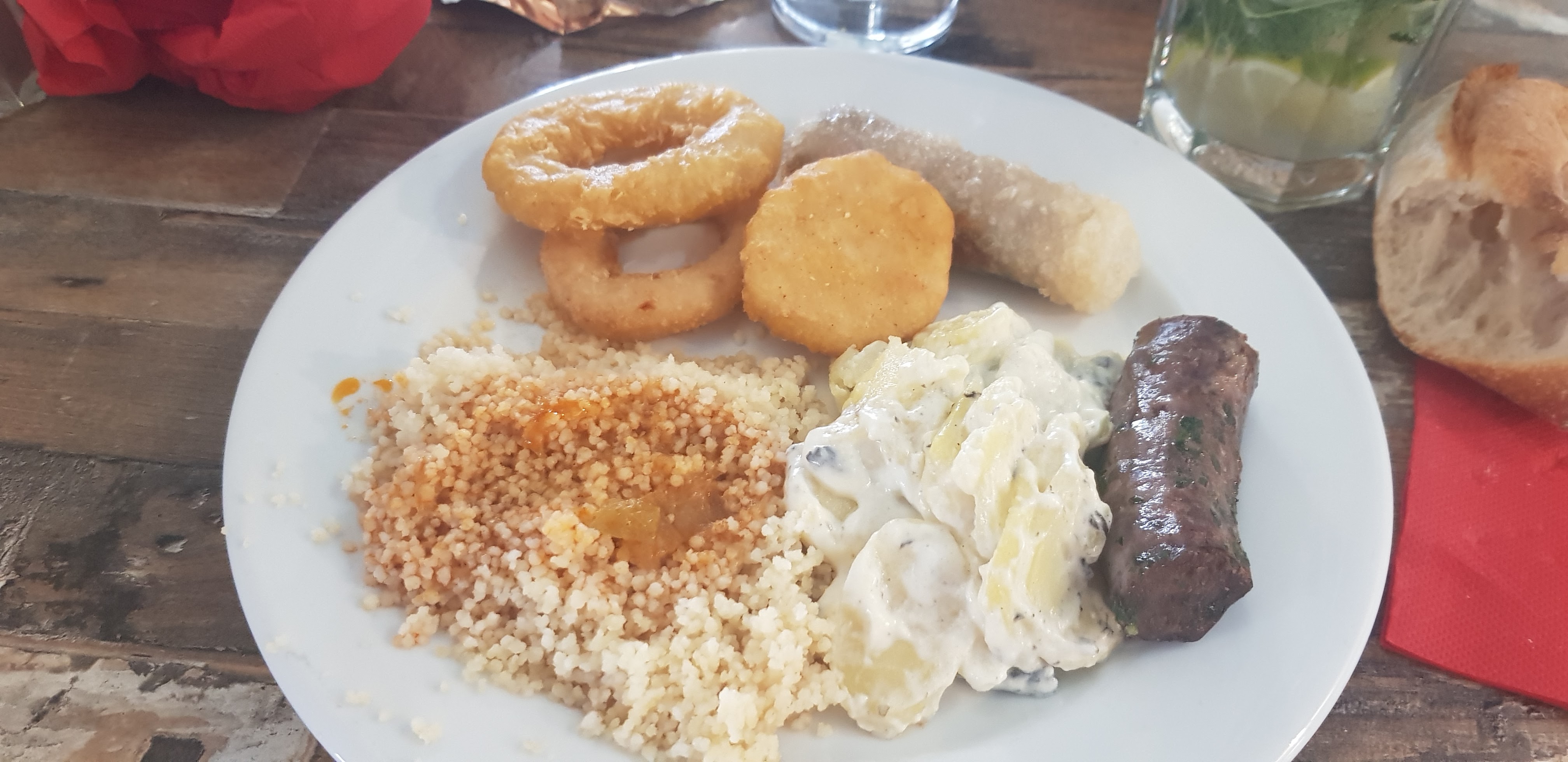 Nous avons fait une petite soirée entre amis j'ai mangé un couscous super bon. Et plein de bonnes choses à volonté vraiment pas cher. On reviendra