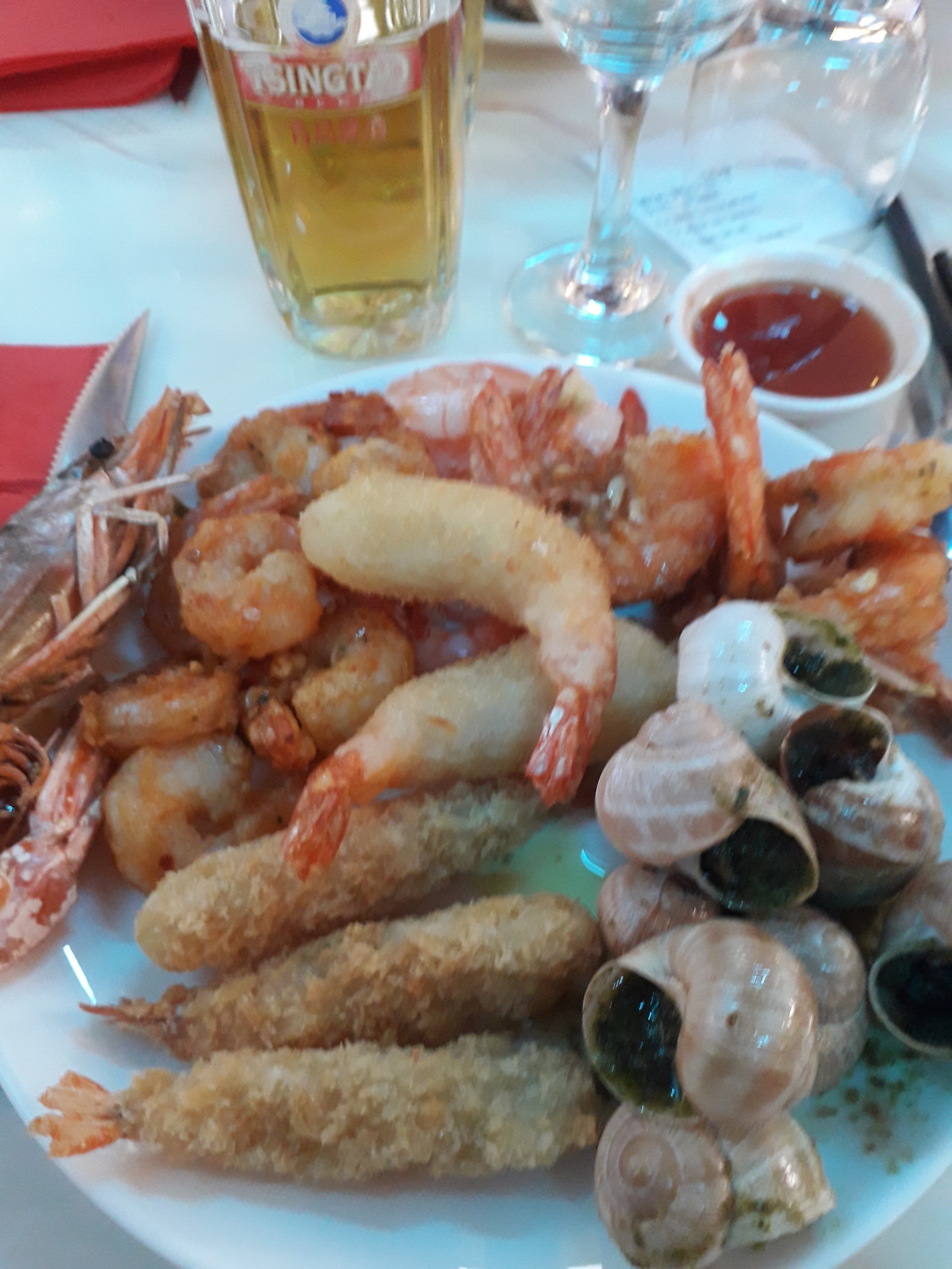 Je vais dans ce restaurant, tous les 15 jours 3 semaines pour faire plaisir à ma sœur. J'adore les fruits de mer, c'est ce que je prends toujours ,mais il faut faire attention. J'ai pris des boulots, des crevettes des gambas. une partie à la poubelle de santé mauvais. C'est vrai qui'ils vont pas sentir les crevettes une par une ni les boulot. J'ai mangé des escargots, pour une fois, ils étaient bon. Car sous les lampes ,c'est souvent sec. Par contre, je prends souvent des champignons, ils sont très bons . La viande est bonne, légumes sont bon. Les desserts, ne sont pas fait maison. c'est dommage,c'est bons quand même. les fruits sont délicieux, surtout les fraises et les framboises. J'aime bien prendre de la glace à Elle n'est pas mauvaise non plus. Par contre la serveuse, qui est autour des glaces. Elle doit rire que quand elle se brûle. Elle fait une drôle de tête, elle fais la gueule à tout le monde. Elle devrait être en retraite, ça prend la place d'une jeune qui voudrait travailler. Les autres serveurs et serveuse sont sympas.