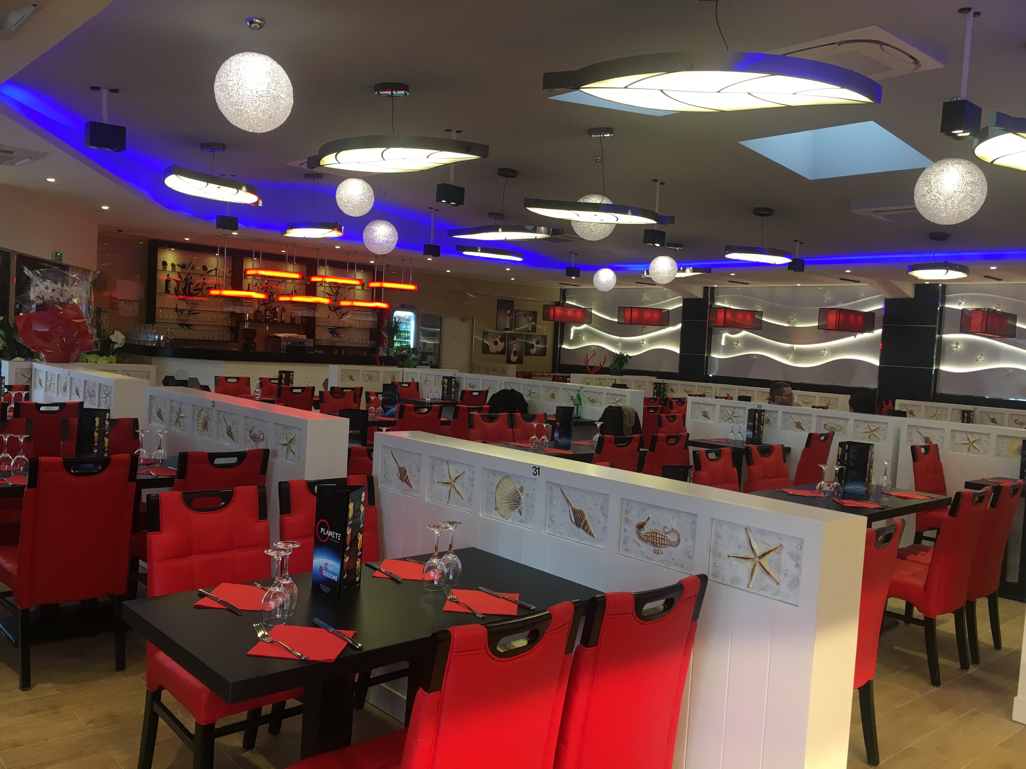Déco un peu moderne, un buffet immense quelques crustacés. Mes filles se sont réglées. Je recommande