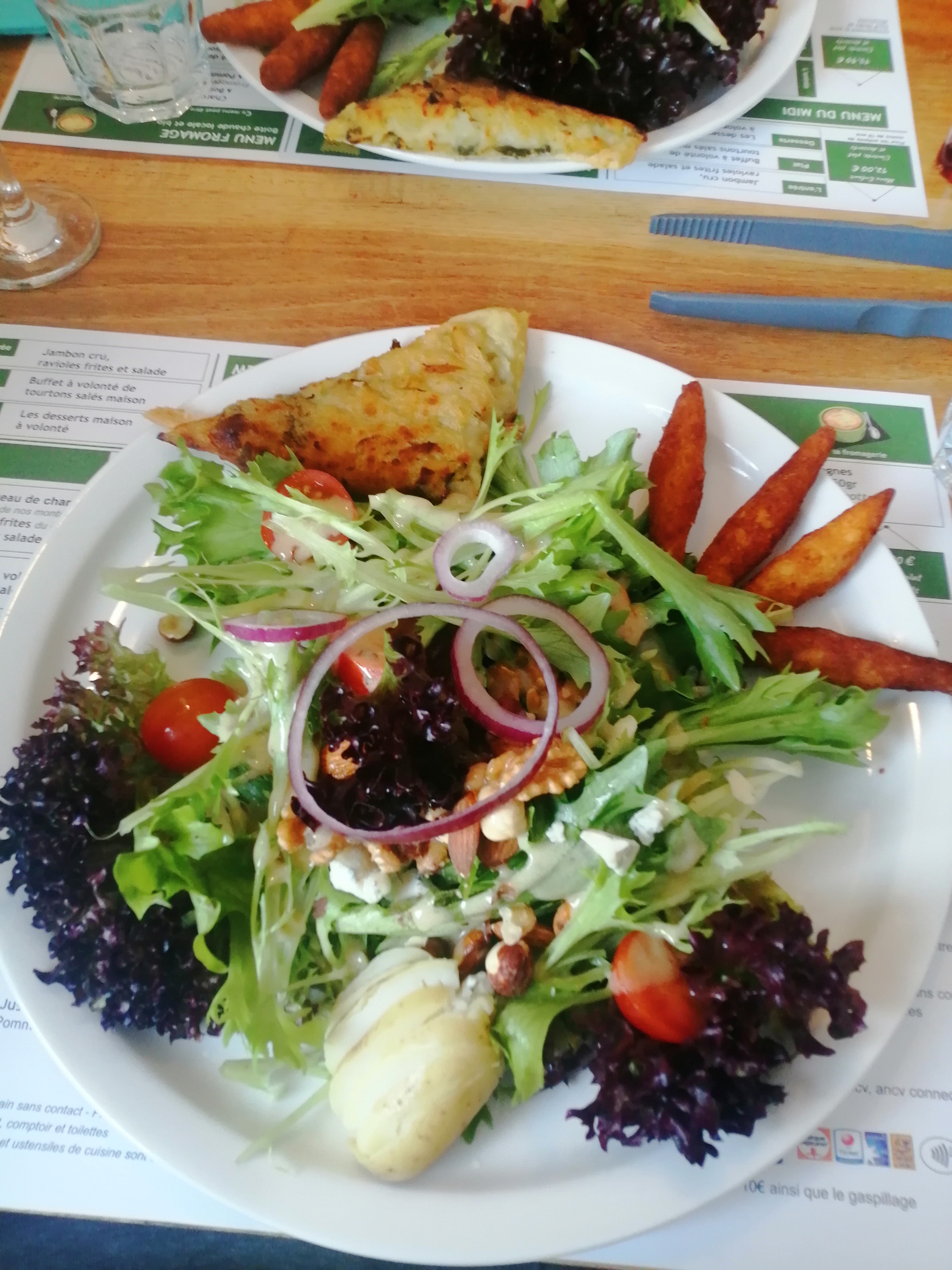 Les produits sont frais et de très bonne qualité y compris salade tomate. Excellent rapport qualite prix car plat / dessert / tourtons a volonté pour 21€ ! Gros bémol pour la taille du plat d'oreilles d'ane qui a rapeticit par rapport à notre dernière expérience et pour le buffet de tourtons vide pour la moitié des options(21h30 fin de service). On aurait apprécié au moins une demande de ce qu'on souhaitait pour éviter le gaspillage tout en profita.t de la diversité d'un buffet... Experience un peu décevante quand on connait l'avant genereux mais qui vaut encore le détour !