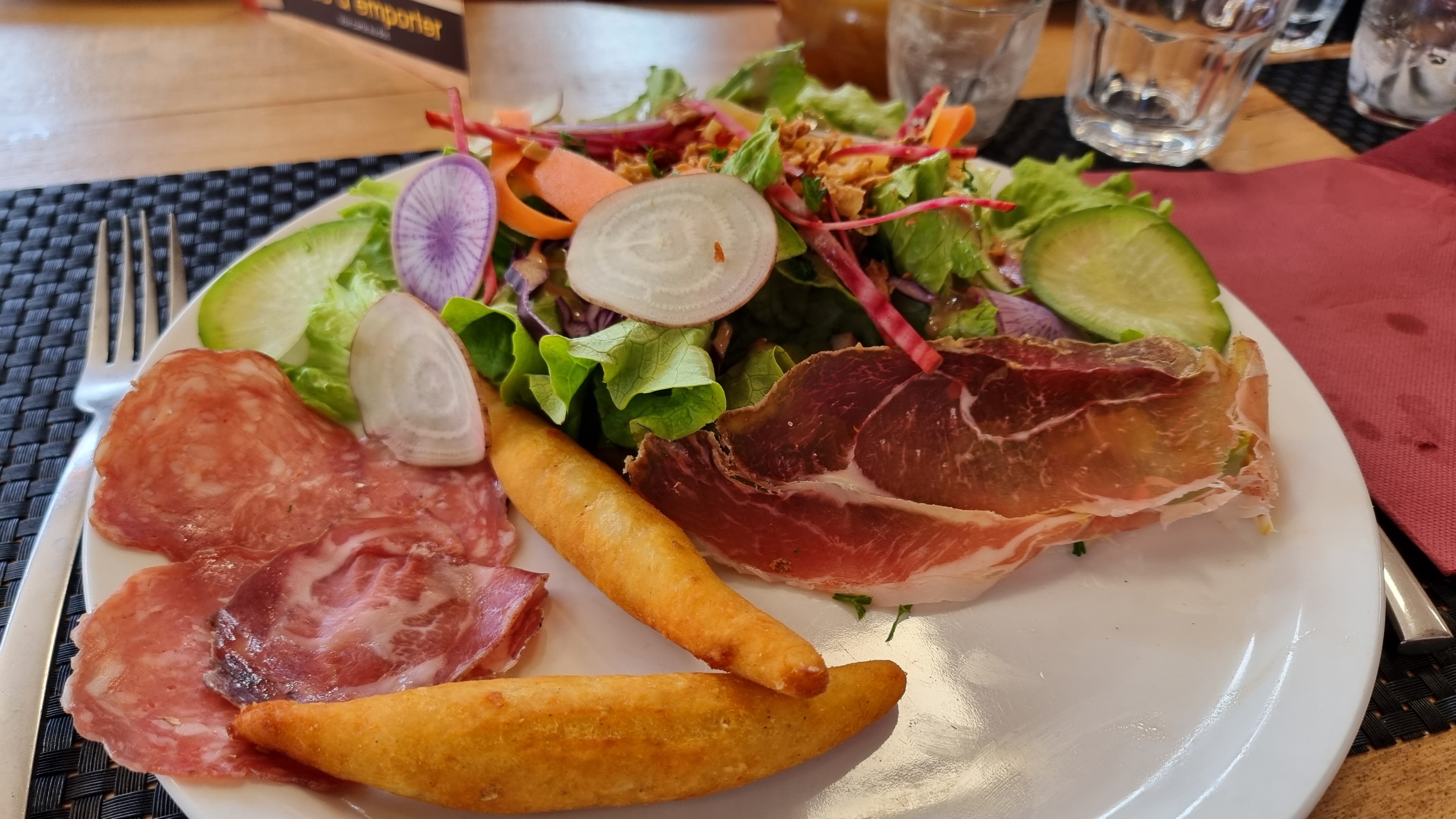 Bonjour, Le repas était plutôt bon, les tourtons et glaces à volonté sont un plus appréciable. La portion d'oreille d'âne qui était très gouteuse mériterait quand même d'être plus généreuse. Le menu salade des Alpes est quand même un peu cher pour les ingrédients qui s'y retrouvent (un peu plus de tomates anciennes et de fromage s'il vous plait). Attention aux choix musicaux. Sinon bien dans l'ensemble.