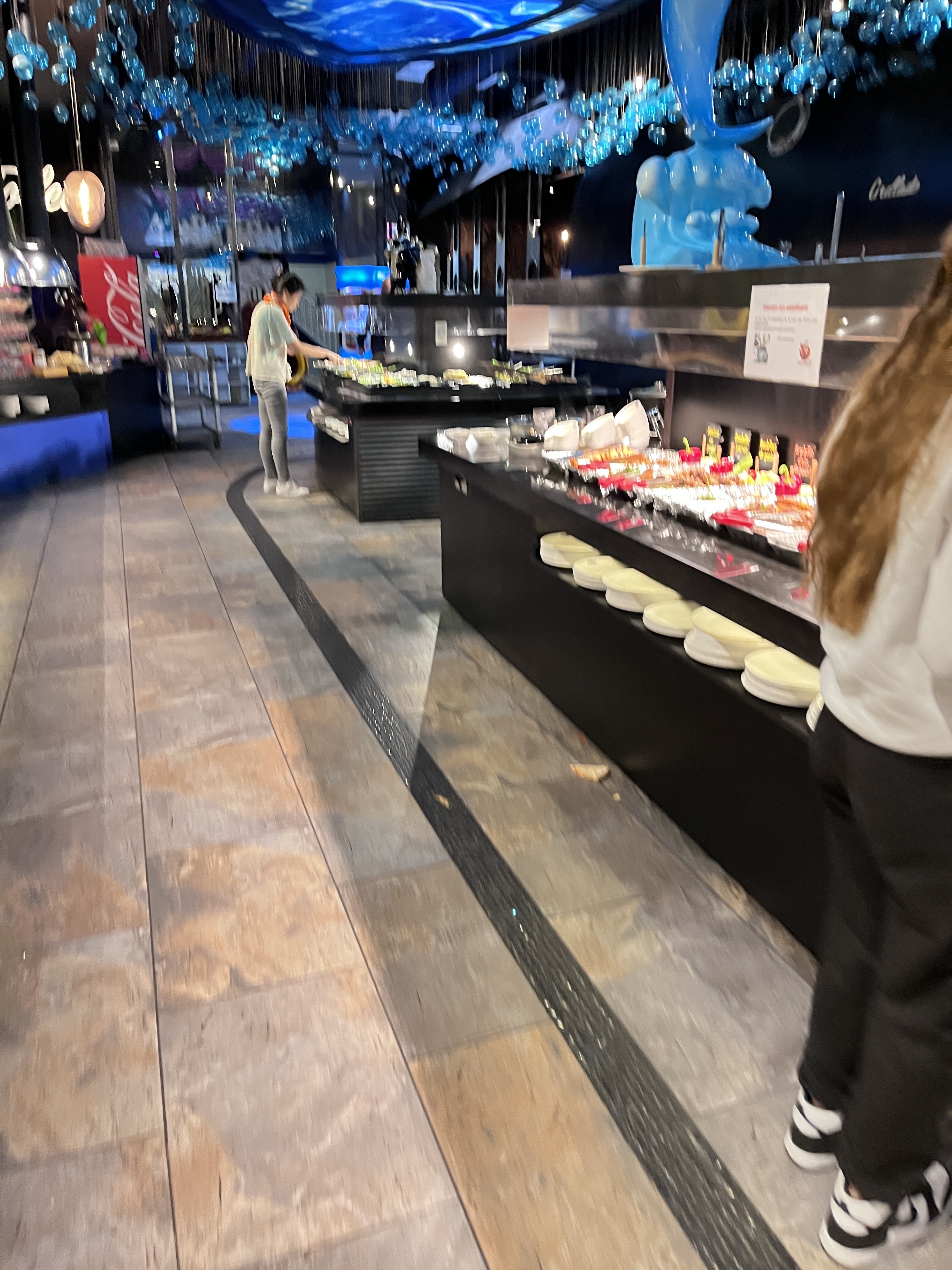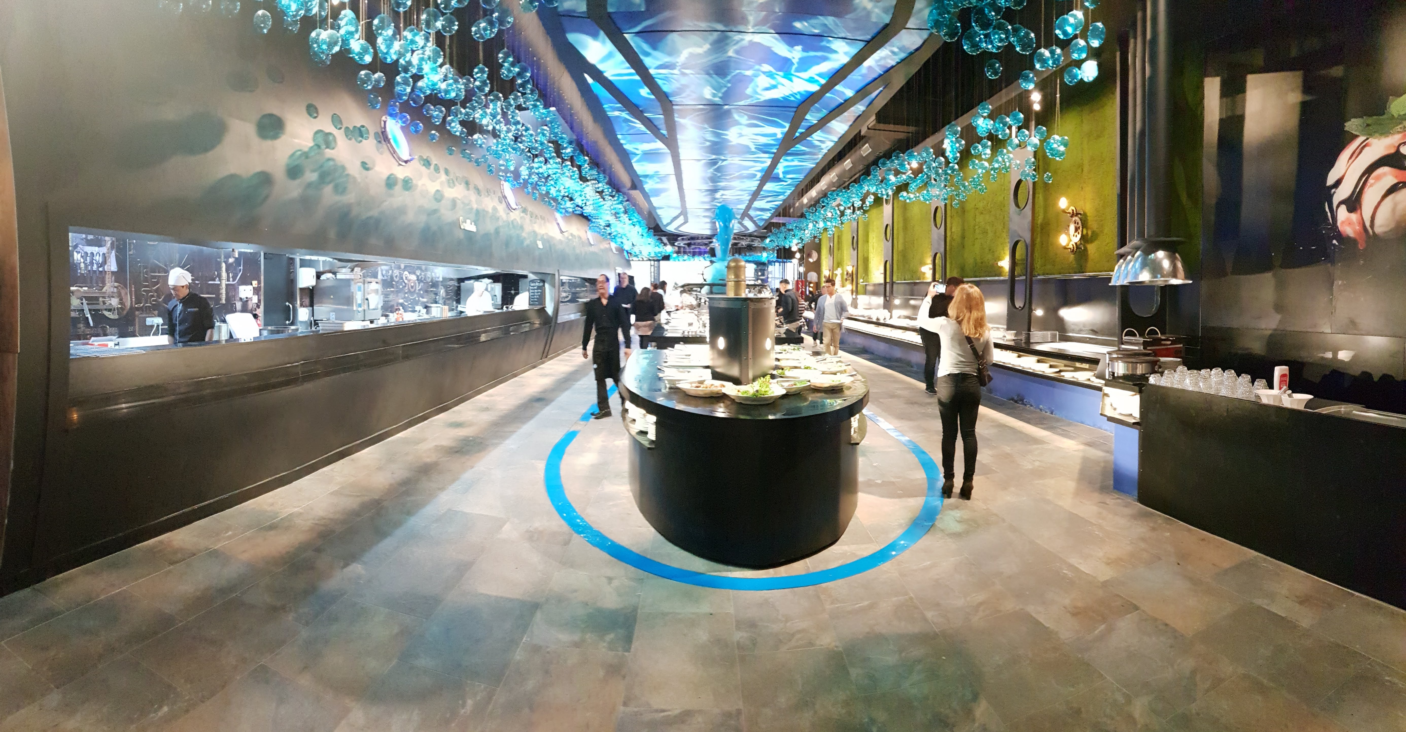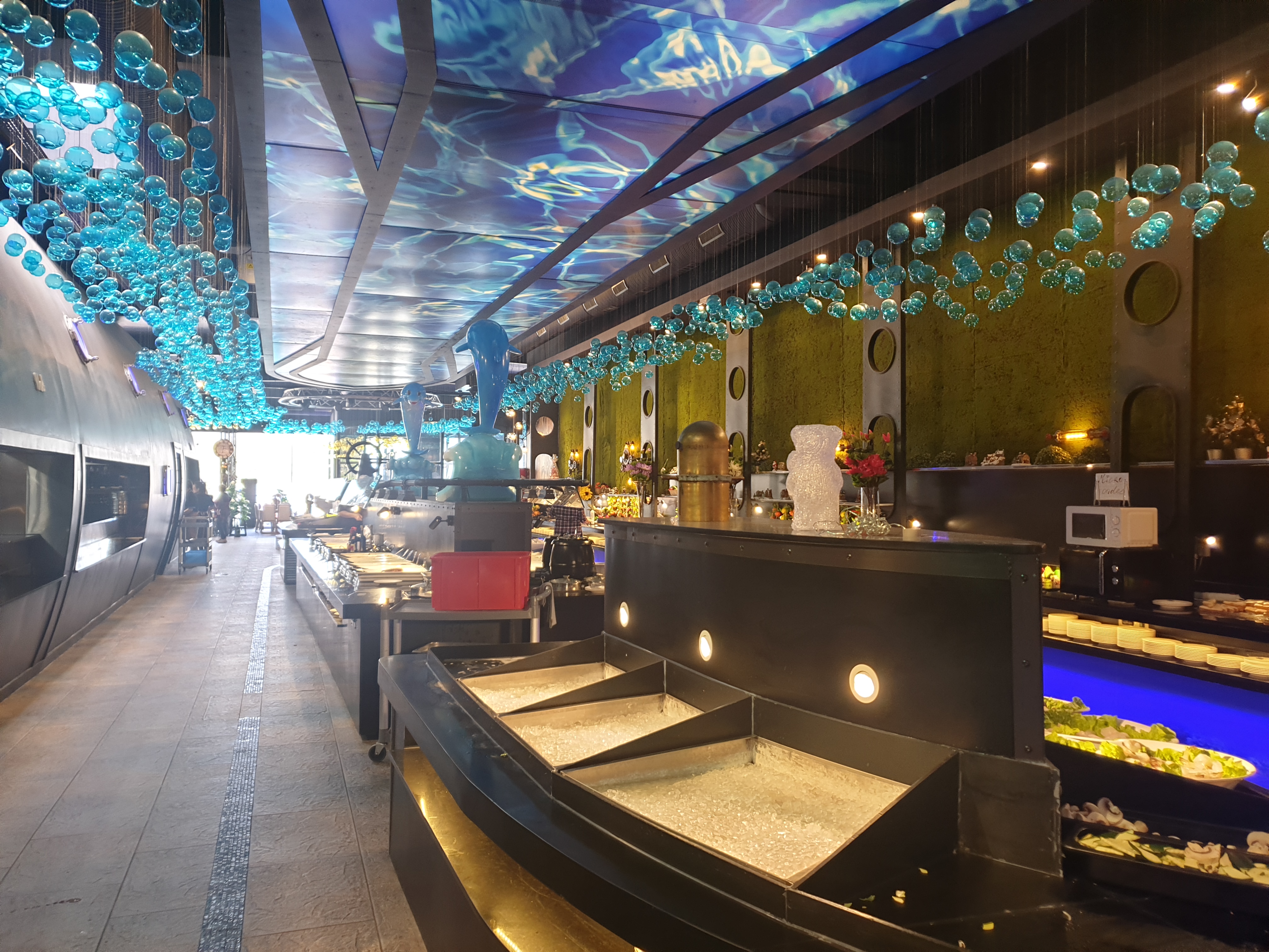Expérience au top dans un cadre magnifique. Le restaurant vous accueille dans un décor sous-marin pour un buffet à volonté pour 15€ le midi et 20€ le soir, les enfants de 3 à 10 ans se régaleront pour 10€ le midi et le soir. Le buffet comprend divers plats asiatiques des sushis au porc au caramel. Vous dégusterez également de la viande grillée sur place à la plancha. Il y a une multitude d'entrées et de desserts qui vous attendent. Les enfants, et les plus gourmands, pourront se faire plaisir avec le coin bonbons et crêpes faites sur place. Seuls les boissons sont à la carte. L'équipe est très accueillante. Le restaurant et la vaisselle très propre.