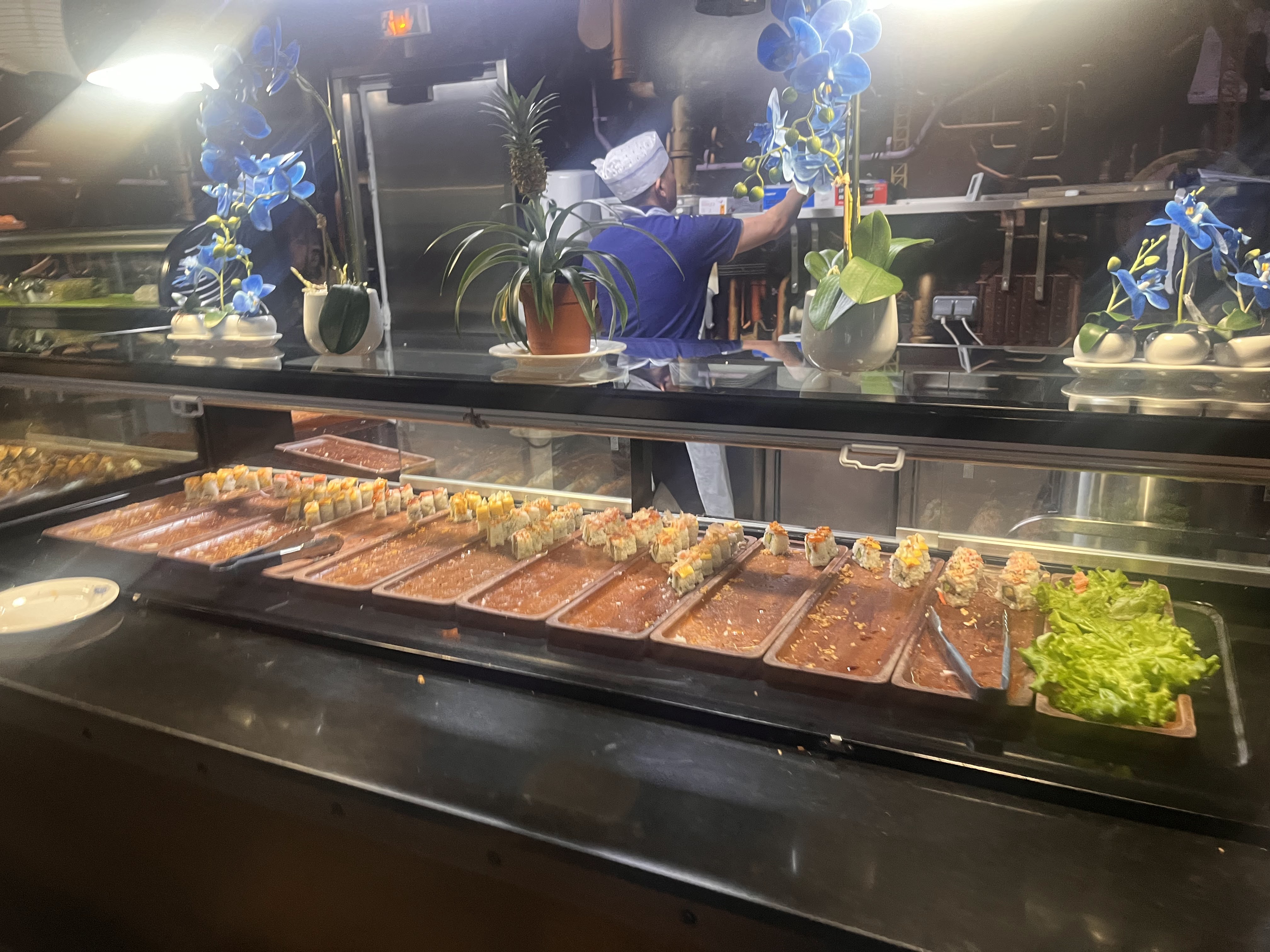 Alors, j’étais avec un groupe, ont était 5. Au début ont à manger tranquillement et c’était bon mais ont a vite compris que se restaurant c’était que du visuelle. C’est beau et sa donne envie mais quand tu l’a en bouche c autre chose. Ont est arrivé en tout premier et il y avait des chose sec comme si il l’es avait pas fait maintenant. Pour 5% des choses qui il y avais labah il les fesais devant nous tu pouvais les voir faire mais pour le reste, je pense qu’il réutilise. Les desserts c’est que du visuelle car sa aussi c’était vraiment pas bon. Ont a pas d’intimité puisque les serveurs passent tout les 2seconde à la table et vous regarde tranquillement manger. Les serveurs étaient grave désagréable et irrespectueux, tu leur pose une question il t’envoie vers une autre personne qui fait la même chose et un si de suite. CEST VRAIMENT QUE DU VISUELLE NE VOUS LAISSER PAS AVOIR COMME MOI !!! Tous se qui est poulet, viande à ne pas toucher !! En plus il savait pas trop gérer les épices car sur les poulets que j’ai mangé, il y avait vraiment beaucoup d’épices. Ya pas un seule shushi que j’ai manger qui était bon j’ai juré !! Les légumes sont sec aussi vraiment j’étais choqué même pour les légumes il ont pas fait d’effort. A la fin sur les 5 du groupe, 3 avait mal au ventre, avait mal à la tête et avait envie de vomir. Franchement je ne le conseille pas du tout. Ne mettez pas votre argent dedans!! Tchipp PS: l’étoile c’est pour la décoration, c’était très beau 👌🏾
