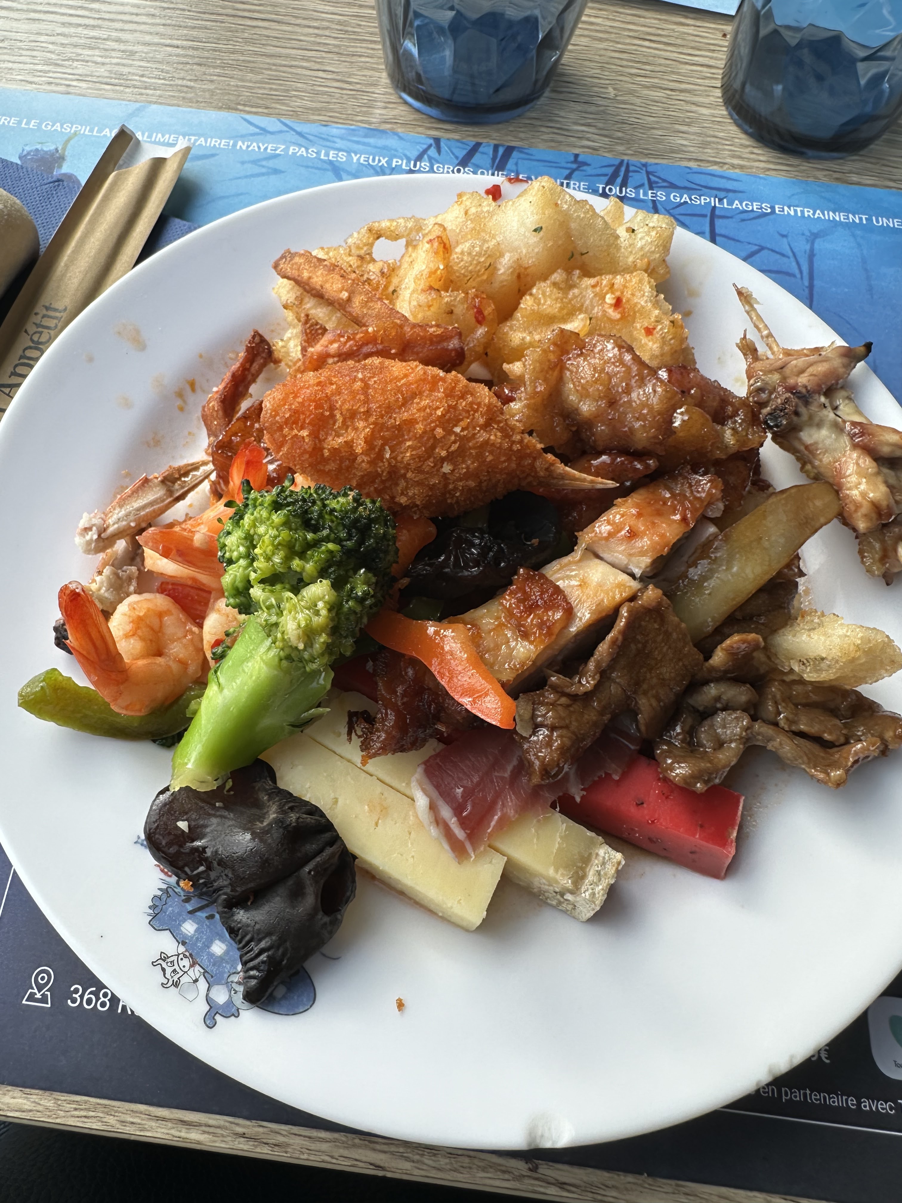 Très beau et grand restaurant. Une partie wok /grillade . Vraiment un voyage culinaire côté asiatique ( sushi riz thaï crevette grillé fruit de mer…) et côté indien ( naan au fromage à volonté butter chiken poulet tikka massala..) et de la charcuterie Un très grand choix de plat et de dessert Crêpes faites sur place Jeux pour enfants