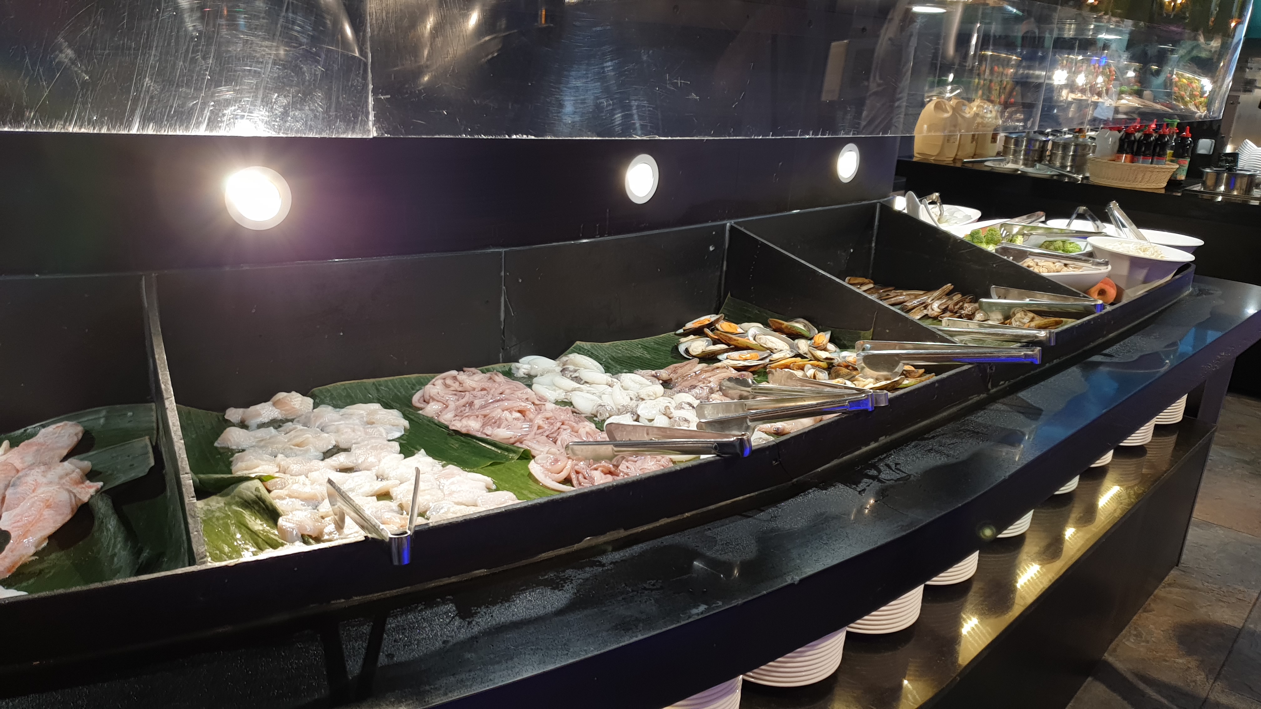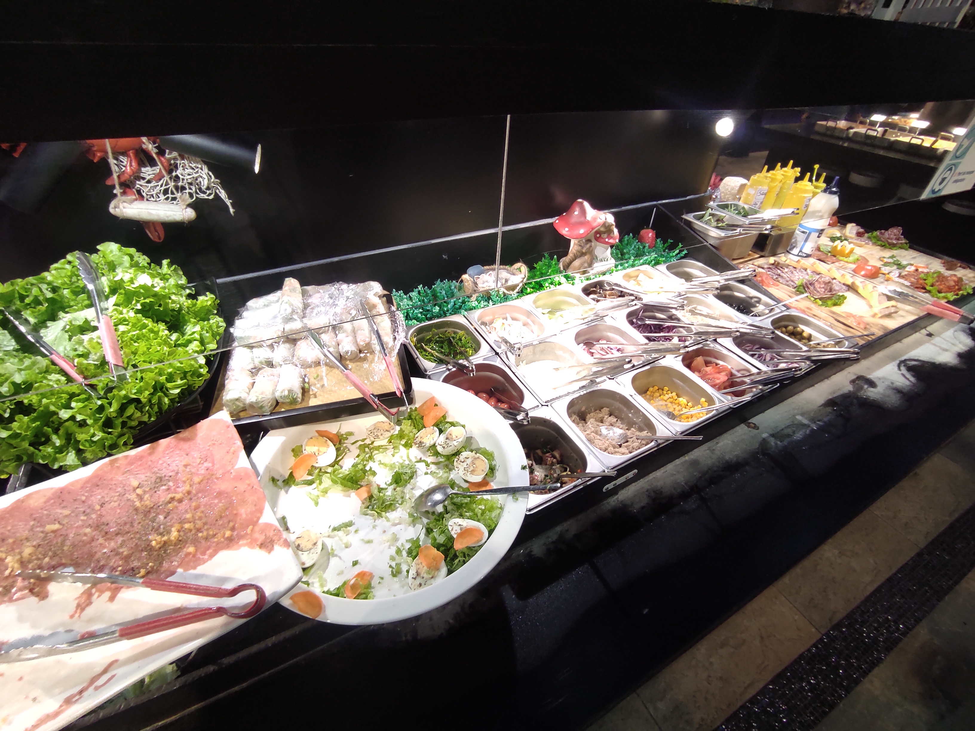 Buffet à volonté avec un large choix de fruits de mer et viandes. Pour le goût, je suis mitigé. C’est assez fade dans l’ensemble pour un coût assez élevé in fine. C’est peut être intéressant pour ceux qui mangent sans limite pour plusieurs jours…