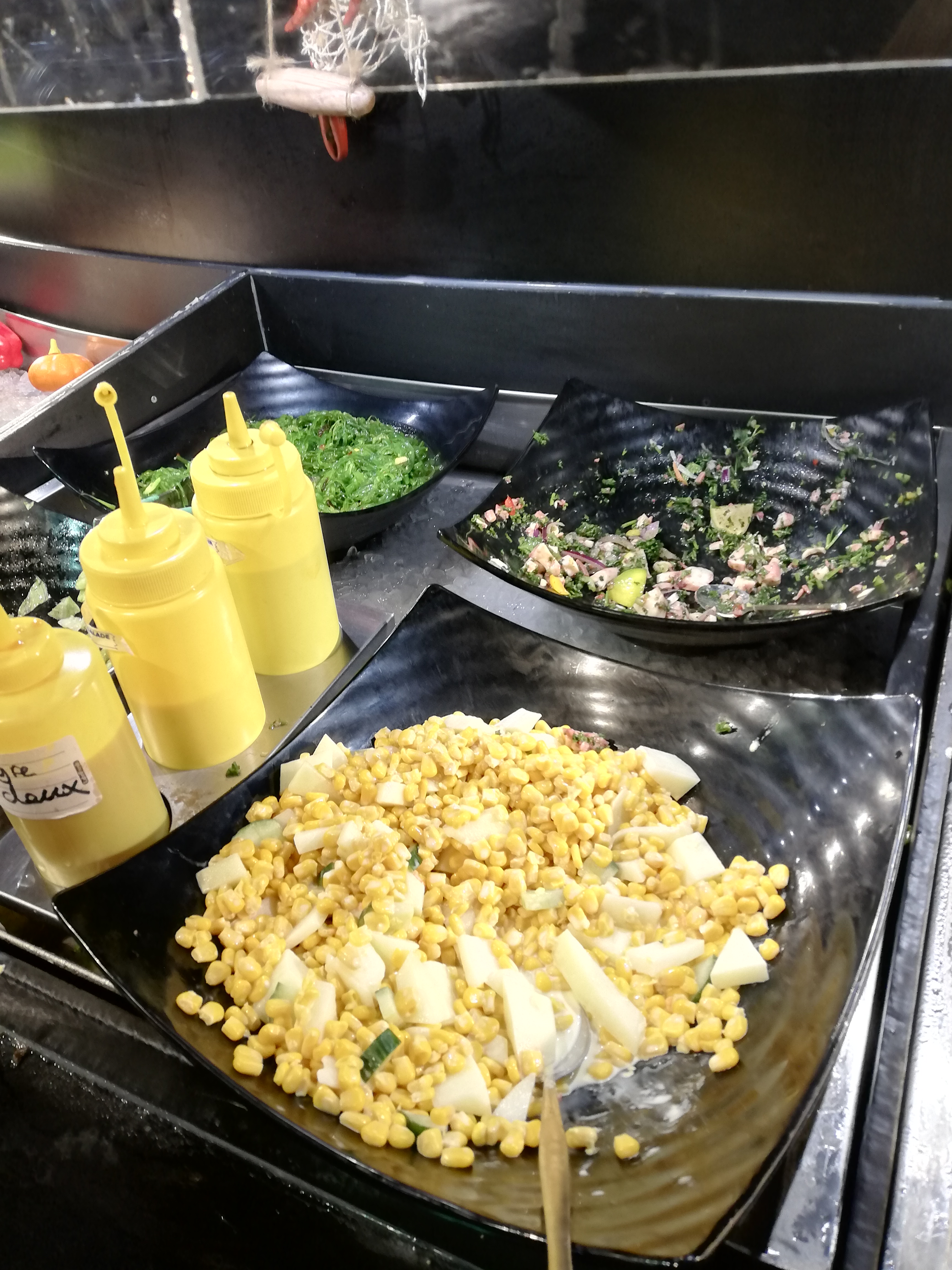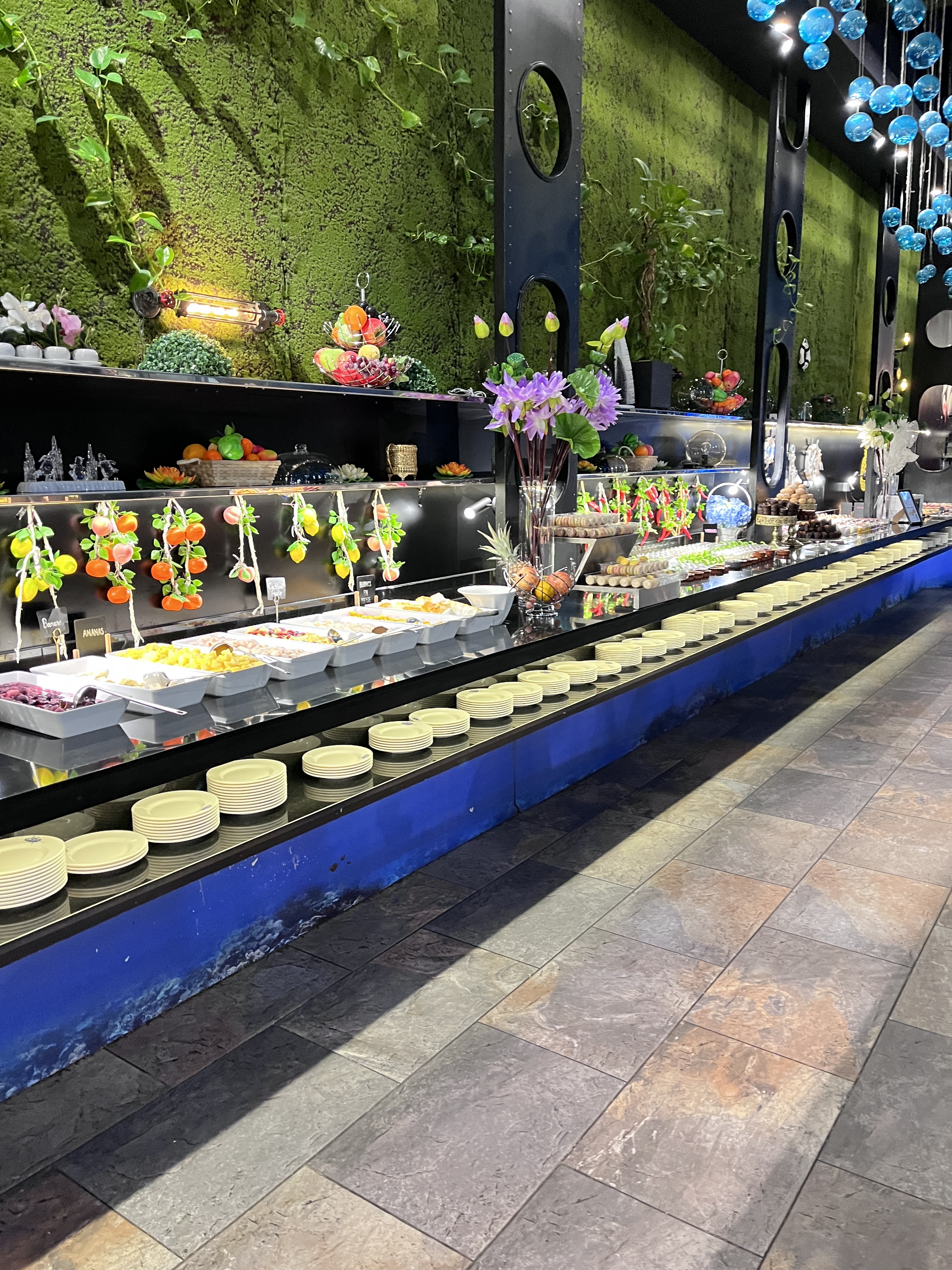 La décoration du restaurant est vraiment jolie mais c’est hélas la seule chose que je vais retenir. Le personnel est inexistant. Il y a du choix mais moins qu’ailleurs (il y a un très beau restaurant à volonté du même genre, pas très loin, je vous laisse faire vos recherches) et bien qu il y ait moins de diversité dans les plats, ce n’est hélas pas meilleur. J’ai trouvé les plats fades, des entrées jusqu’au dessert. J’ai été assez déçue je dois dire. Après au vu de quelques commentaires sur le sujet, je tiens à souligner que je n’ai pas été malade par la suite (étant pourtant sensible à la nourriture de ce style industriel/semi industriel) après il est vrai que j’ai privilégié des aliments sans grand risque. Les trois étoiles sont pour le décor qui vaut le détour et la belle présentation des plats qui sont tout de même corrects, sans plus. Mais cela s’arrête là, le repas en lui-même n’a pas attiré mon attention plus que ça.