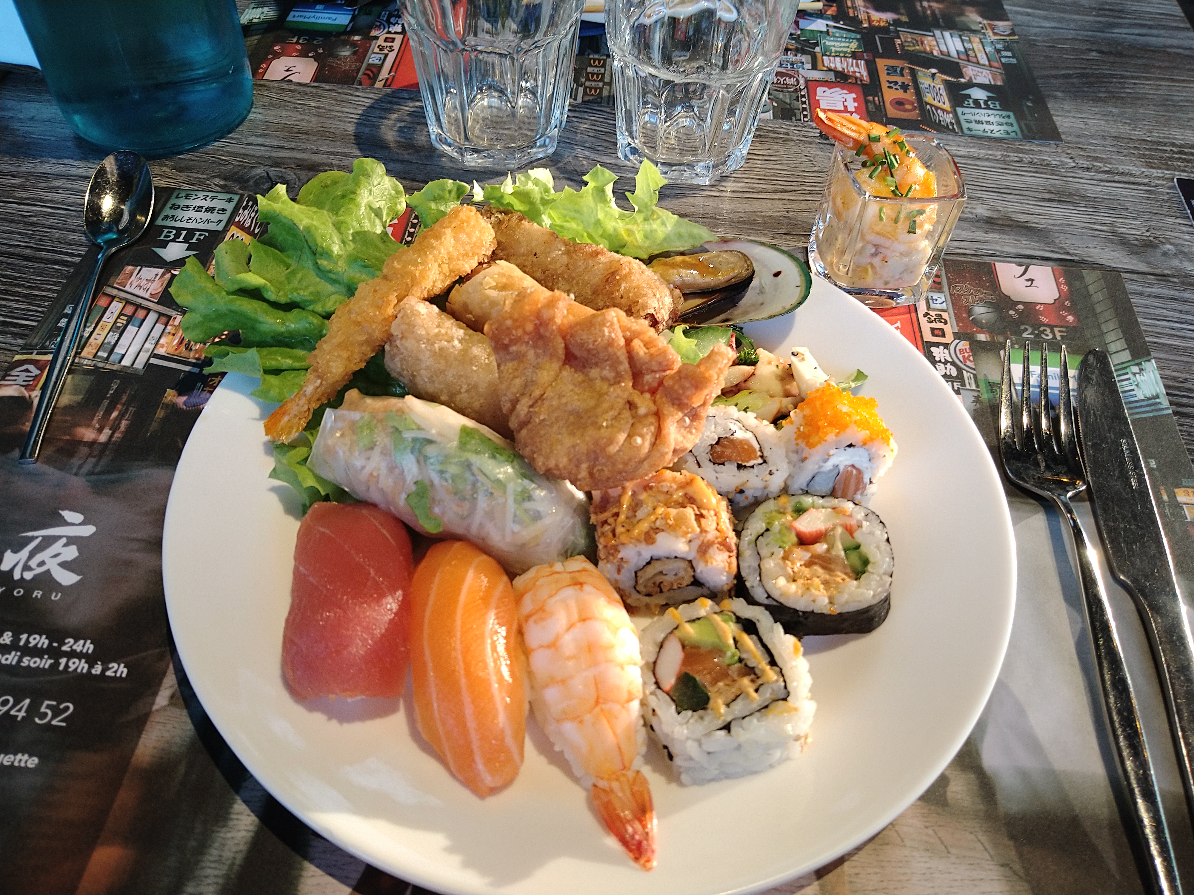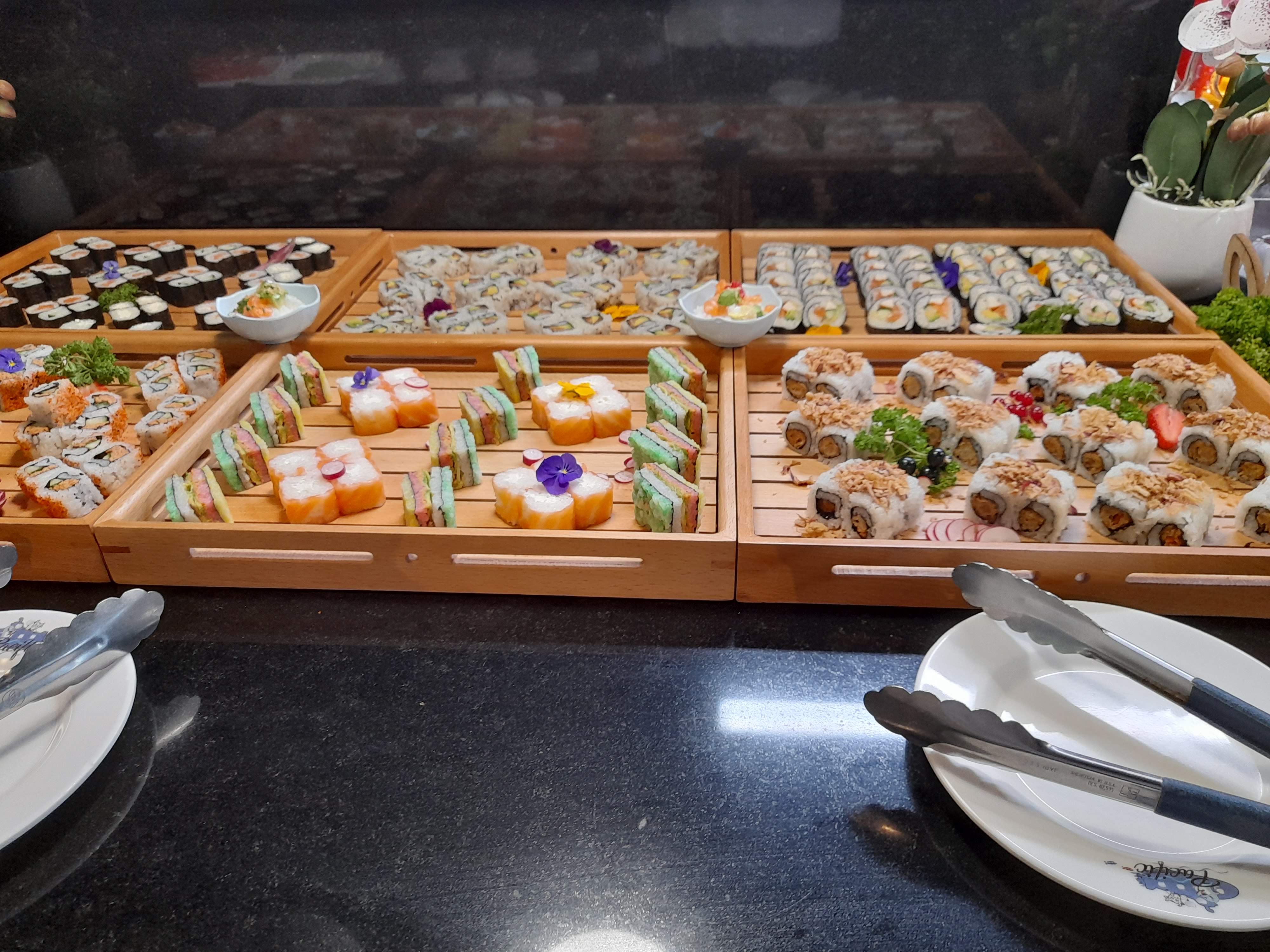 J’y étais il y a trois jours avec mon chéri.! Commençons par l’accueil chaleureux grâce a un monsieur maghrébin très galant, j’étais très surprise de la bonne qualité des sushis et des autres plats qui sont de très bonnes qualités. La décoration est magnifique, très cosy ! Les deux seuls bémols c’est qu’il y a beaucoup de monde et c’est normal pour un week-end et pour un buffet à volonté, le deuxième bémol c’est que je trouve que 26€50 par personne est assez cher, à part ça tout est parfait. Ça reste le meilleur des buffets que j’ai pu tester jusqu’à maintenant.! je reviendrai c’est certain.