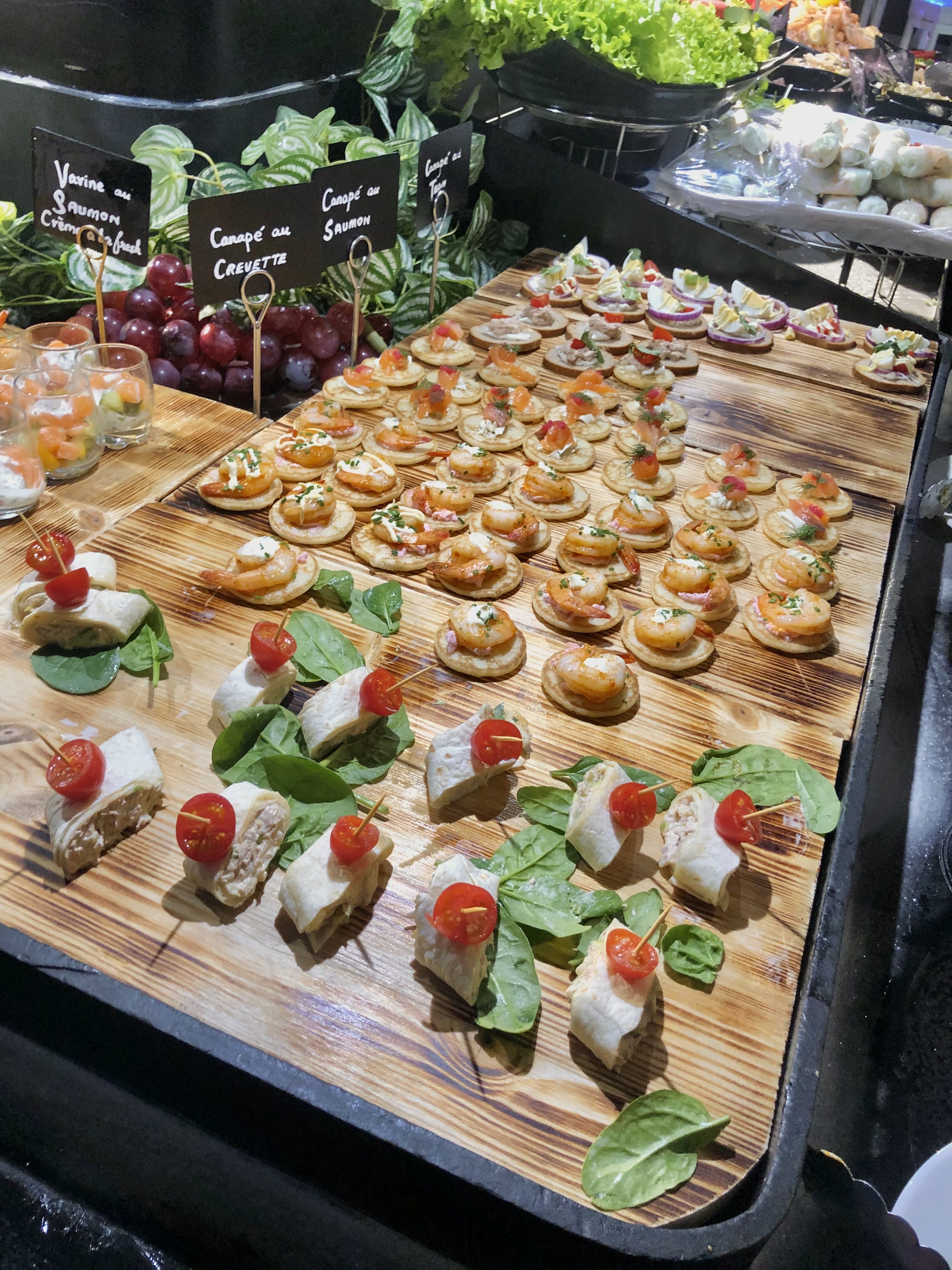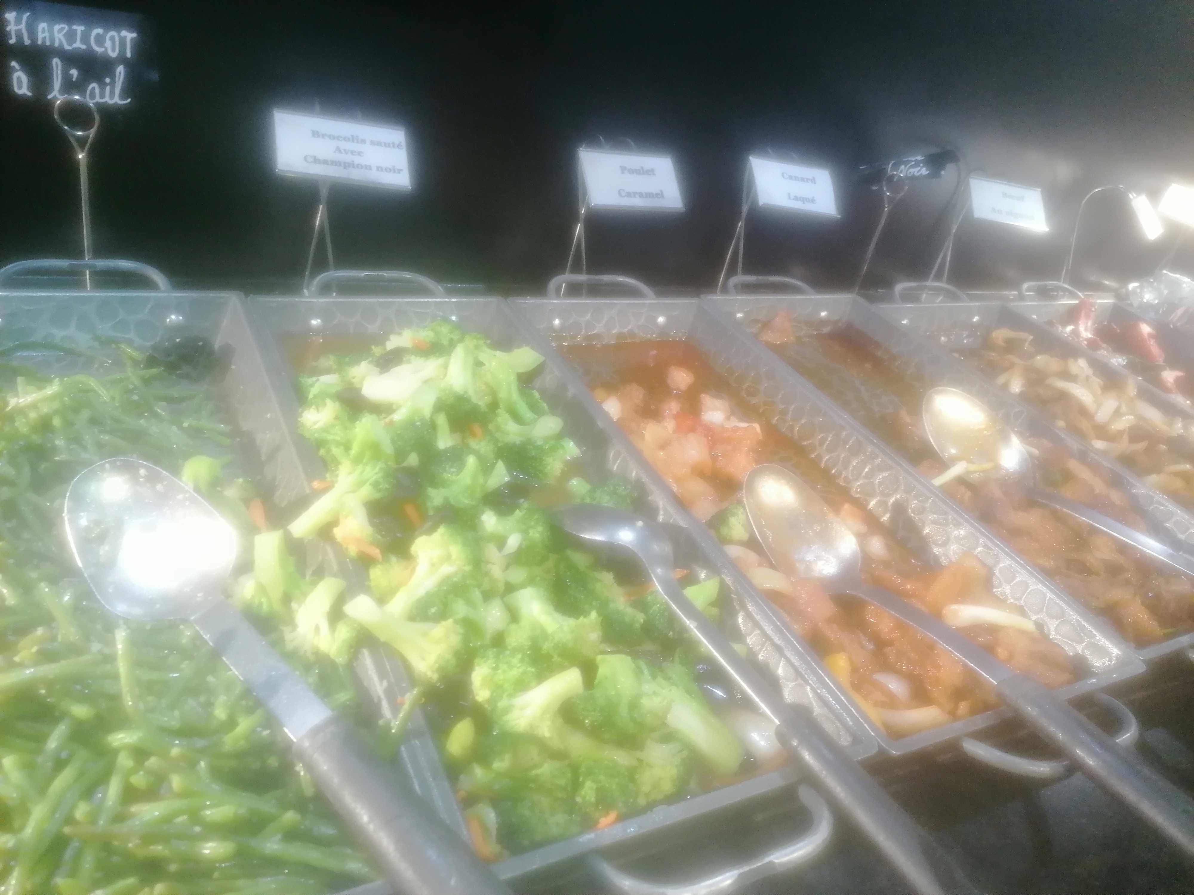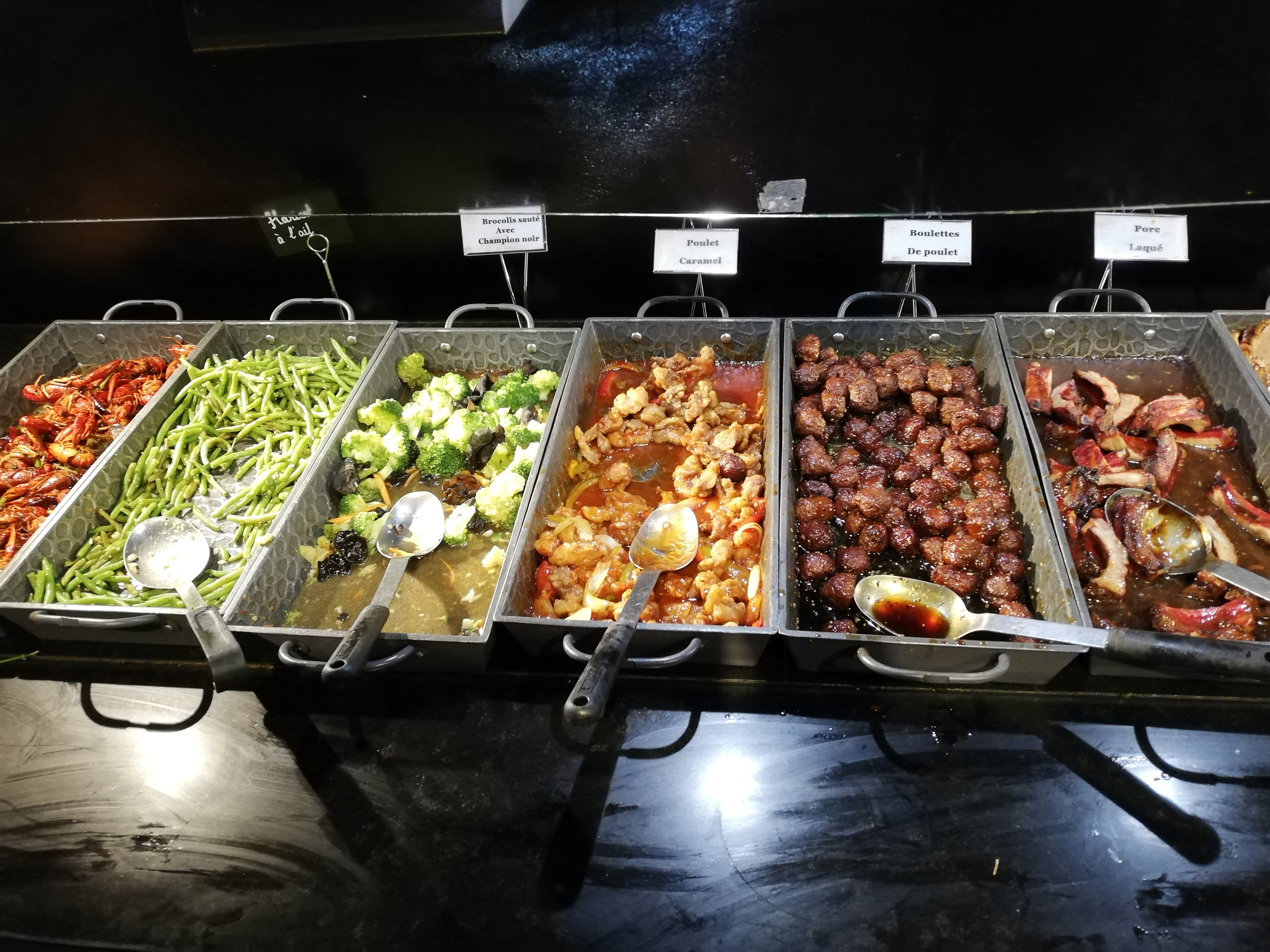 Cuisine asiatique en majorité mais on y trouve de tout, bien achalandé, Beaucoup de choix pour ceux qui aiment les crustacés. A faire pour ceux qui aiment les buffets à volonté.