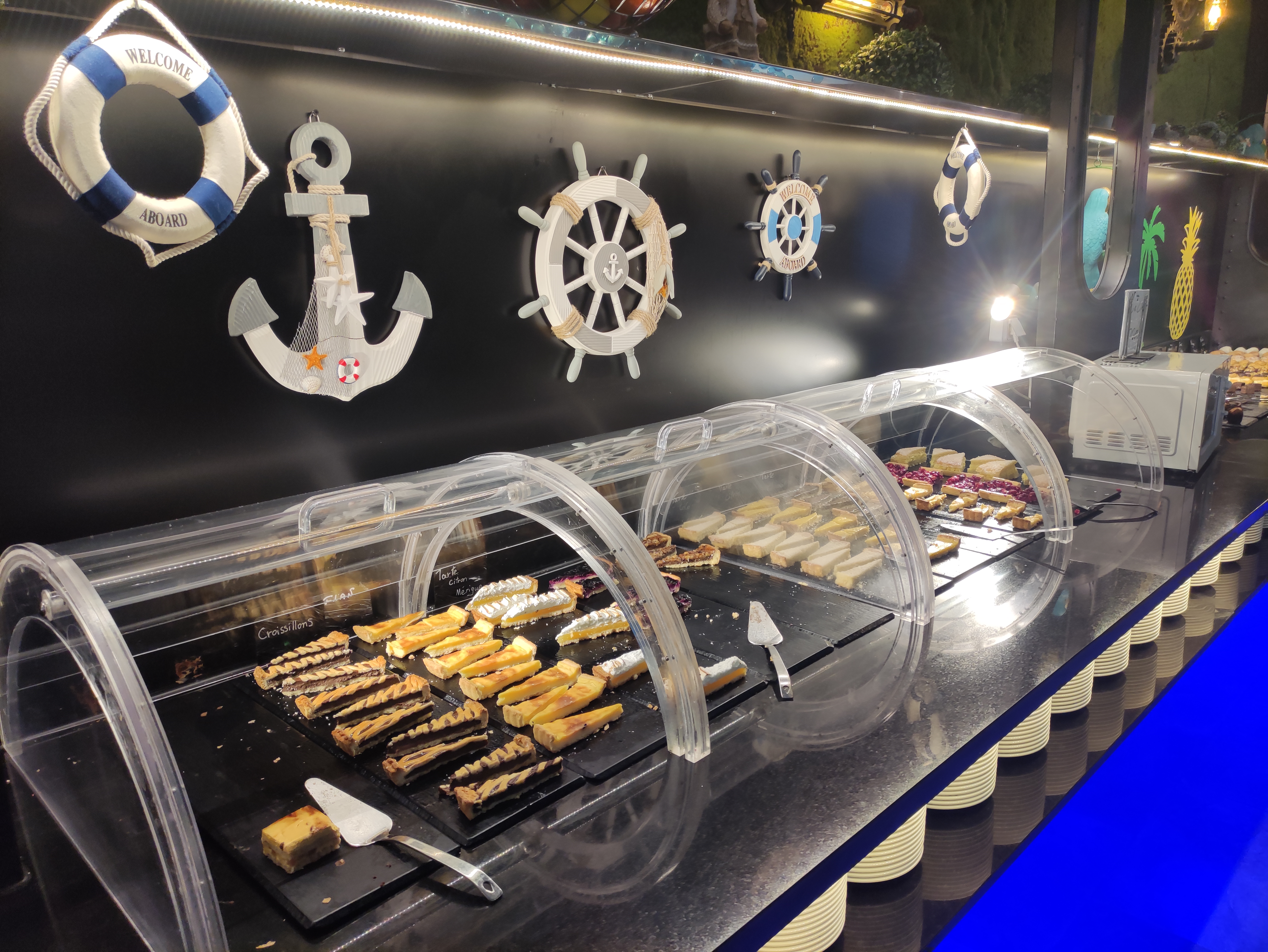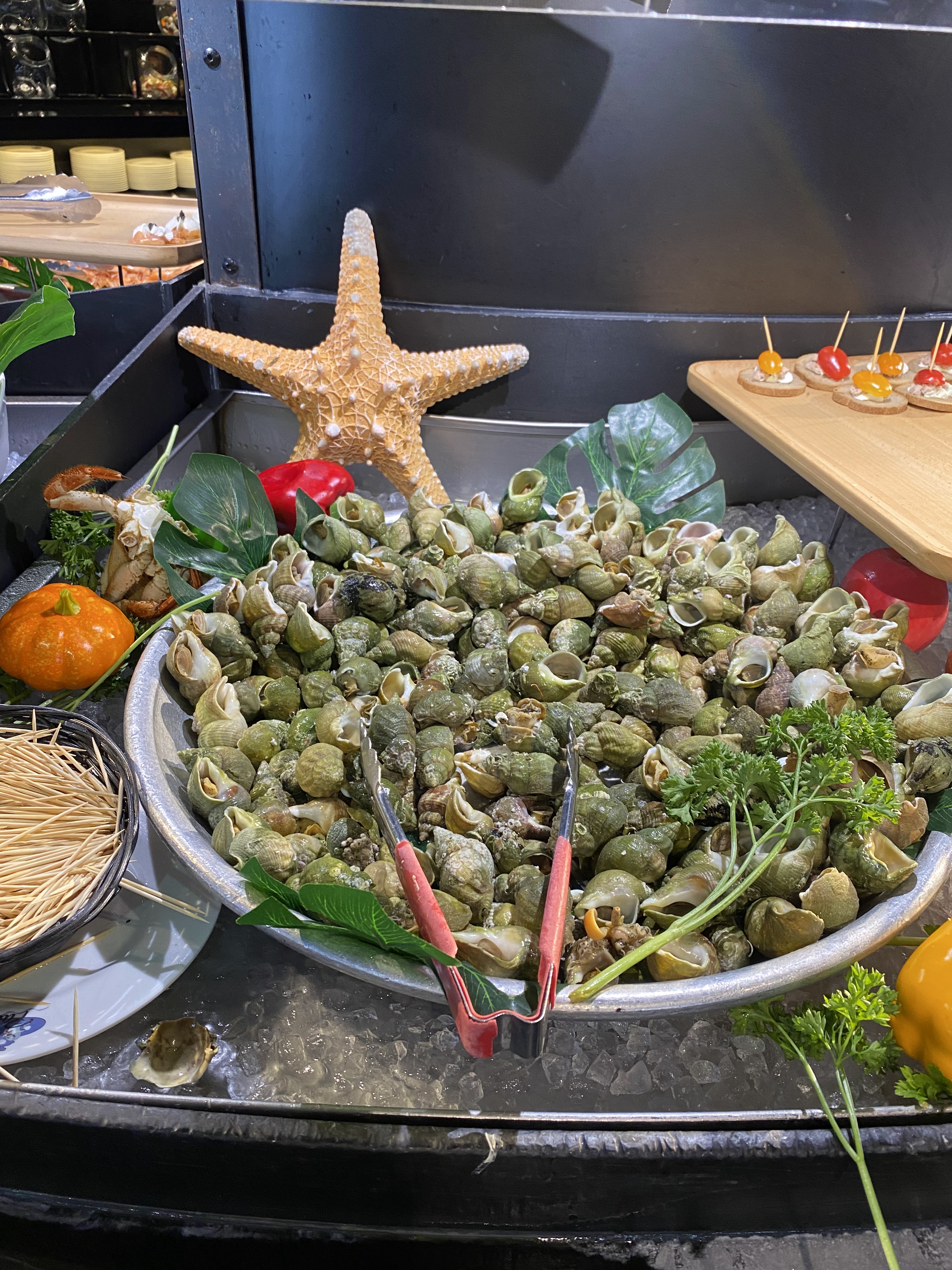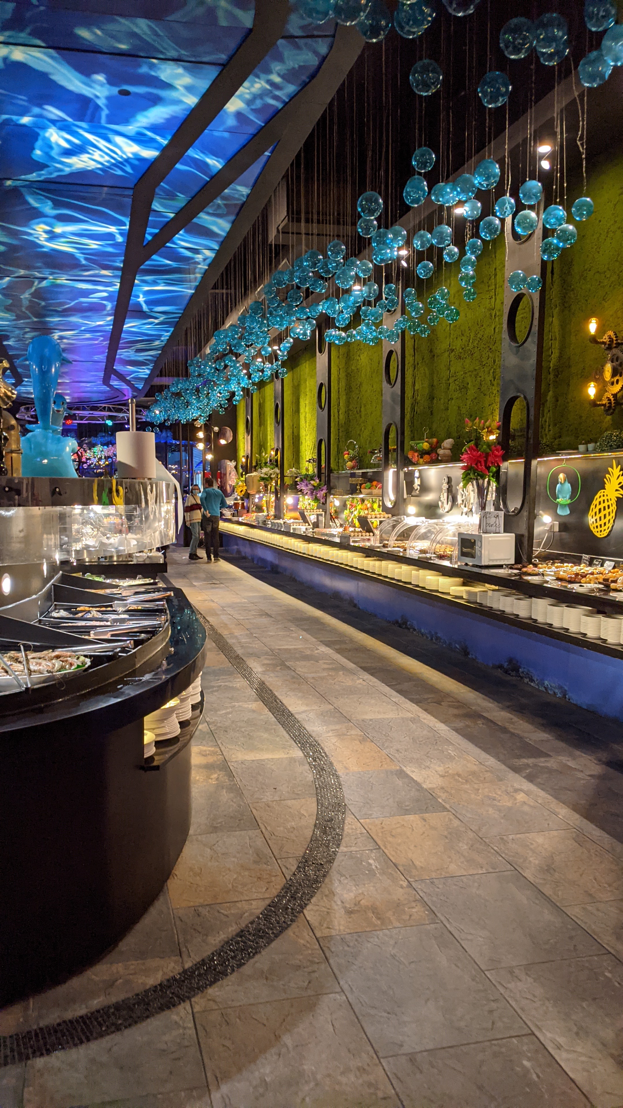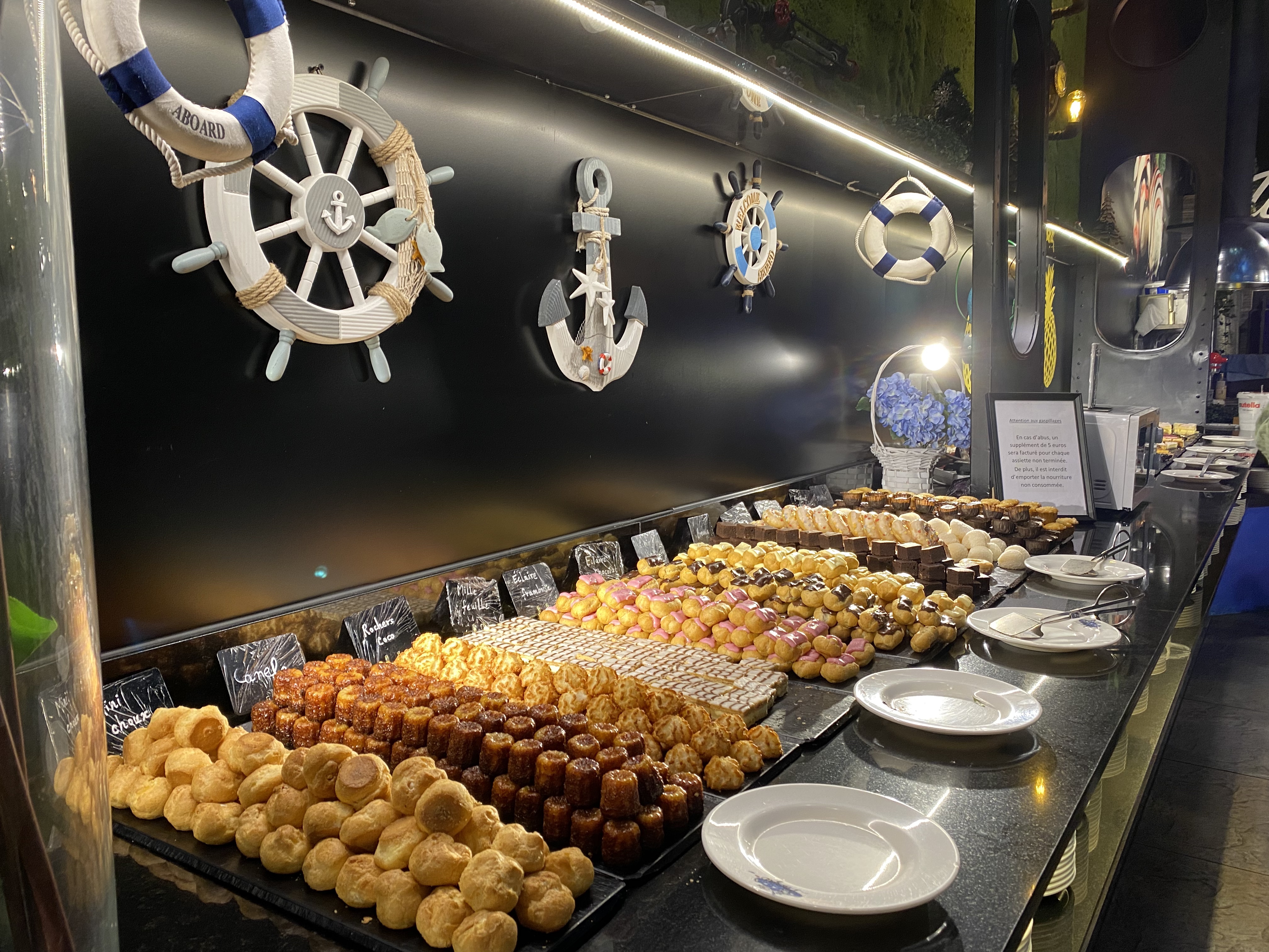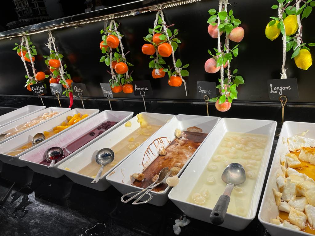 Restaurant à volonté avec un très grand nombre de choix. Plats asiatiques (avec wok), plats européens, fruit de mers... Fruit, pâtisserie, bonbon et même crêperie. Très joliment décoré et organisé.