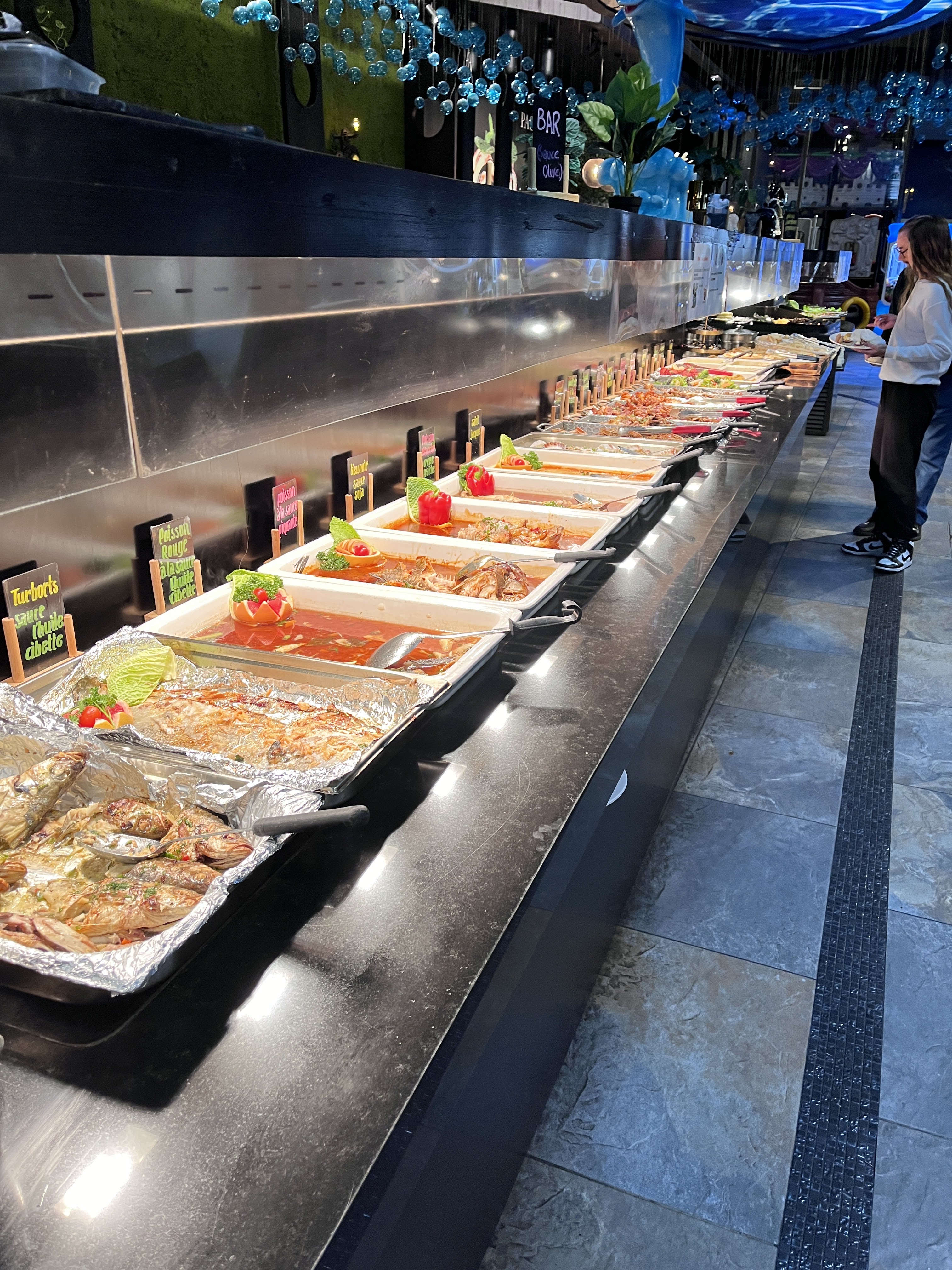 Découverte sur Instagram lors d'un week-end sur Paris avec les enfants, quel bonheur de trouver un restaurant Halal avec du choix de viande plusieurs buffets à disposition avec une décoration marine le thème est vraiment bien inspiré. Un peu d'attente pour trouver une place même si le restaurant et très grand, il faut venir à l'ouverture pour être sûr de trouver des places. Se restaurant à bonne réputation voilà pourquoi, c'est difficile d'obtenir une place.