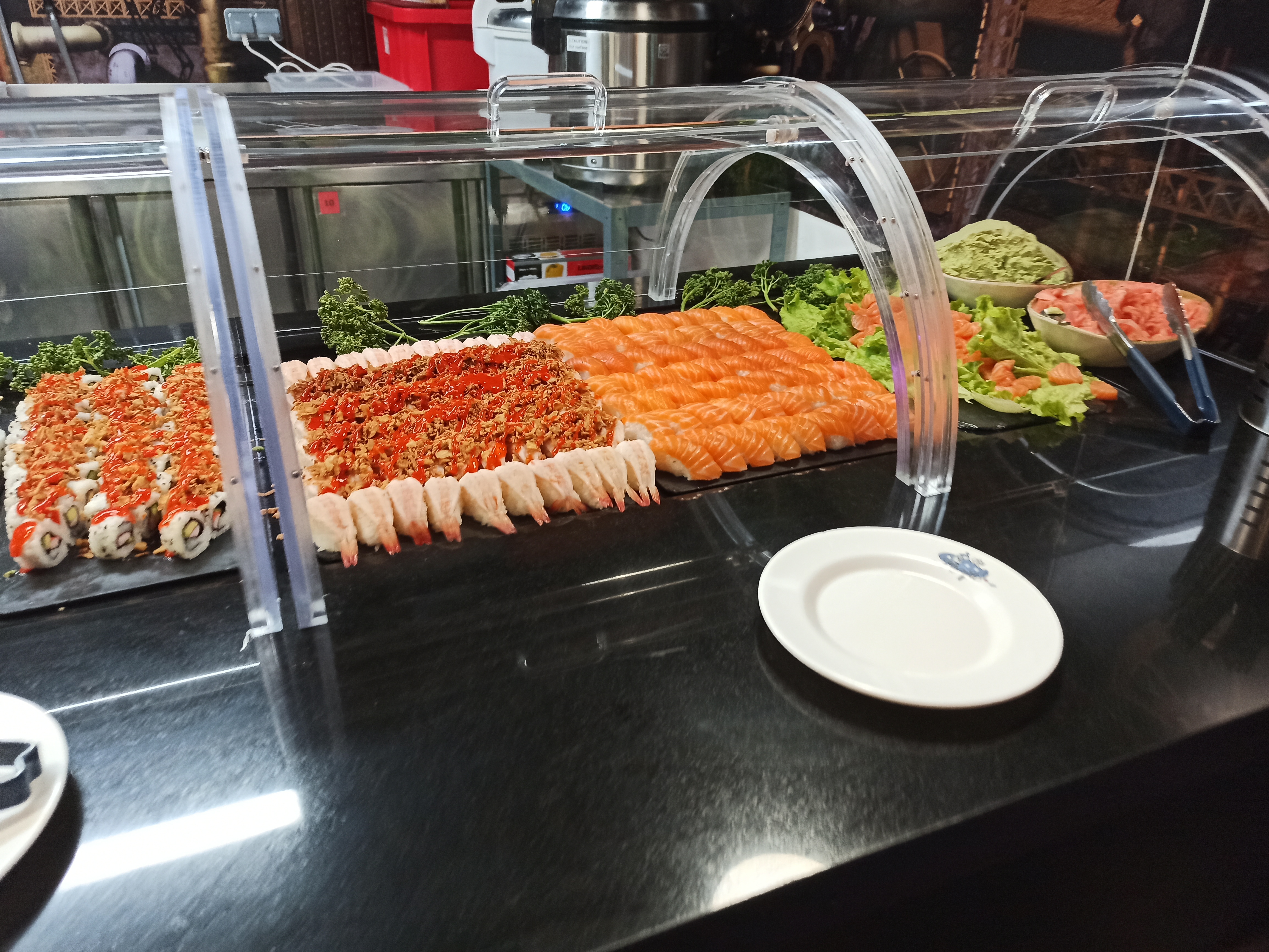Très joli resto buffet à volonté, grande variété de sushis, plats principaux et surtout desserts gourmands !! Avec wes macarons, glaces super et verrines ! J'adore