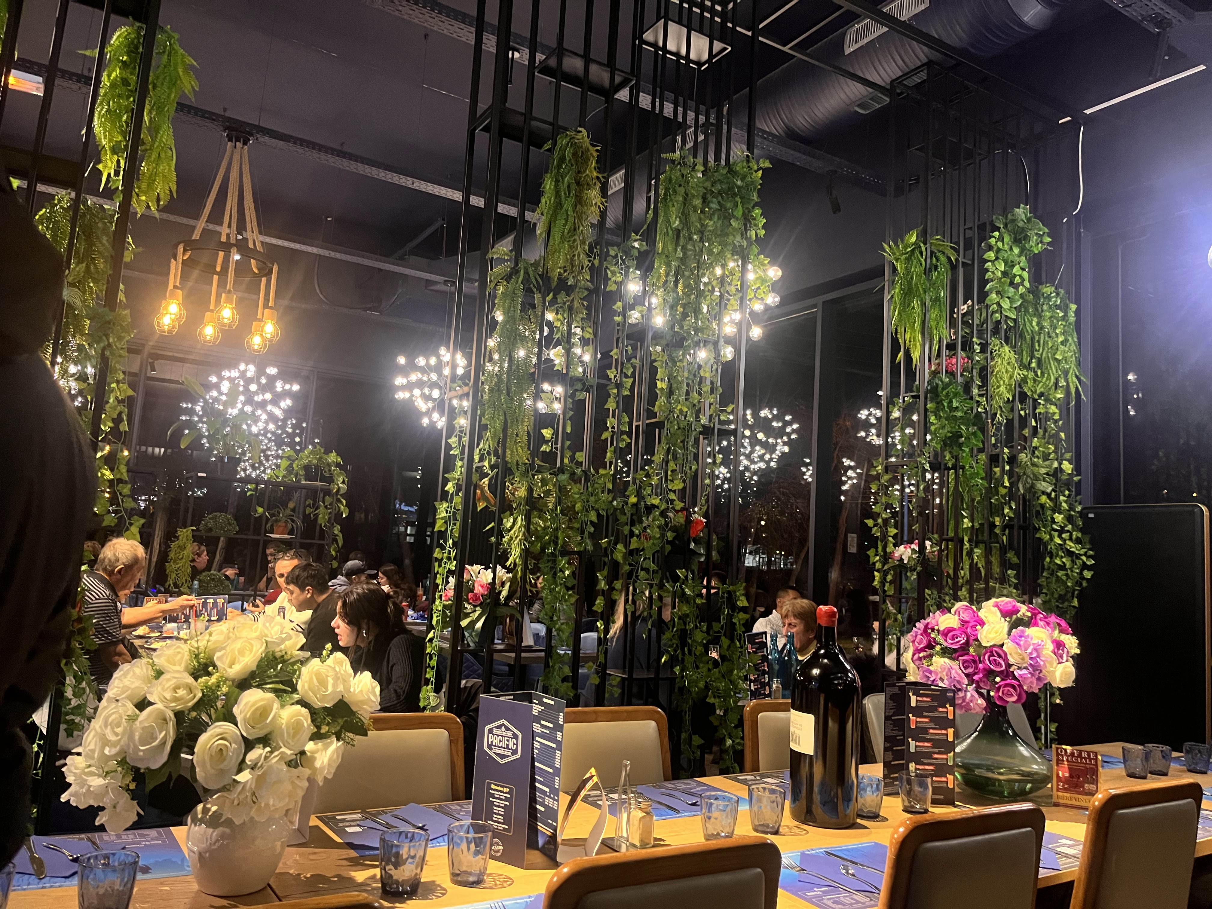 Mon mari et moi avons été pour le décor qui est juste magnifique Parcontre on est venue + de 2 fois nous proposer des cocktails c’était limite forcer. Les nems était comme du plastique et les dessert encore congelée … Au vue du prix je suis déçus et je reviendrais pas !