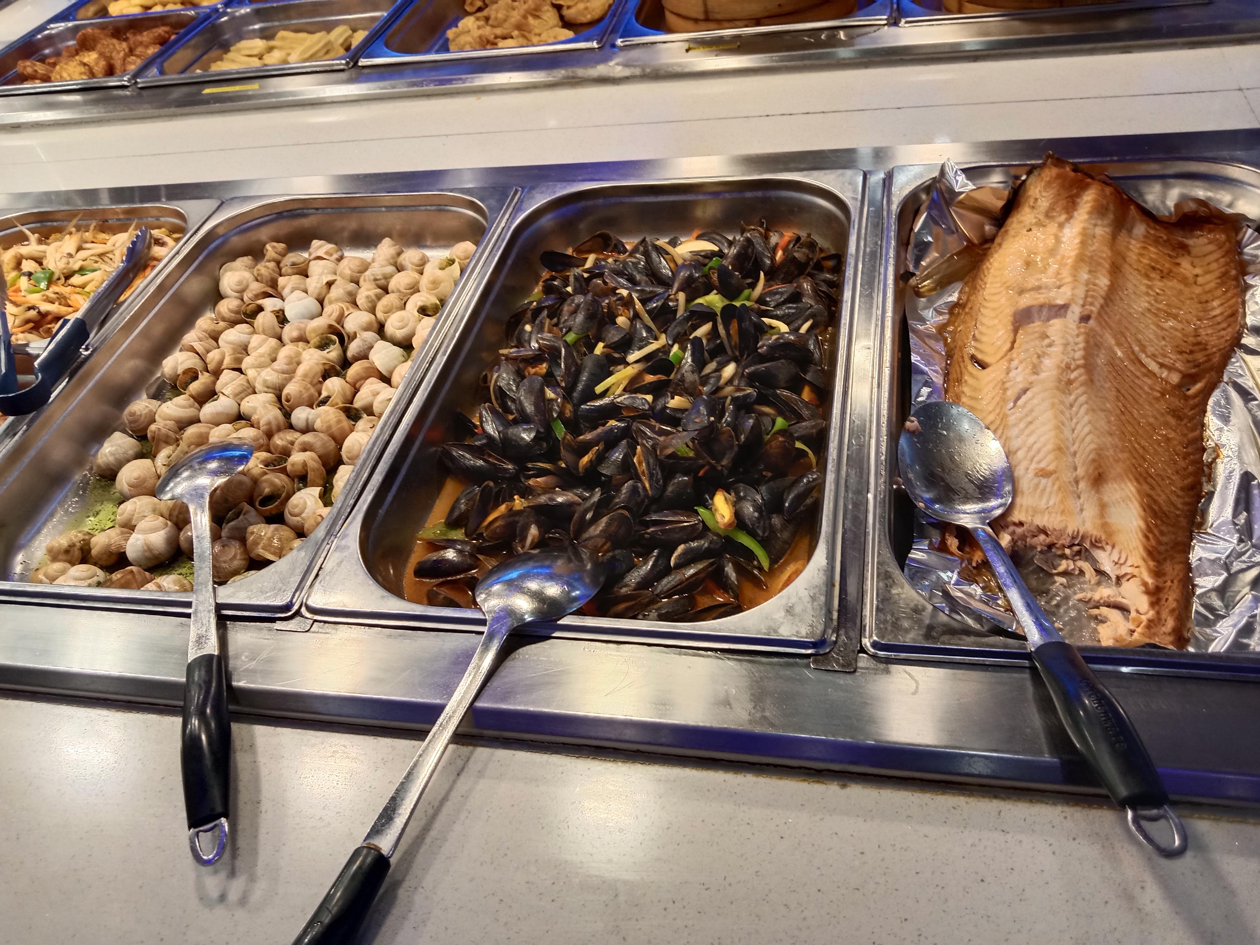 Beaucoup de choix et j ai aimé tout ce que j ai pris à part les raviolis vapeurs et les huitres. En plus il y avait des crabes et la sauce chef est vraiment bonne. On reviendra.