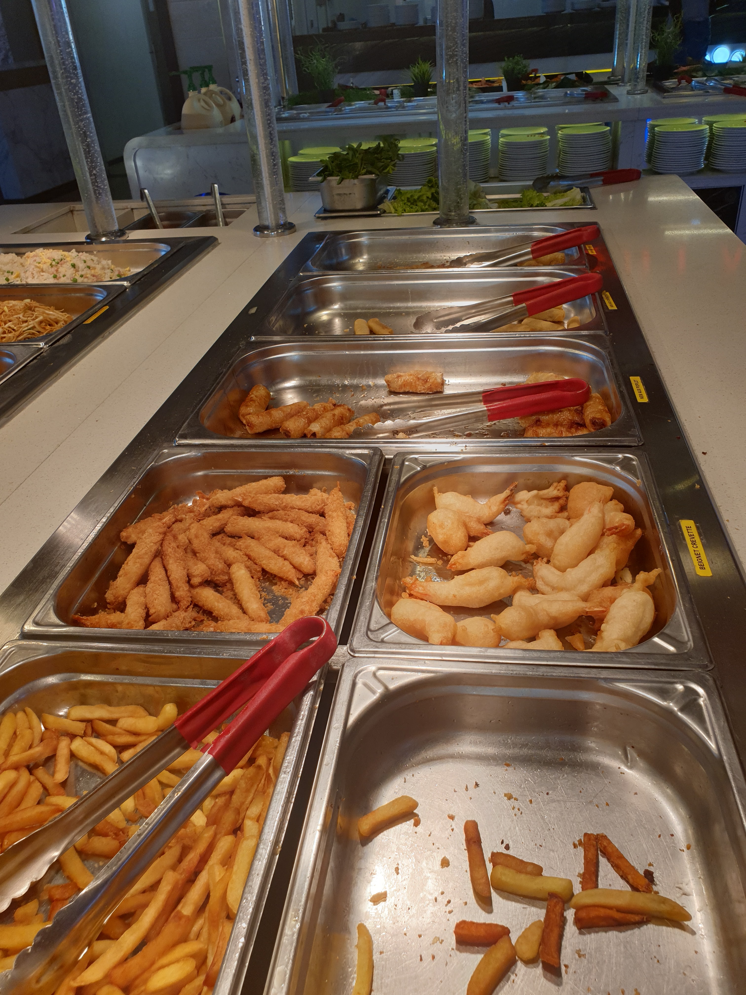 Arrivée a 21h20 Buffet à moitié vide comme le restaurant d'ailleurs. Première impression du buffet de la sauce soja partout.. D'ailleurs personne n'a nettoyé malgré le personnel qui tournait autour du buffet... Vu l'état du buffet, tentative au wok et la grande surprise Viande avariée odeur digne de riz perimé ( et pourtant c'était de la viande) Je suis habitué des restaurants asiatique mais celui-ci c'était ma 1ere et dernière fois! Seul les nems, les crevettes et les bouchées étaient correct