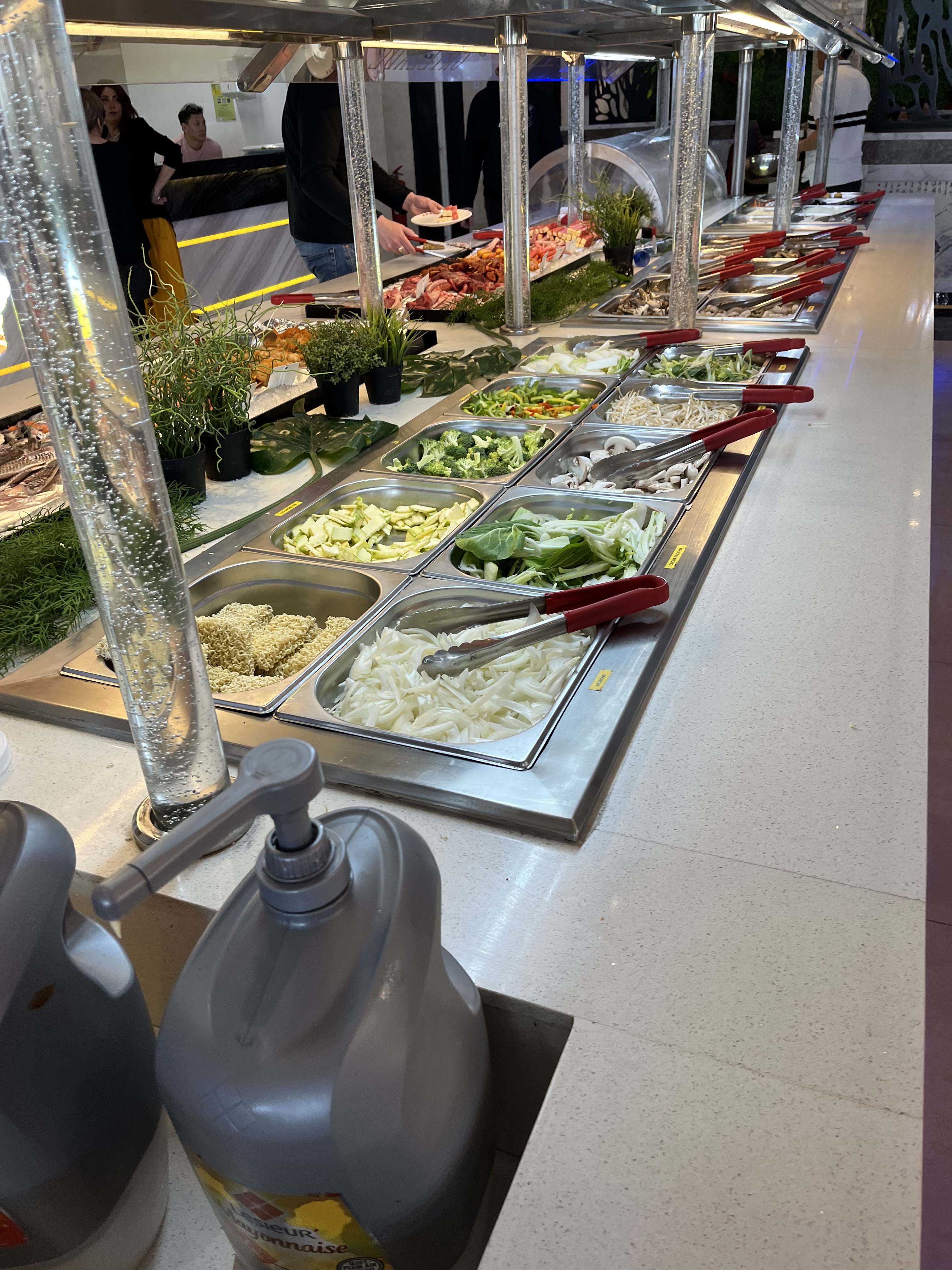 Restaurant agréable, lumineux et spacieux aux décors simples et efficaces. Un large choix de produits (poissons, viandes, crevettes, cuisses de grenouille, nems, etc.) Malheureusement la partie réservée aux desserts n'est pas à la hauteur des attentes, les fruits frais sont de moyenne qualité, les gâteaux tres moyens même si nous savons tous que les produits sont des surgelés. Le grand moins, le contrôle du pass sanitaire n'est pas systématique lors de votre arrivée.