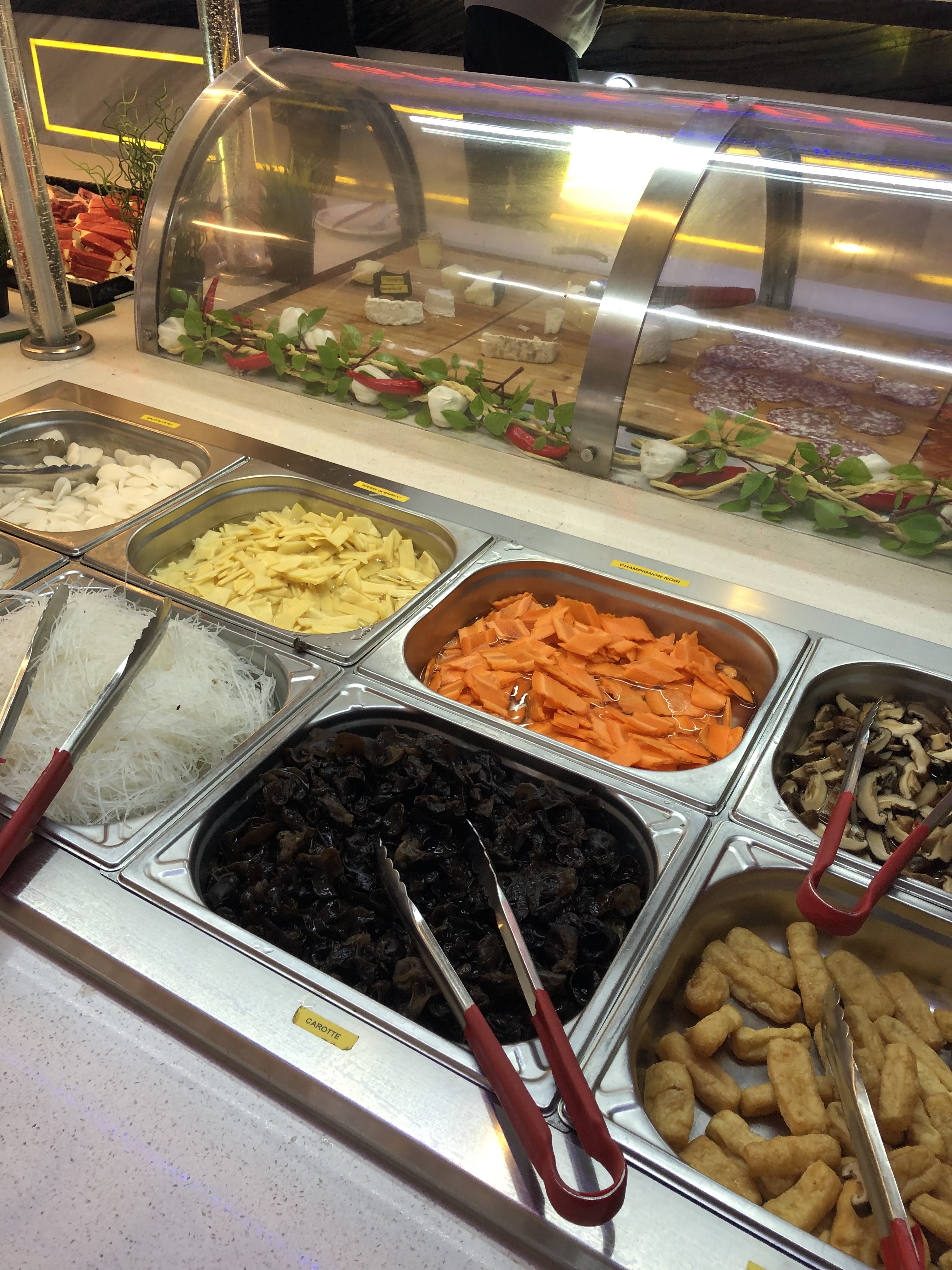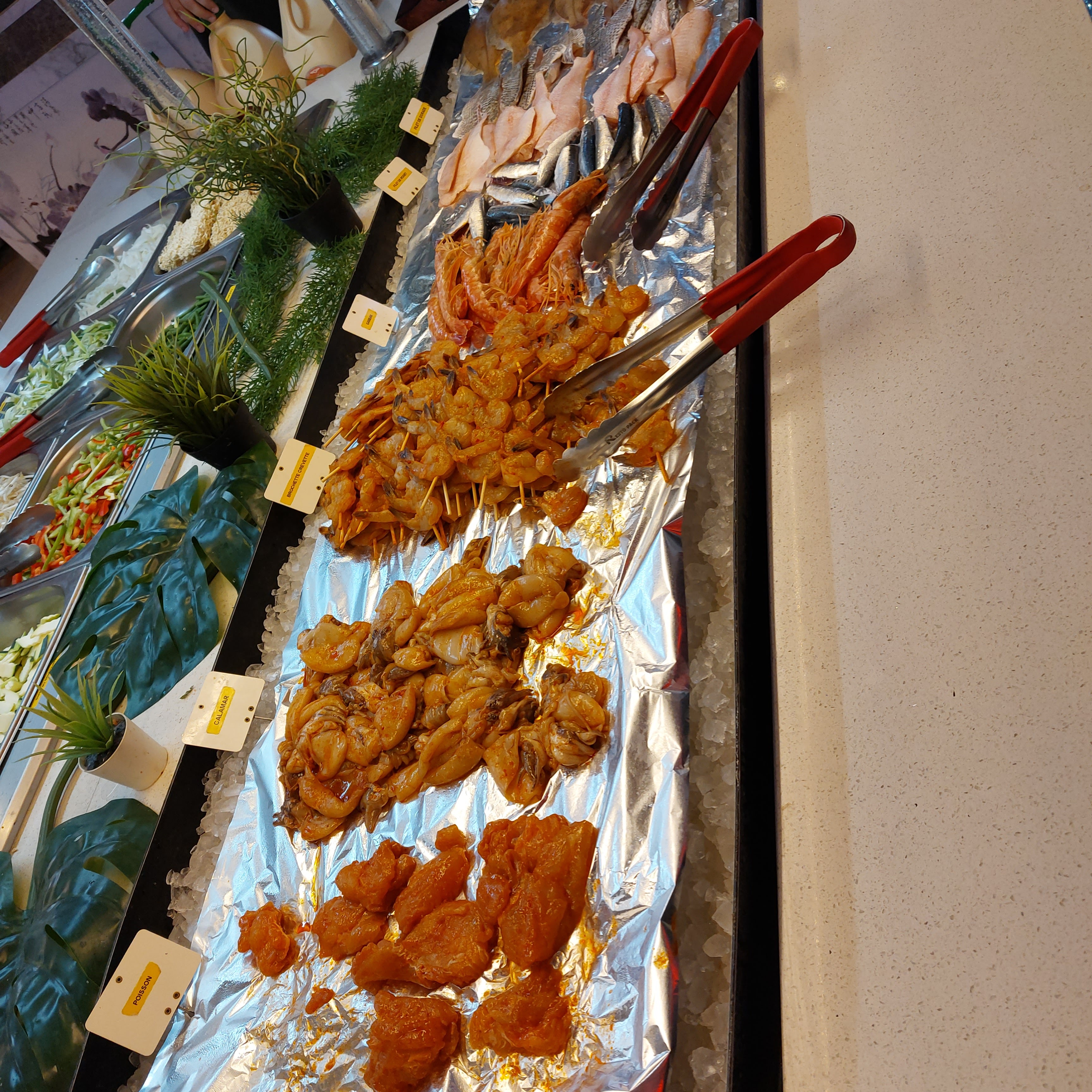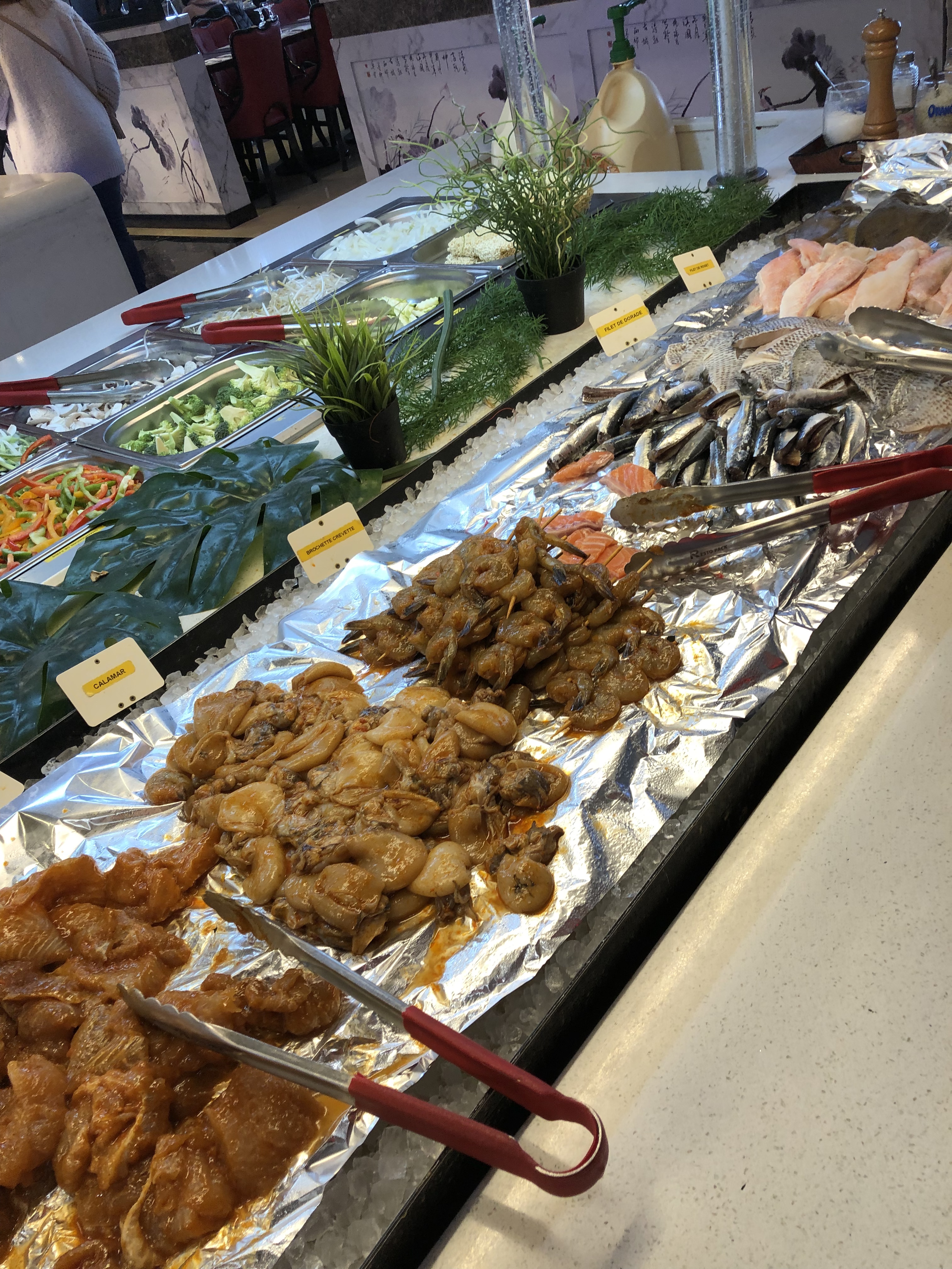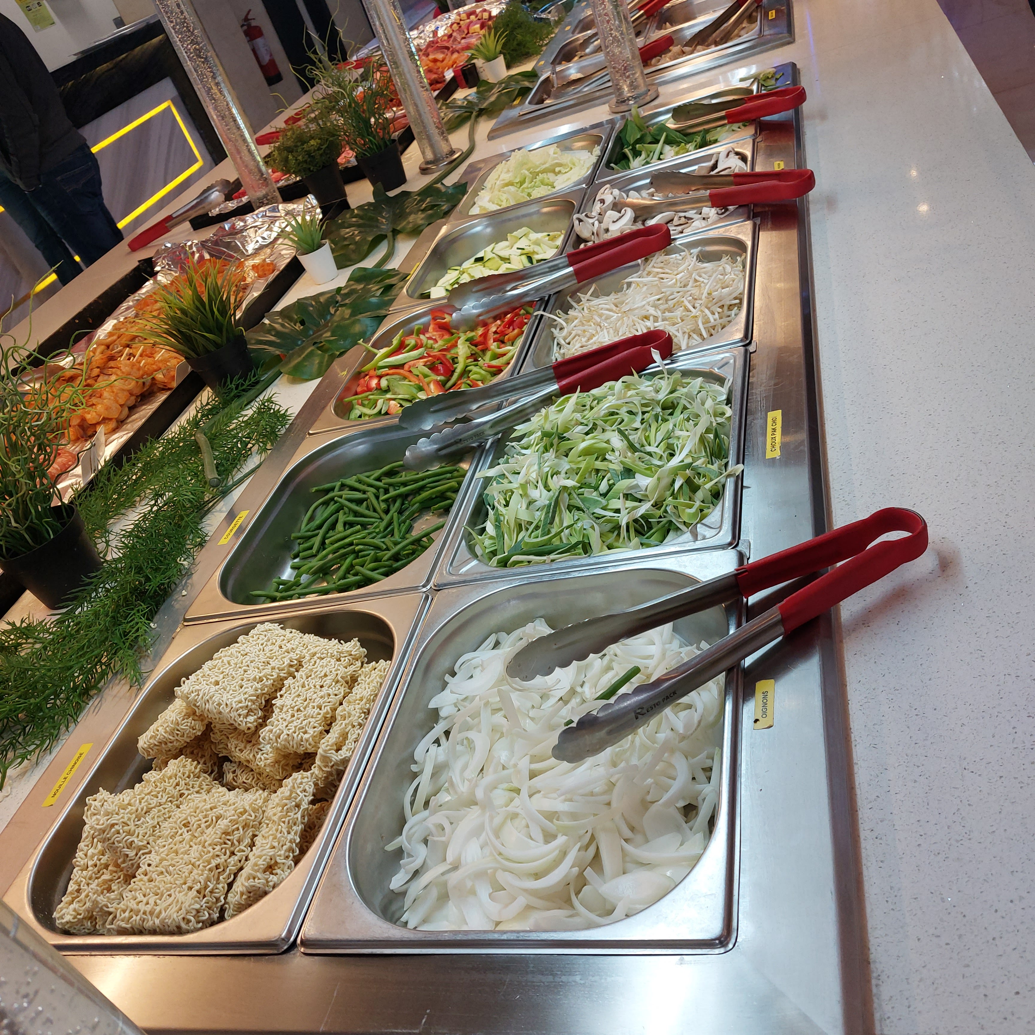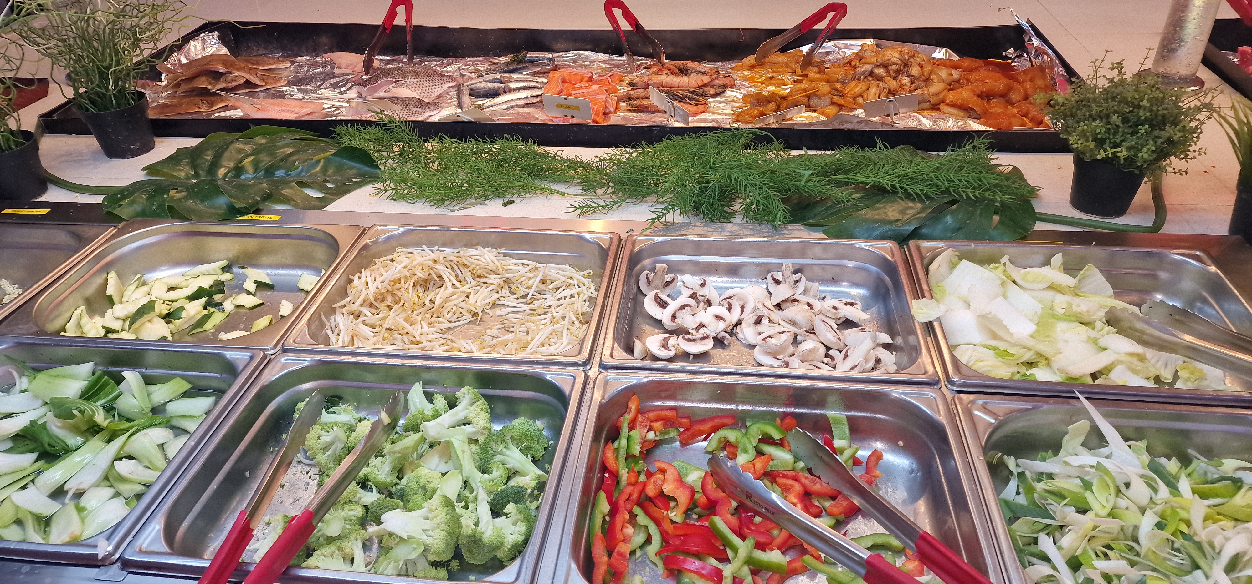 Large choix... Prix abordable... Nous avons beaucoup aimé pour une première fois... Loin des autres restaurants de ce genre où il y a énormément de monde et ou les plats sont visés.. quel plaisir de votre la propreté des plats. Je n'ai pas osé les fruits de mers. Mais chacun fait ce que bon lui semble... Beaucoup de choix de viandes pour le wok.... Merci