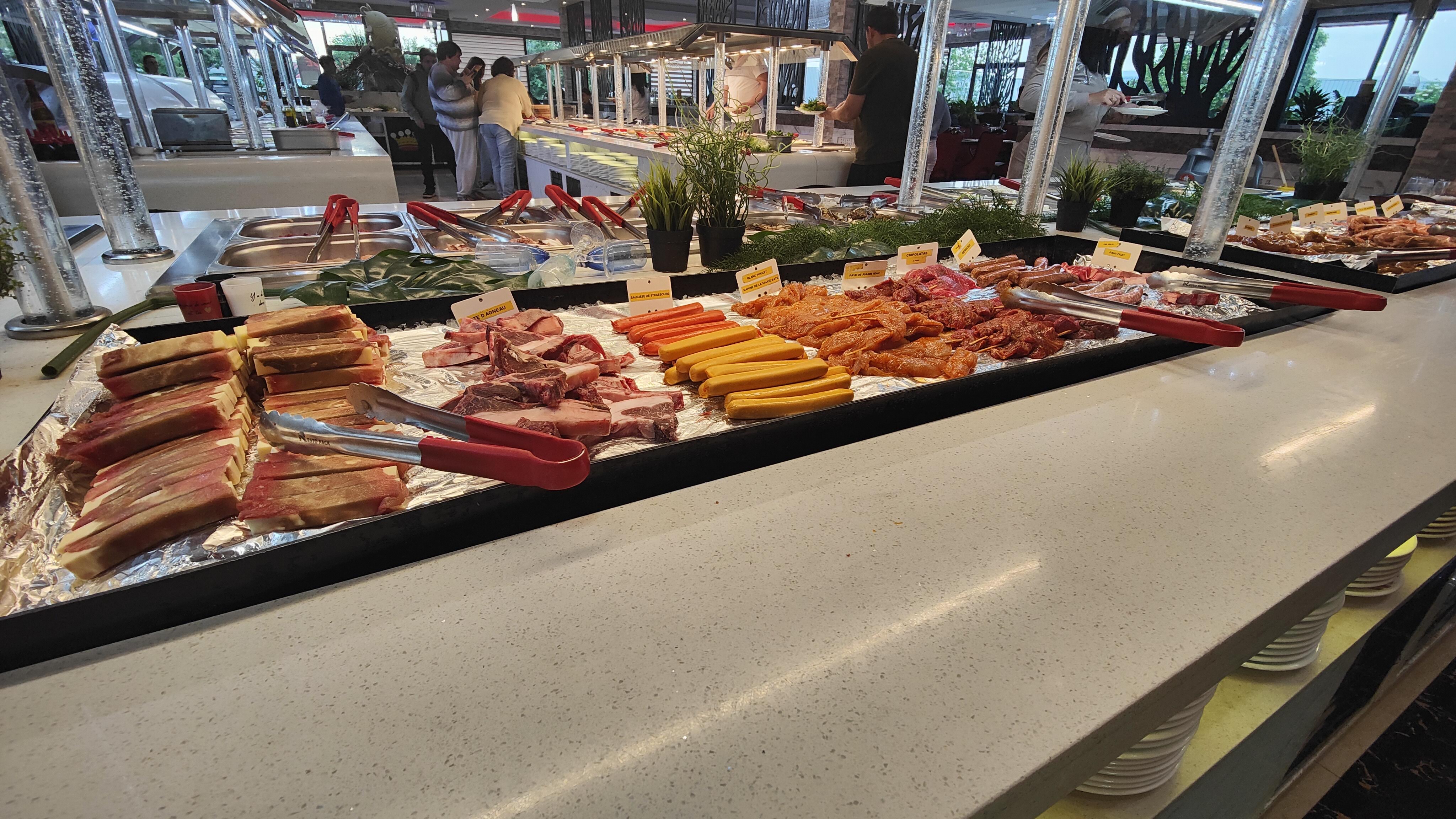 Buffet frais et très complet. Ils passent très souvent débarrasser les assiettes terminées. Pensez à venir tôt le soir car vers 20h il a la queue dehors et le parking est plein. Je reviendrai c’est sûr !