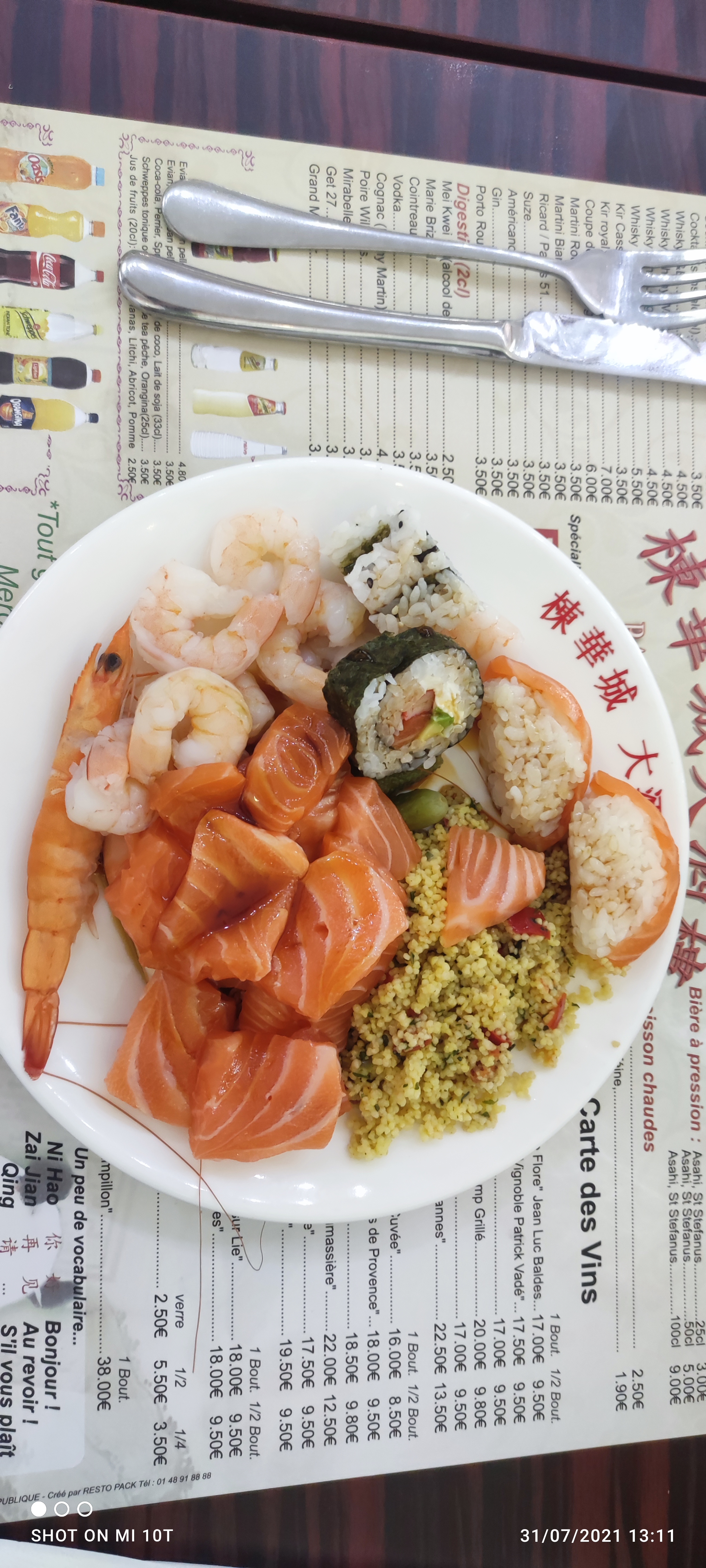 J’ai pas trop aimé les california, je trouvais qu’il était trop gros pour avoir très peu de saumon et avocat (parfois limite pas). La quantité de riz fait qu’on a très vite plus faim alors on a limite rien mangé… Après 21h, il ne renouvelle plus le buffet de sushi alors que le restaurant ferme à 23h45… sauf sur commande mais j’avais l’impression de le forcer à faire un peu quand j’en ai demandé sur commande. Merci au chef qui a pris le temps de me refaire des sushi à 21h parce qu’il n’y en avait plus. J’ai vraiment pas aimé le ton de la voix du serveur (un peu foncé de couleur de peau). Je ne reviendrai pas.