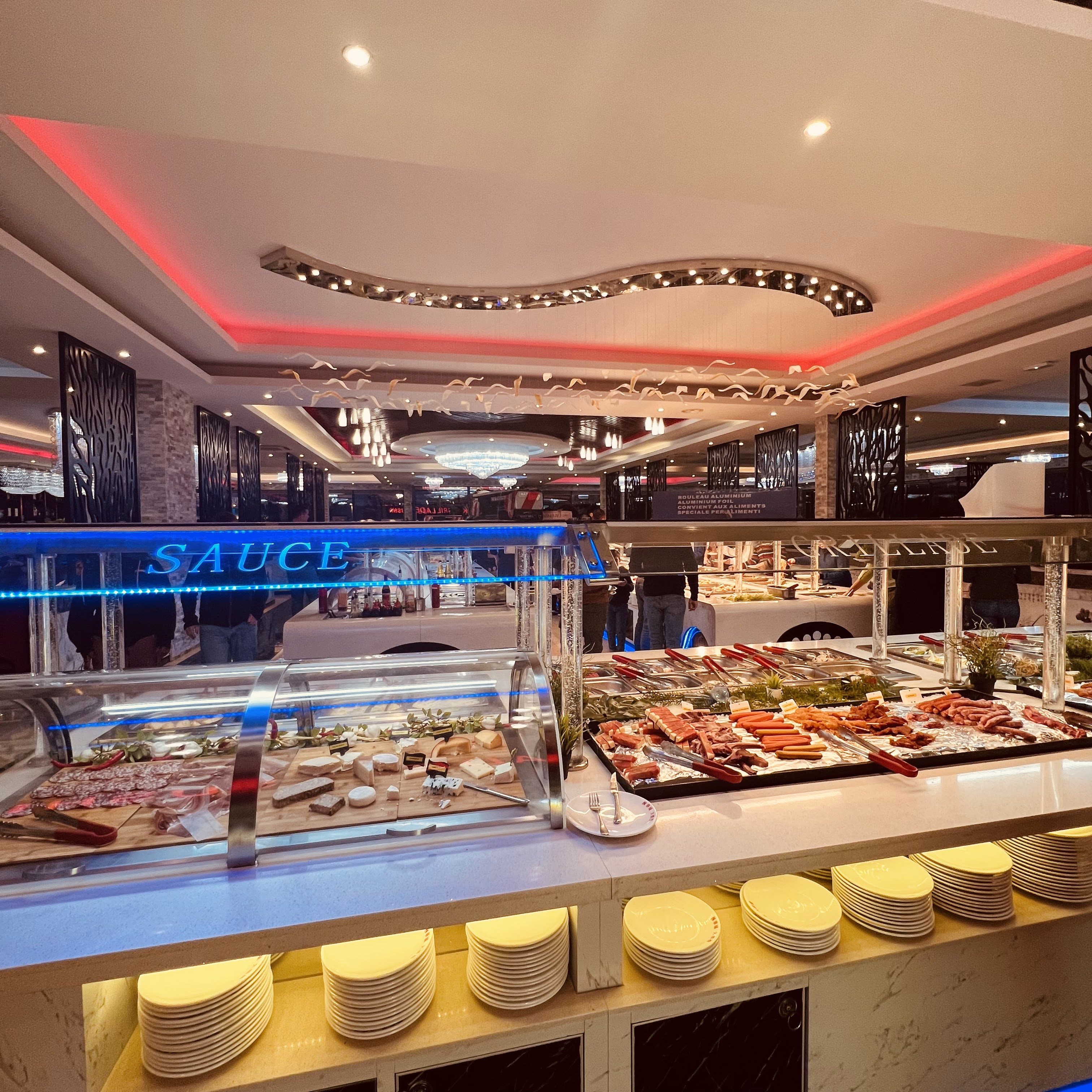 Ils vous mettent à une place stratégique pour eux et ils vous surveillent truc de dingue j’avais l’impression d’être dans squid game les plats sont pas fous et si tu prend une assiette de trop tu doit payer 5€ les prix sont les meme que les bistrots parisiens et la qualité et pire que flunch pour vous donner une idée et à cause de ces plats j’ai eu une indigestion