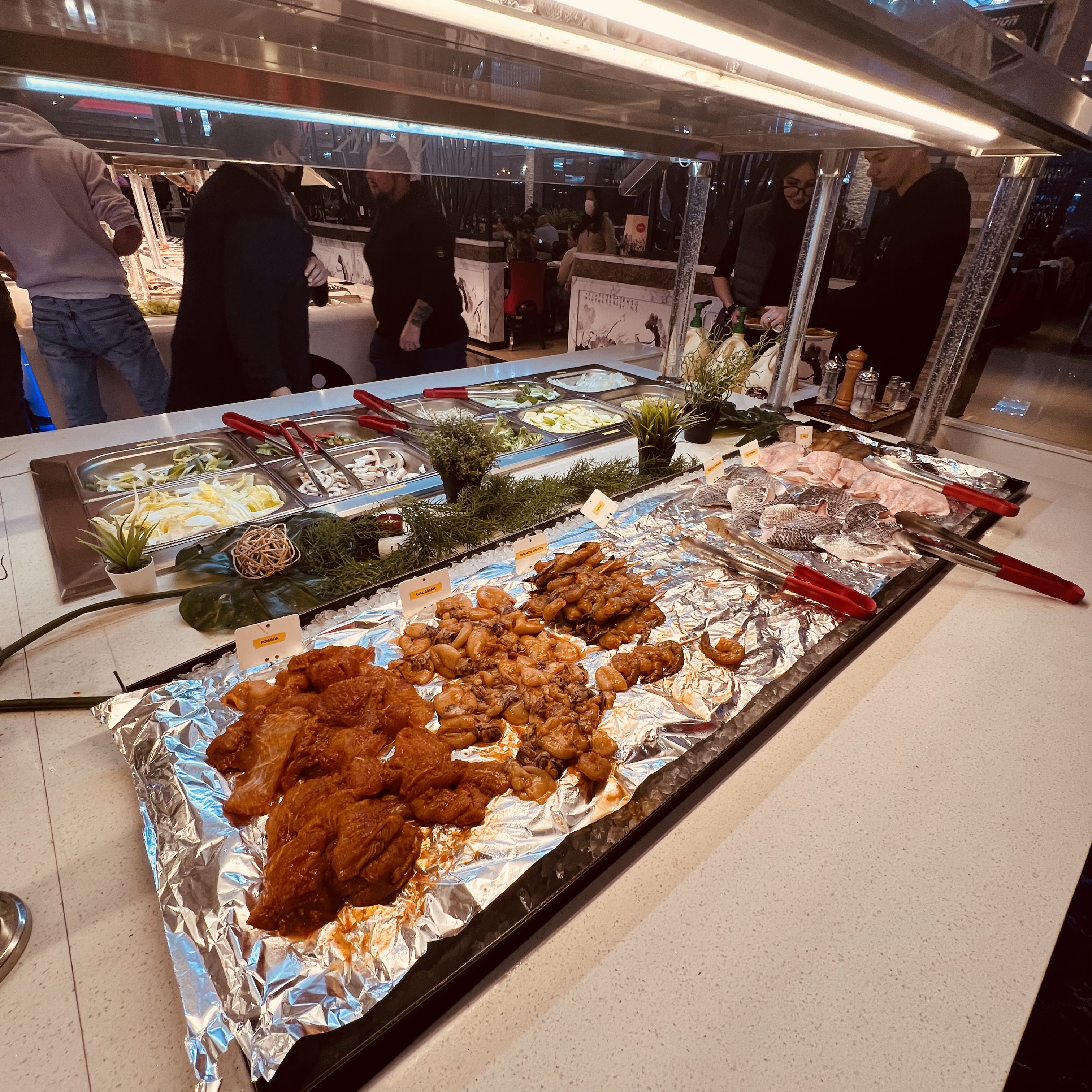Experience pas du tout terrible un brouhaha infernal bagarre au buffet avec les autres clients mauvaise gestion et organisation de la partie grill le cuisinier ne sais plus qui est à qui et est pas du tout serviable. La salle est bien trop grande ce qui crée cette mbiance infernale je ne recommande pas l’expérience en famille encore moins en date tete a tete sauf si votre kiff c’est le bruit