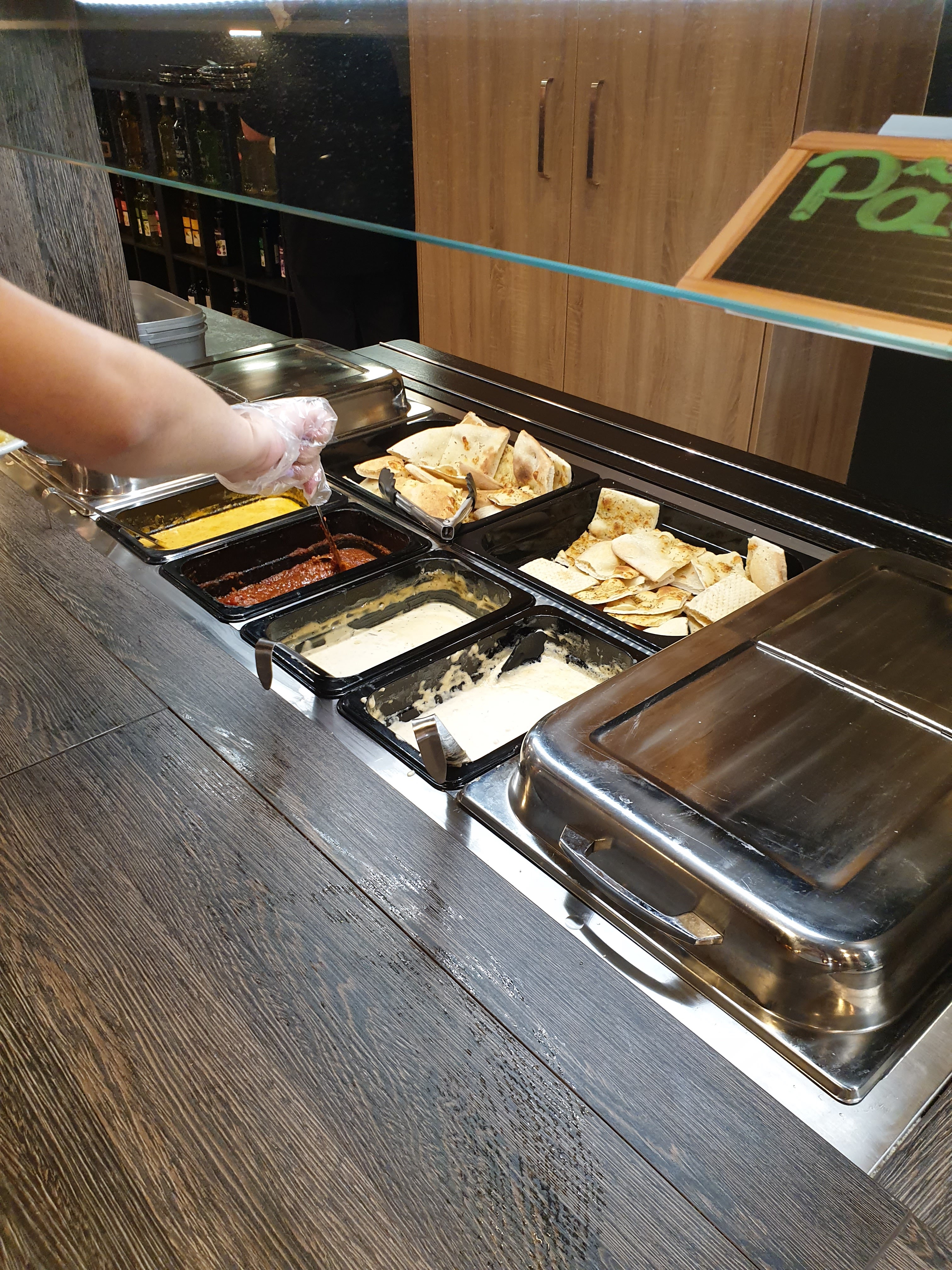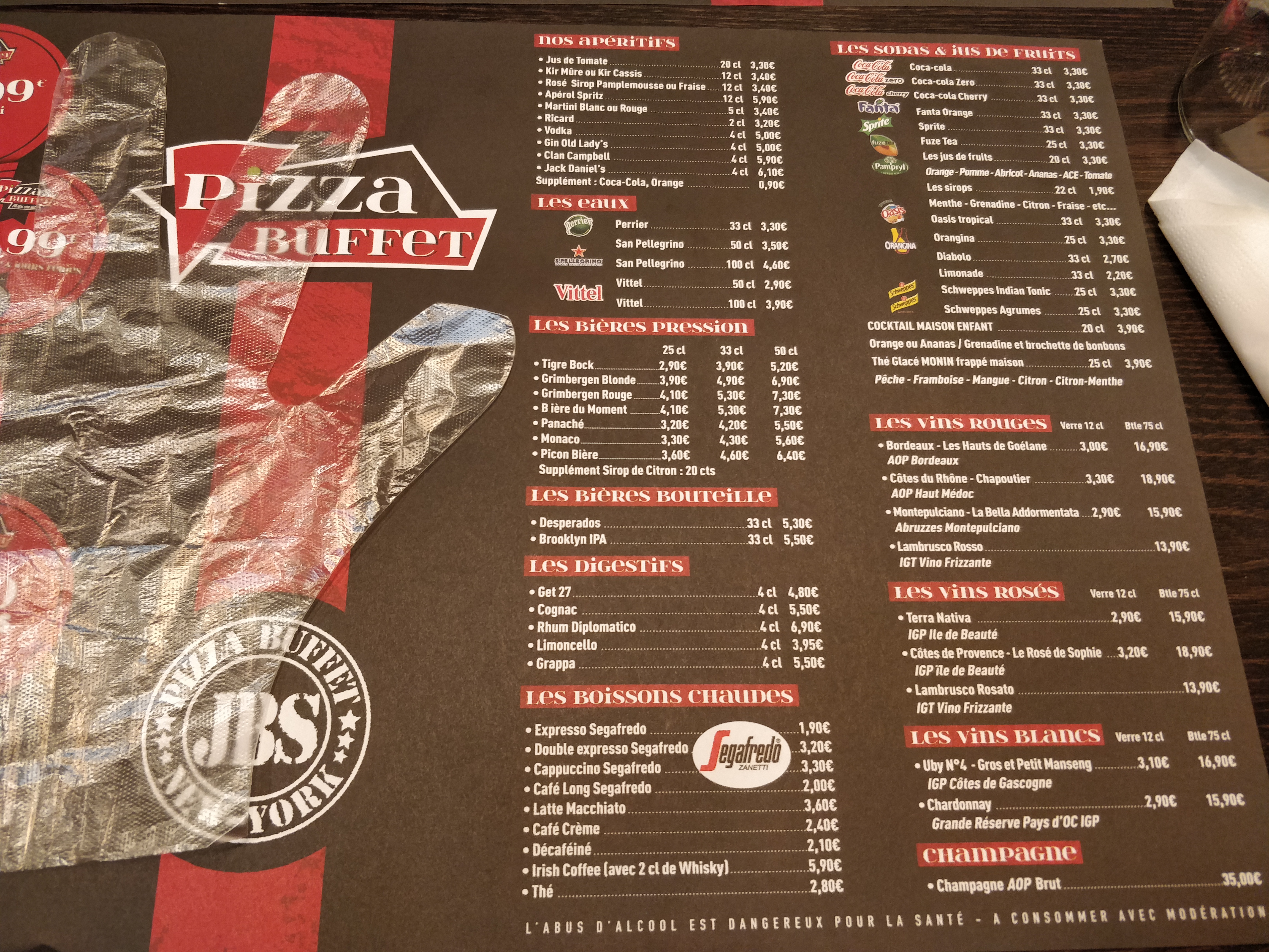 Personnel super agréable. Le buffet est copieux et toujours bien achalandé...les pizzas sont chaudes moelleuses, originales( pour certaines !) J adore aussi les cocktails. Mes enfants y ont largement trouvé leur compte entre les pizzas aux Smarties et l aire de jeux!!!!