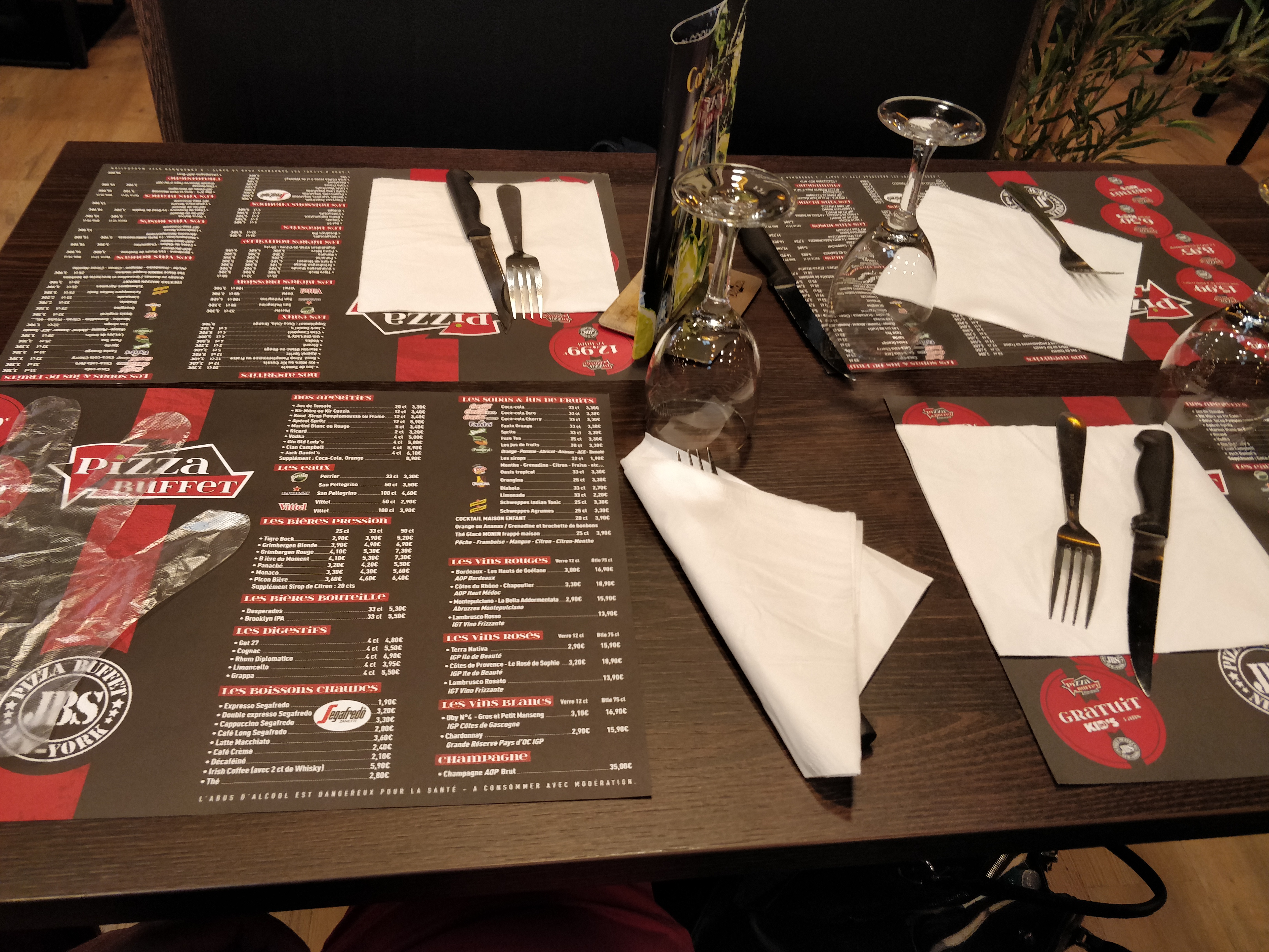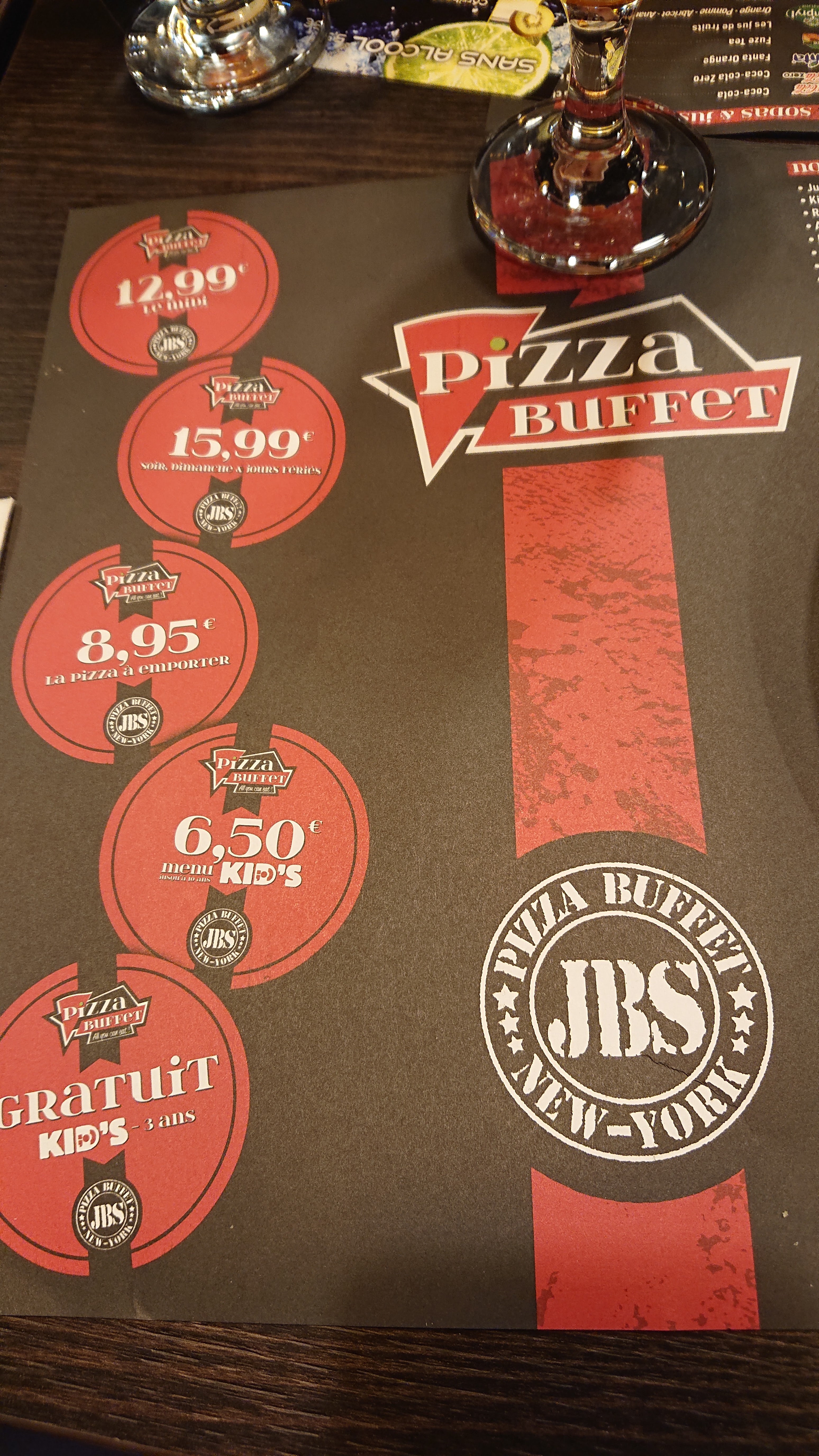 Pas mal pour une première expérience mais beaucoup de monde et d'enfants. Buffet bien achalandé tant dans les pizzas que dans les desserts. Boissons un peu chères, personnel sympa.