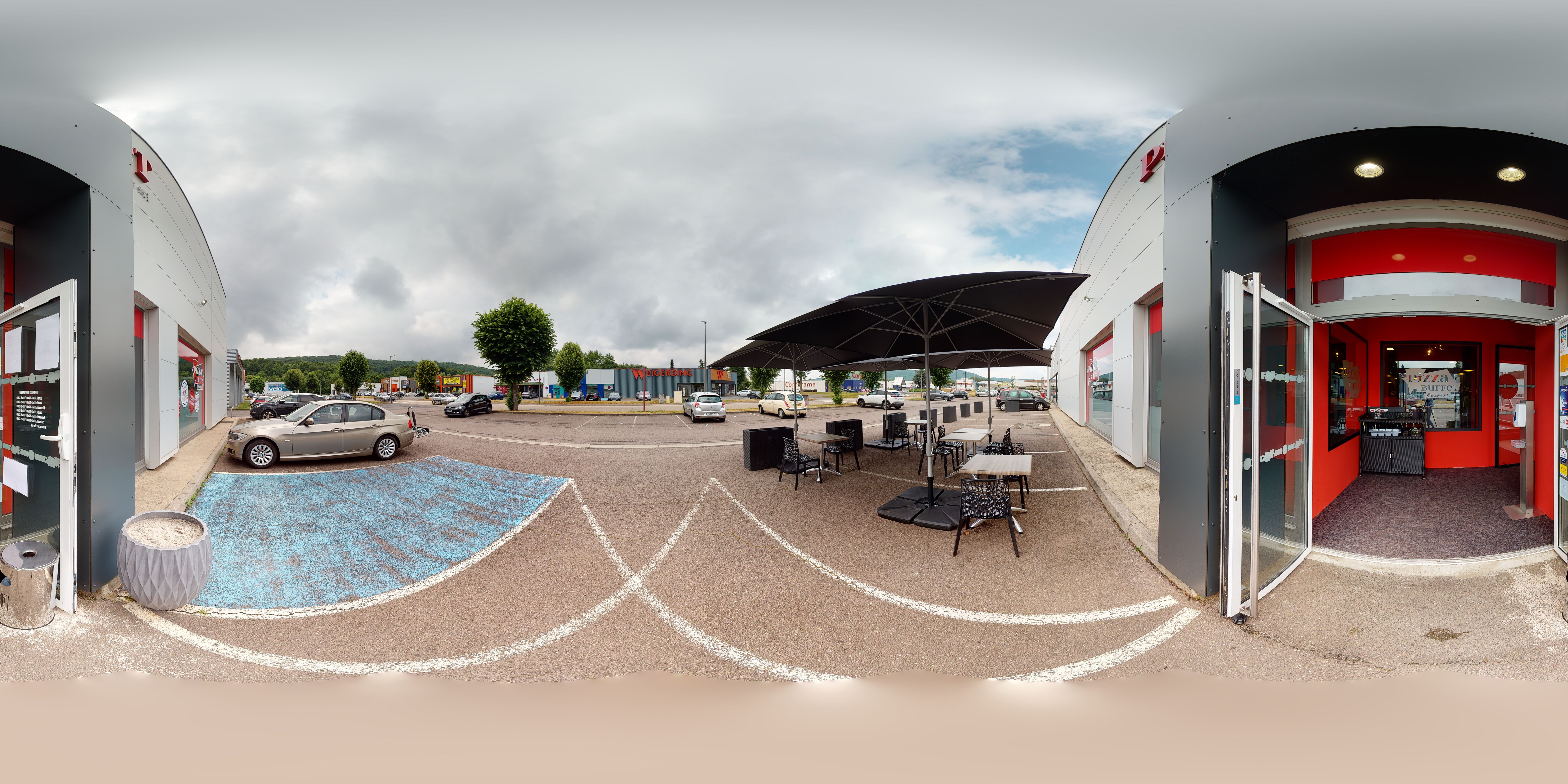 Accès facile. Terrasse Cadre interieur spacieux et rafraichissant. Propre et agréable. De la place pour circuler entre les allées et les tables qui évite de se retrouver collées les uns aux autres et parfaitement adapté aux personnes à mobilité réduite ( béquilles, fauteuil roulant ...) Un espace jeux pour les enfants ... Une allée réservée aux plats propose divers comptoirs où l'on peut se servir facilement. Une serveuse agréable ... Un prix fixe qui permet le plaisir de pouvoir goûter et découvrir ... Des pizzas variées salées et sucrées à la pâte croustillante et correctement fournie .. Prestation globale appréciable pour sortir en toute simplicité entre amis et famille.