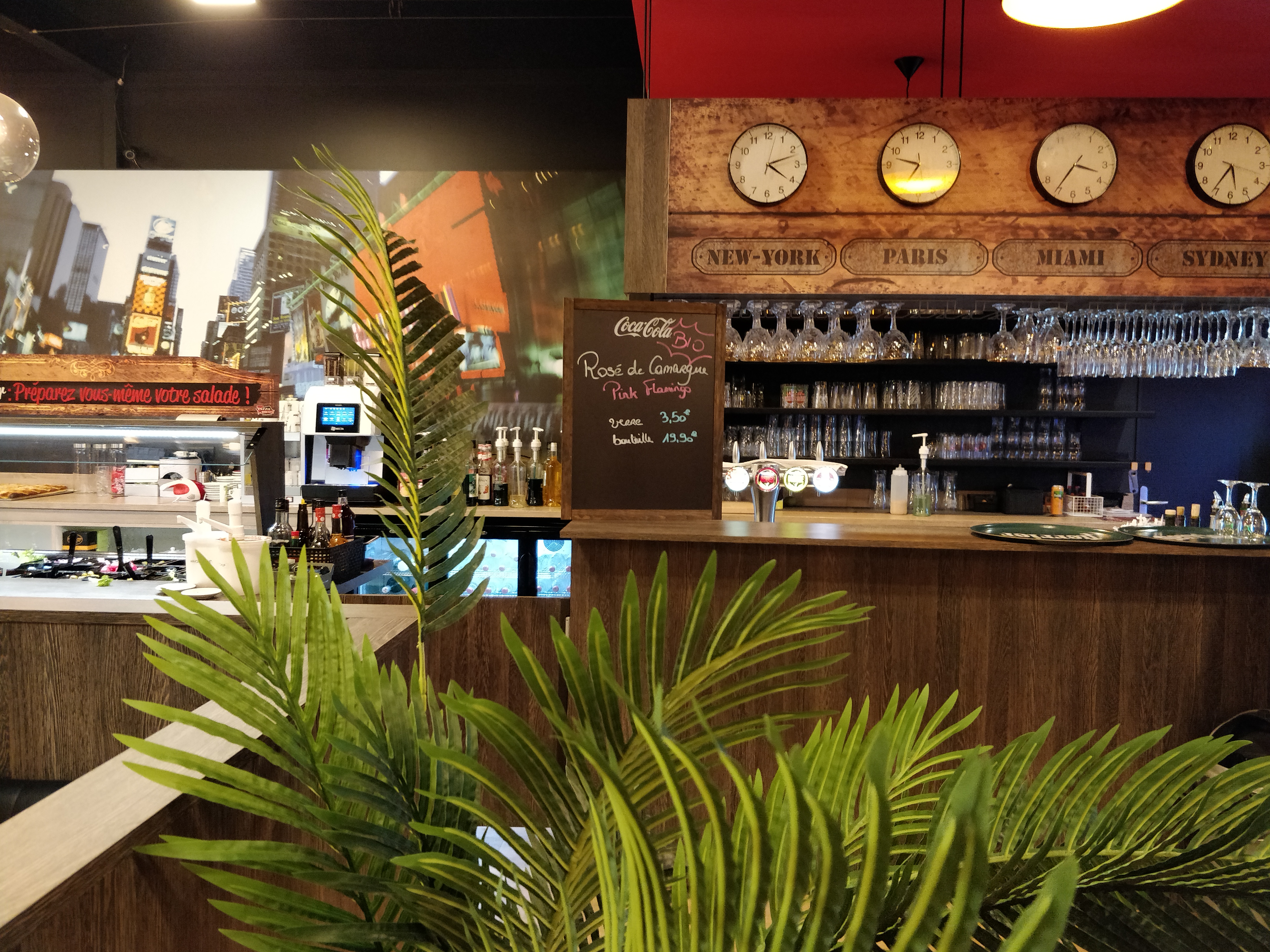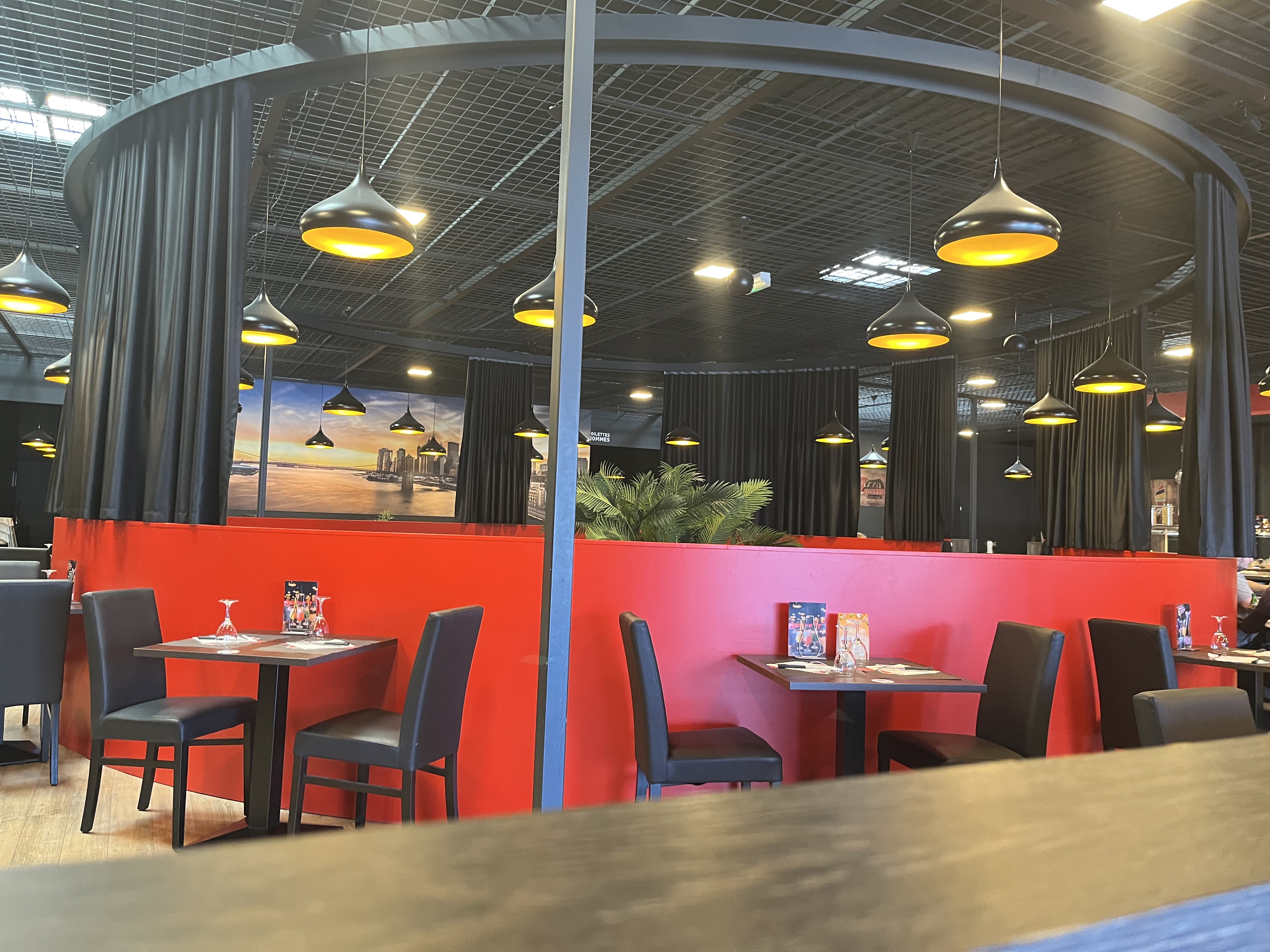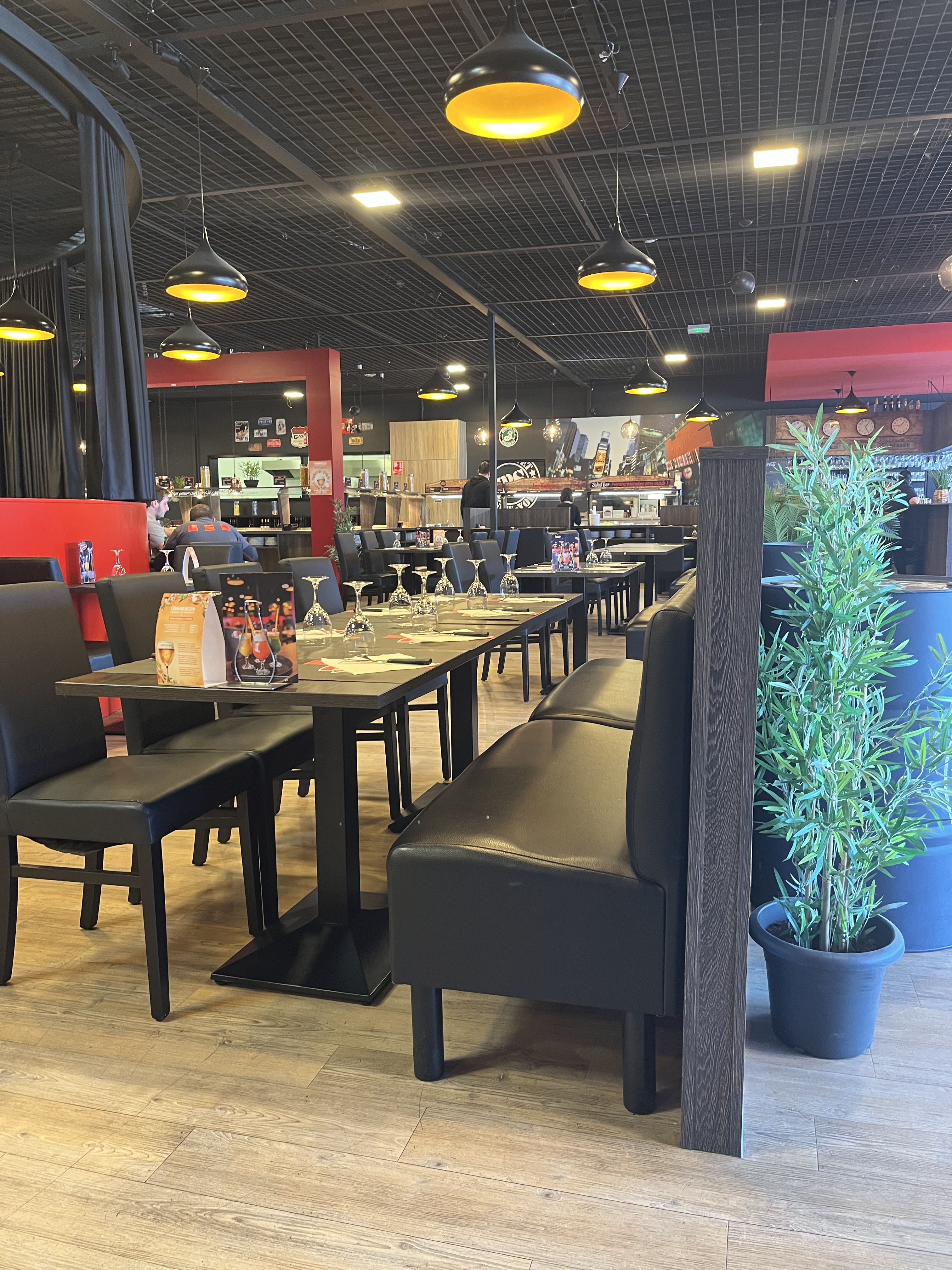 Personnel sympathique mais peu souriant, semble fatigué. Restaurant dans le thème américain. Carte de boissons au top, idem pour les cocktails. Le repas : que dire … un buffet d’entrée complet et frais mais bon on sent le goût des boites de conserves ( maïs, olives ect). Buffet pâtes : gnocchi trop cuit, pâtes trop cuites et trop grasse. Sauces bonnes (carbonara, bolognaise ect..) mais beaucoup trop grasses Buffet pizza : pâtes trop épaisse et dure, pas vraiment de goût ni de garniture. Pas vraiment de renouvellement depuis quelques mois. Pizza froide malgré l’appareil pour les réchauffer. Dommage ! Buffet dessert bien garnit, mais beaucoup de décongeler. Enfin bon je n’y retournerai plus. Je me faisait une joie de manger de bonne pizza. Tant pis. Nous ne reviendrons pas.
