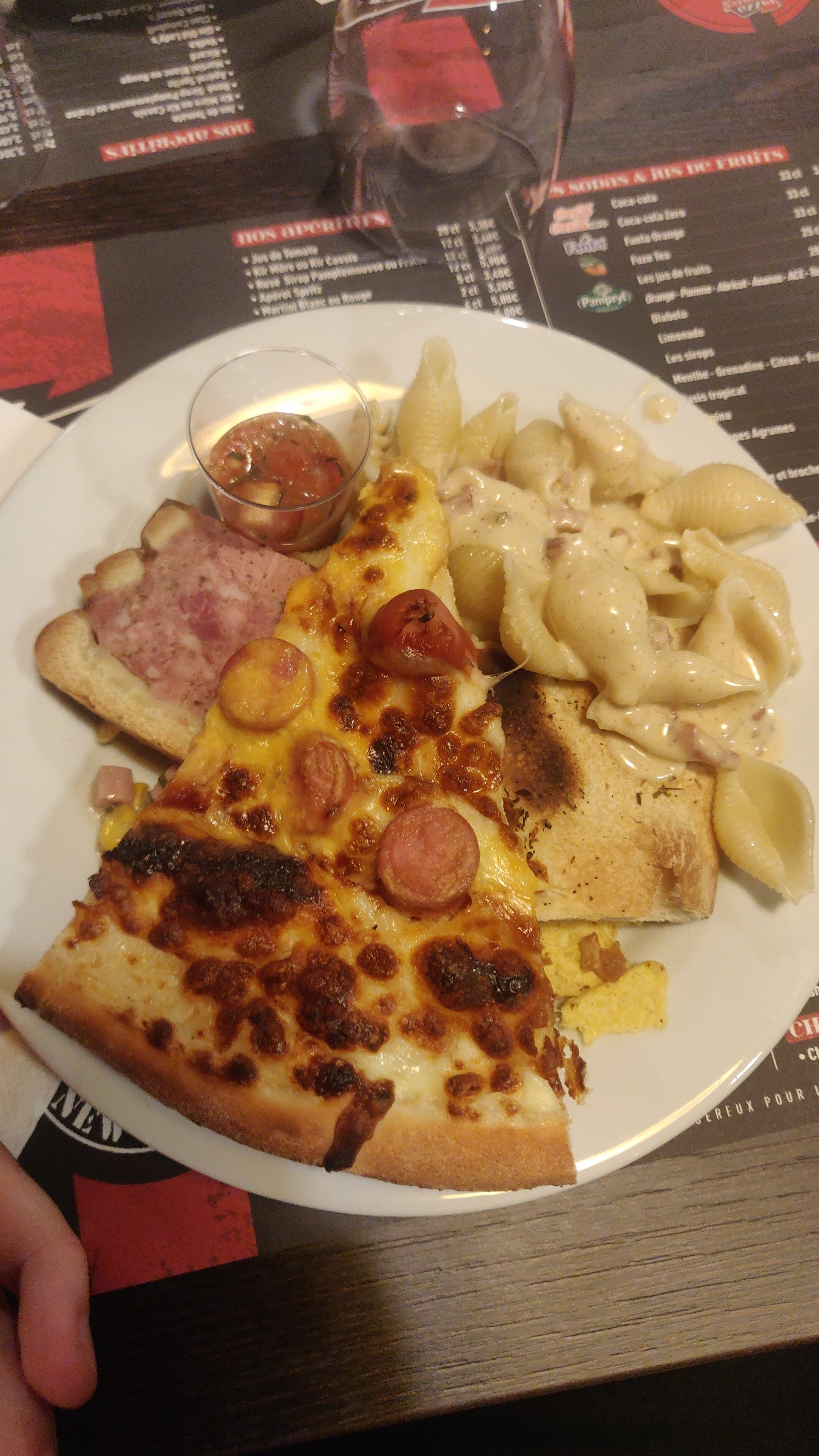 Super bien manger. Large choix de pizzas . Je recommande pour les gros mangeurs. Lol