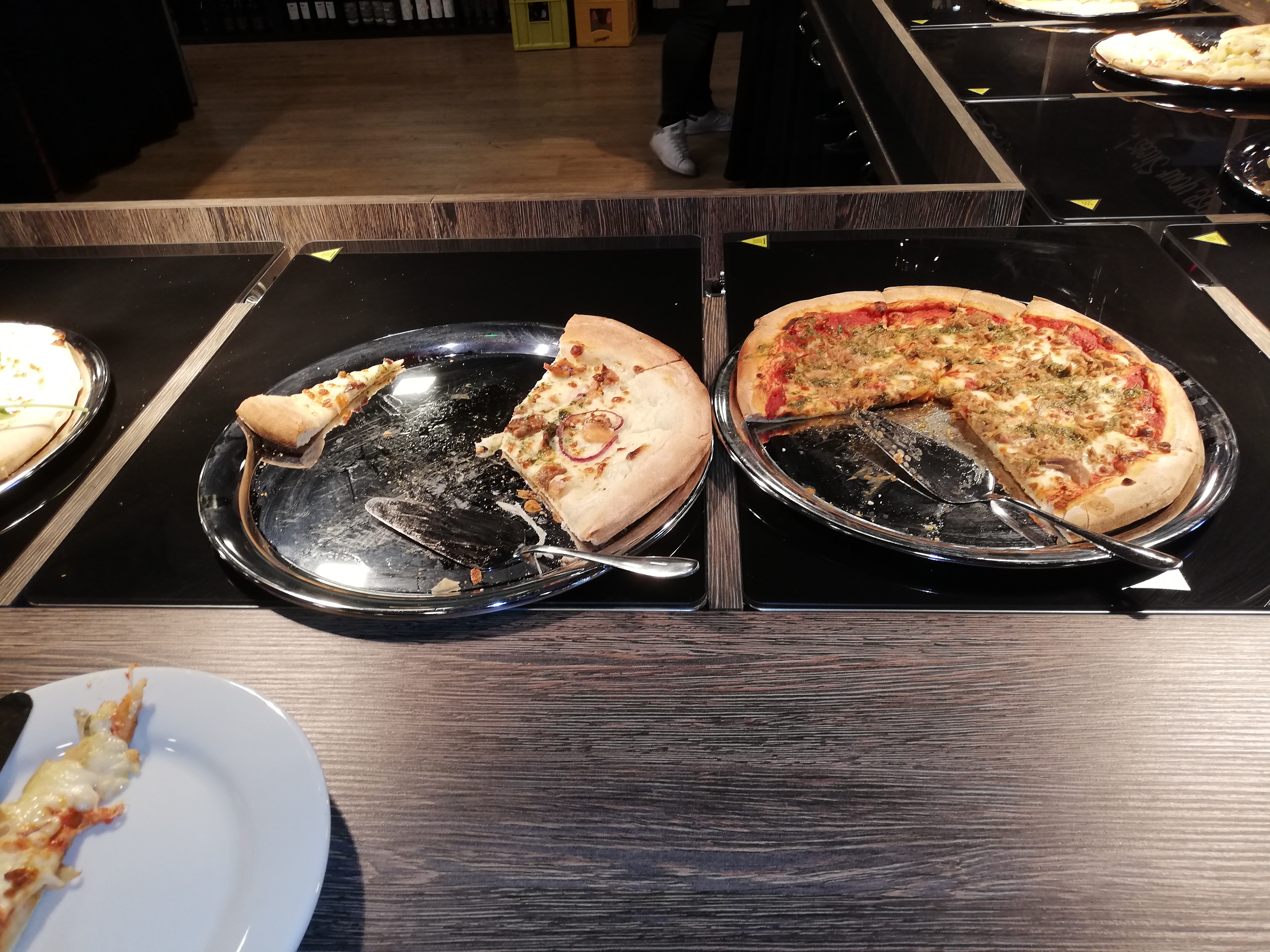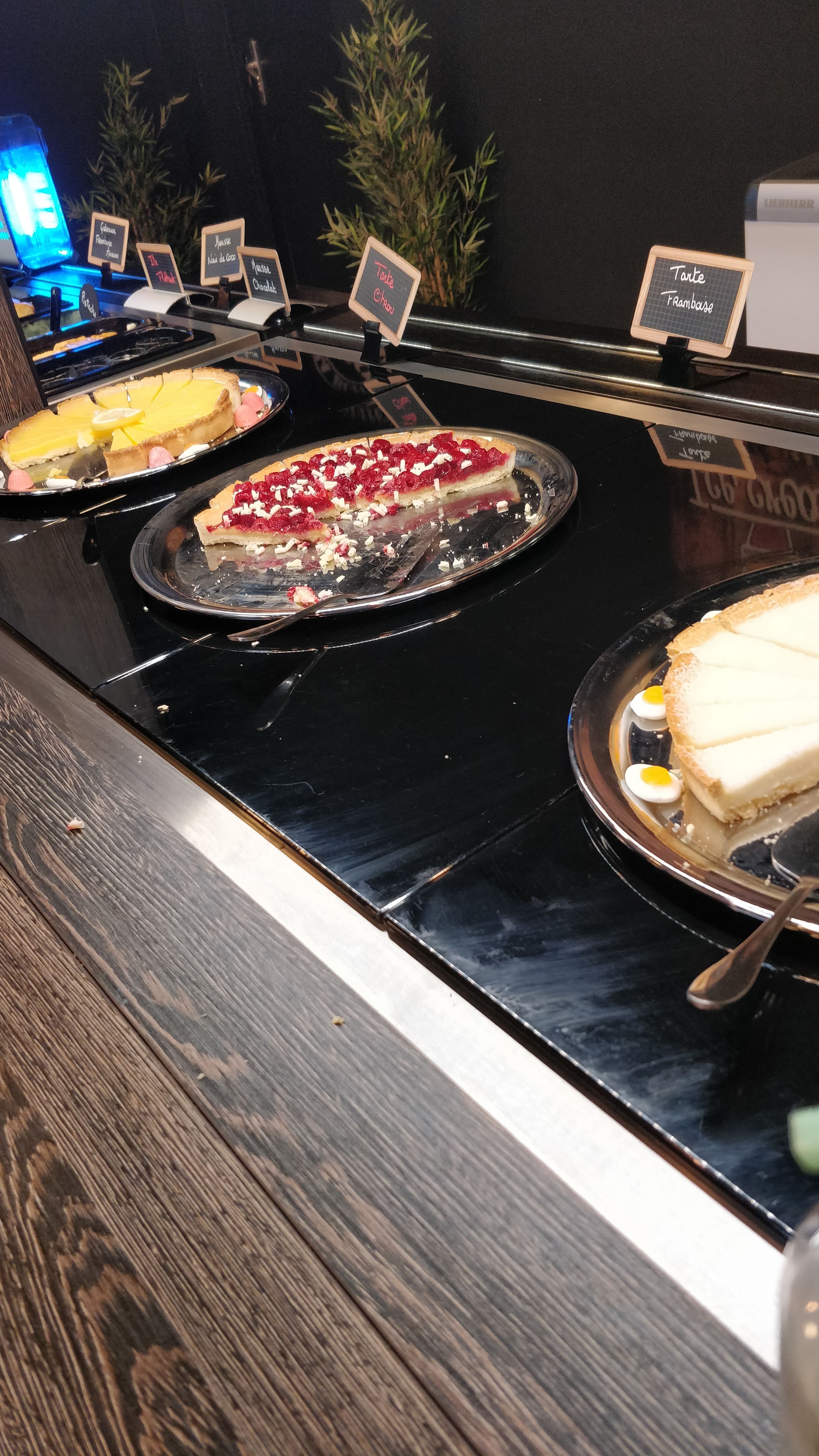 Je me réjouissais d’aller manger dans ce restaurant car les photos des buffets publiées sur Facebook étaient très alléchantes. Qu’elle ne fut pas notre déception !!! La pâte des pizza est dure à force de réchauffer sur des plaques chauffantes et cela ne donne pas envie, mais c’est surtout le buffet des desserts qui a été le plus décevant et ne ressemble en rien aux photos publiées : les pizzas sucrées sont complètement desséchées, les îles flottantes manquent de crème anglaise, la tarte aux fruits rouges a l’air de dater, la mousse aux framboises a un goût de chimique… dommage 😢 car le personnel est sympathique.