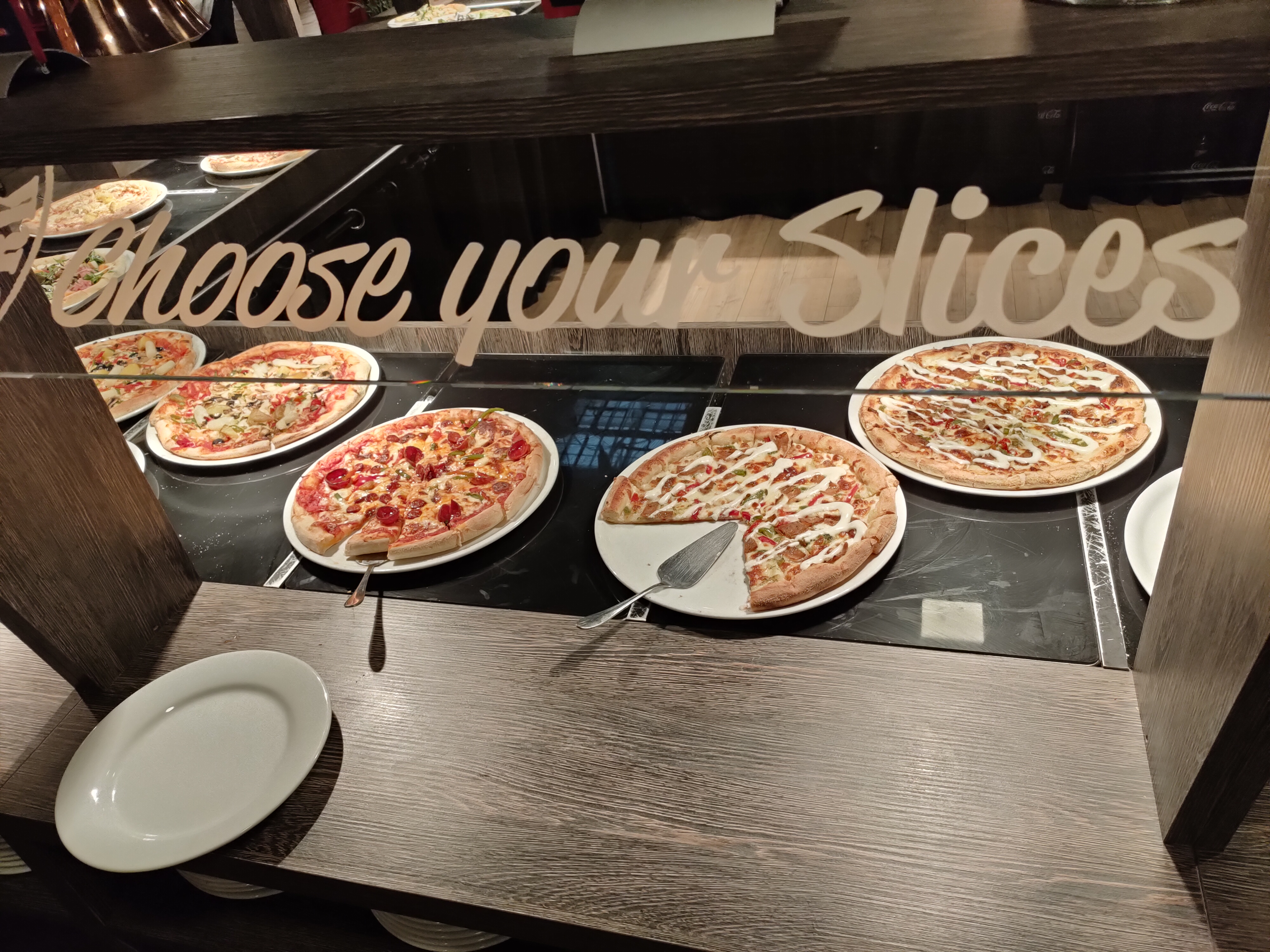 Pour une première, c'est vraiment sympa, le serveur vous explique comment ça se passe, des entrées, des pâtes, des pizzas, du fromages, et des desserts, et pizzas sucrées à volontés, il y'a même des petits morceaux de pizza coupé comme ça moins de gâchis ...... Un super choix, un coin pour que les enfants puissent jouer sans déranger les autres personnes et les toilettes sont bien tenus..... Conclusion je vous invite à essayer.