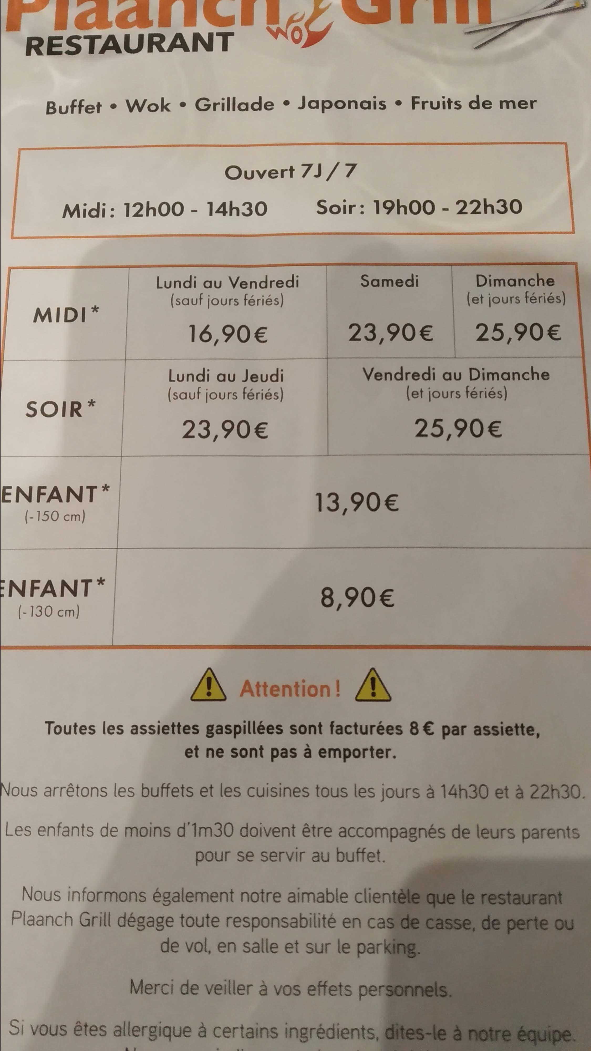 Madame Monsieur, bonjour Le restaurant plancha Grill est à volonté de l'entrée au dessert. Après ce n'est pas un 3 ou 4 étoiles ni même gastronomique alors pour passer une bonne heure entre amis, famille etc sans dépenser énormément, c'est ce qu'il faut ... Des produits basiques en quantité avec une qualité moyenne basse tout de même pour être honnête ... Mes enfants et moi-même aimons nous y rendre et on sait à quoi s'attendre et cela nous va ... Je recommande mais ce n'est qu'un avis personnel et les goûts sont subjectifs ...