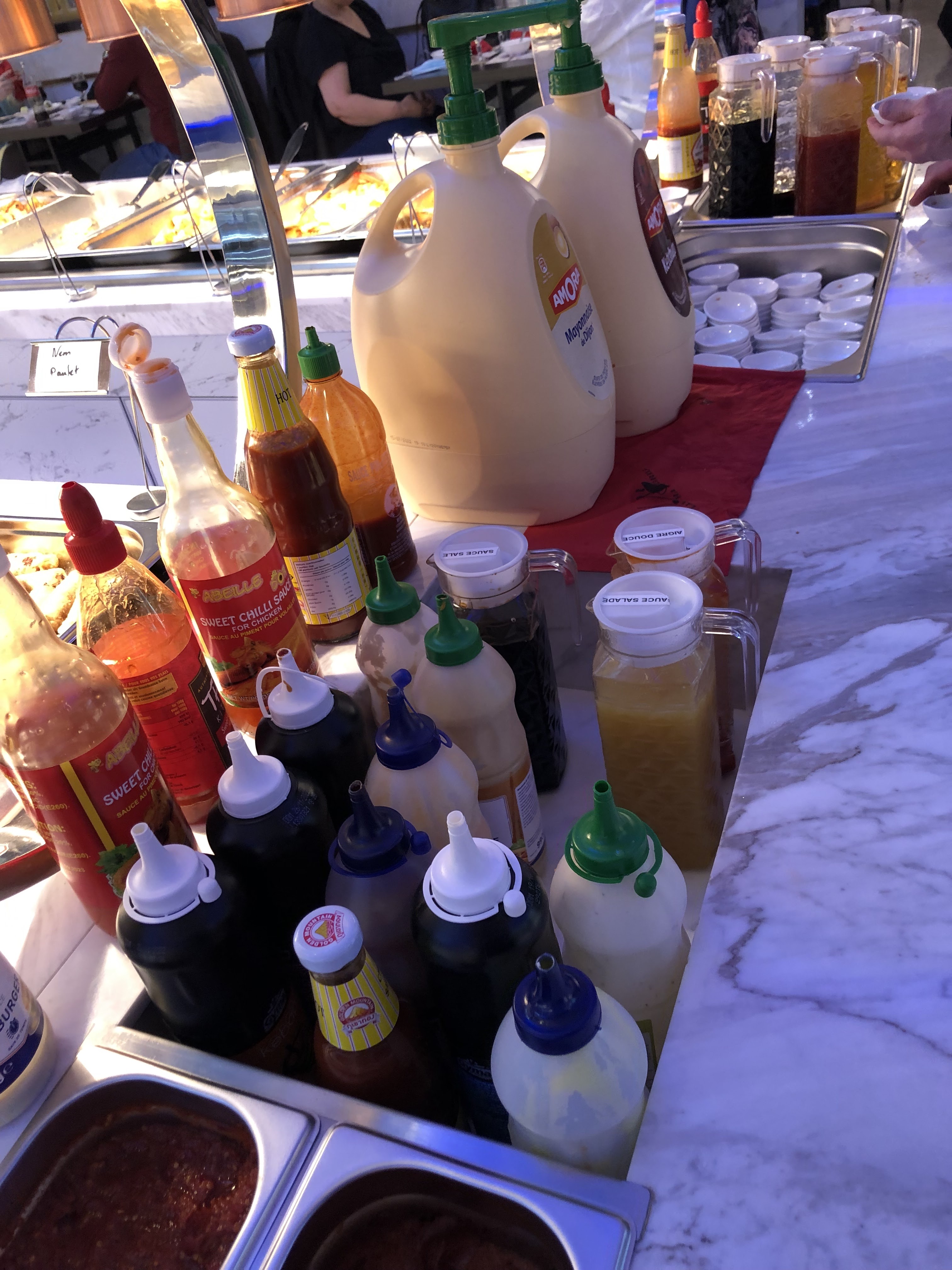 Déçu je m'attendais à mieux pour ma part je suis sûrement tomber où les légumes, crevettes et d'autres plats sont secs par rapport aux lumières chauffantes. Je n'y retournerais pas c'est certains