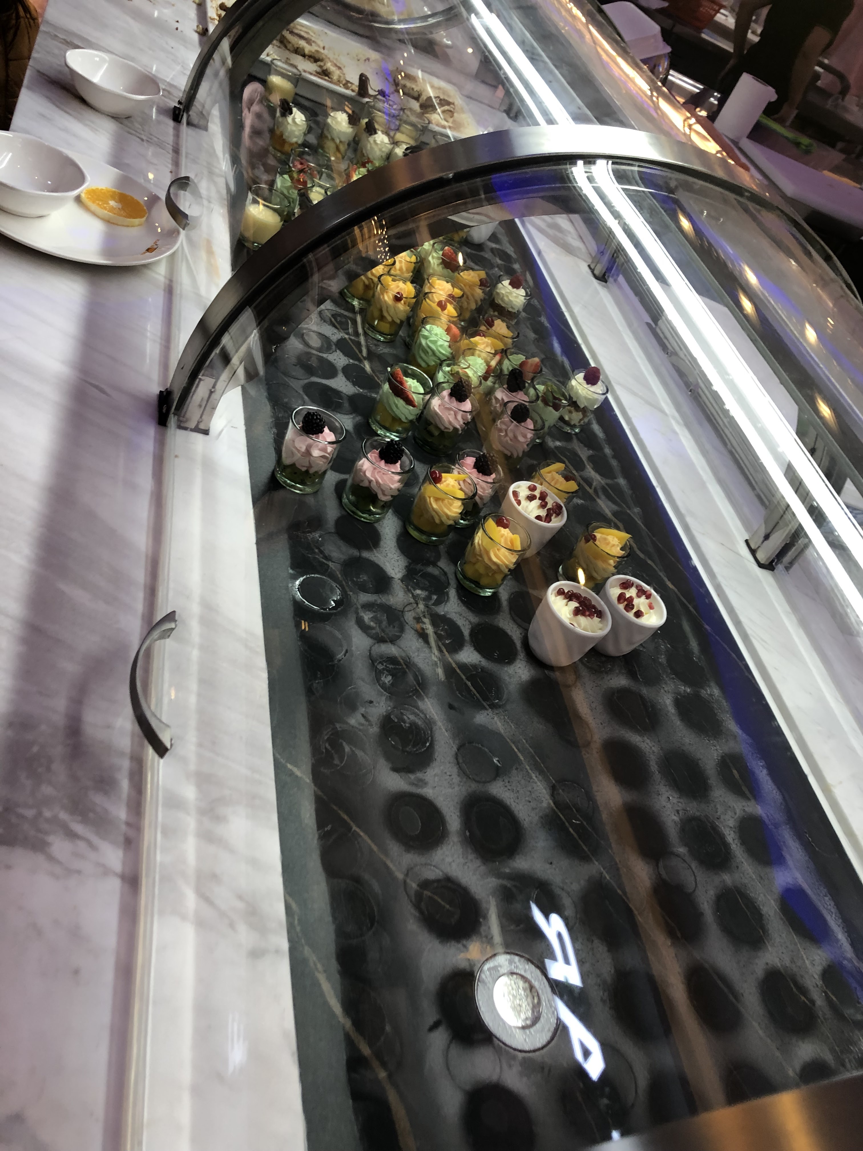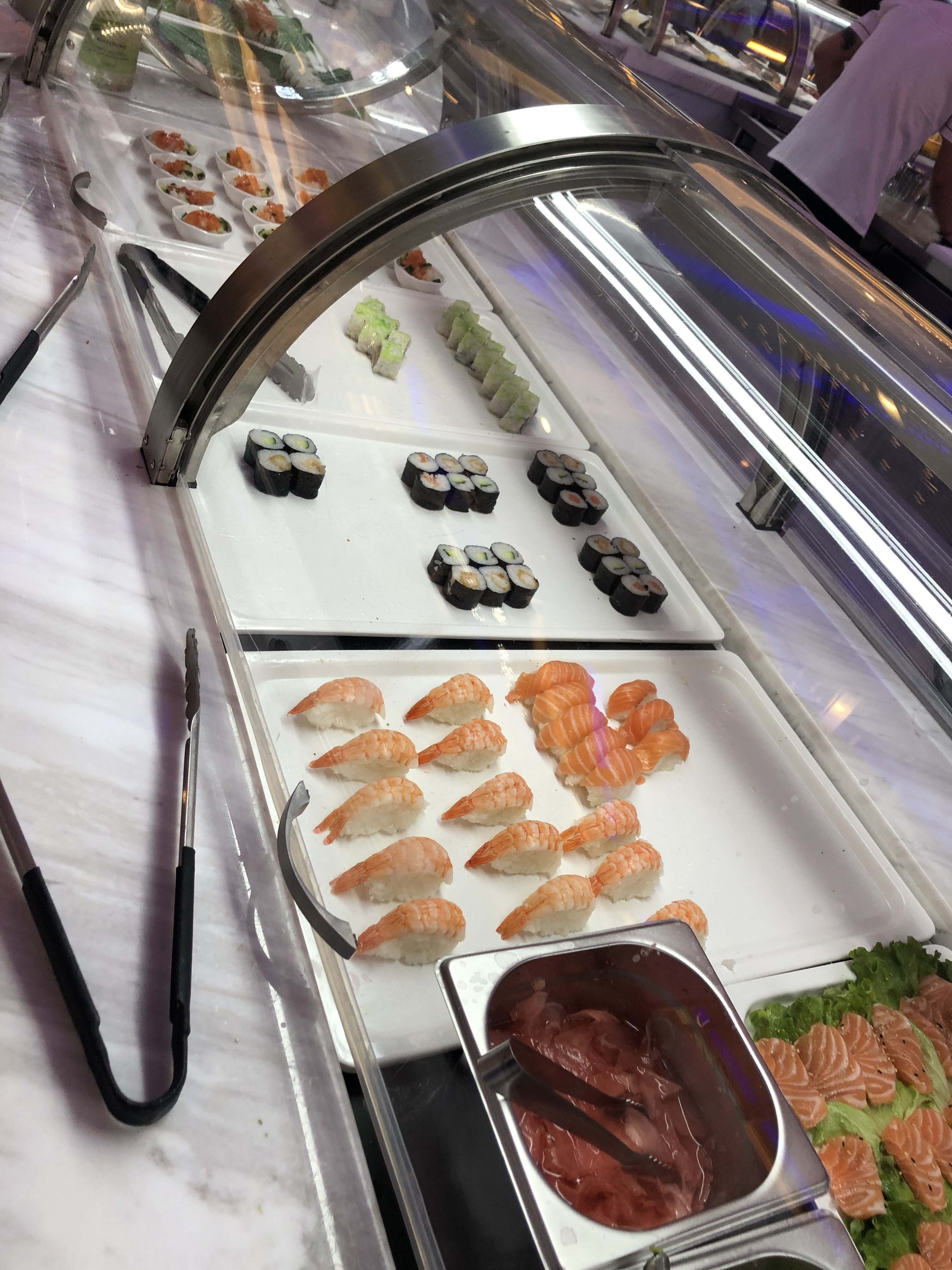 Pas mal de choix. Mais dommage que le froid n'était pas froid. Les desserts sont poudreux. Sushi trop compact en riz. Sinon très belle déco