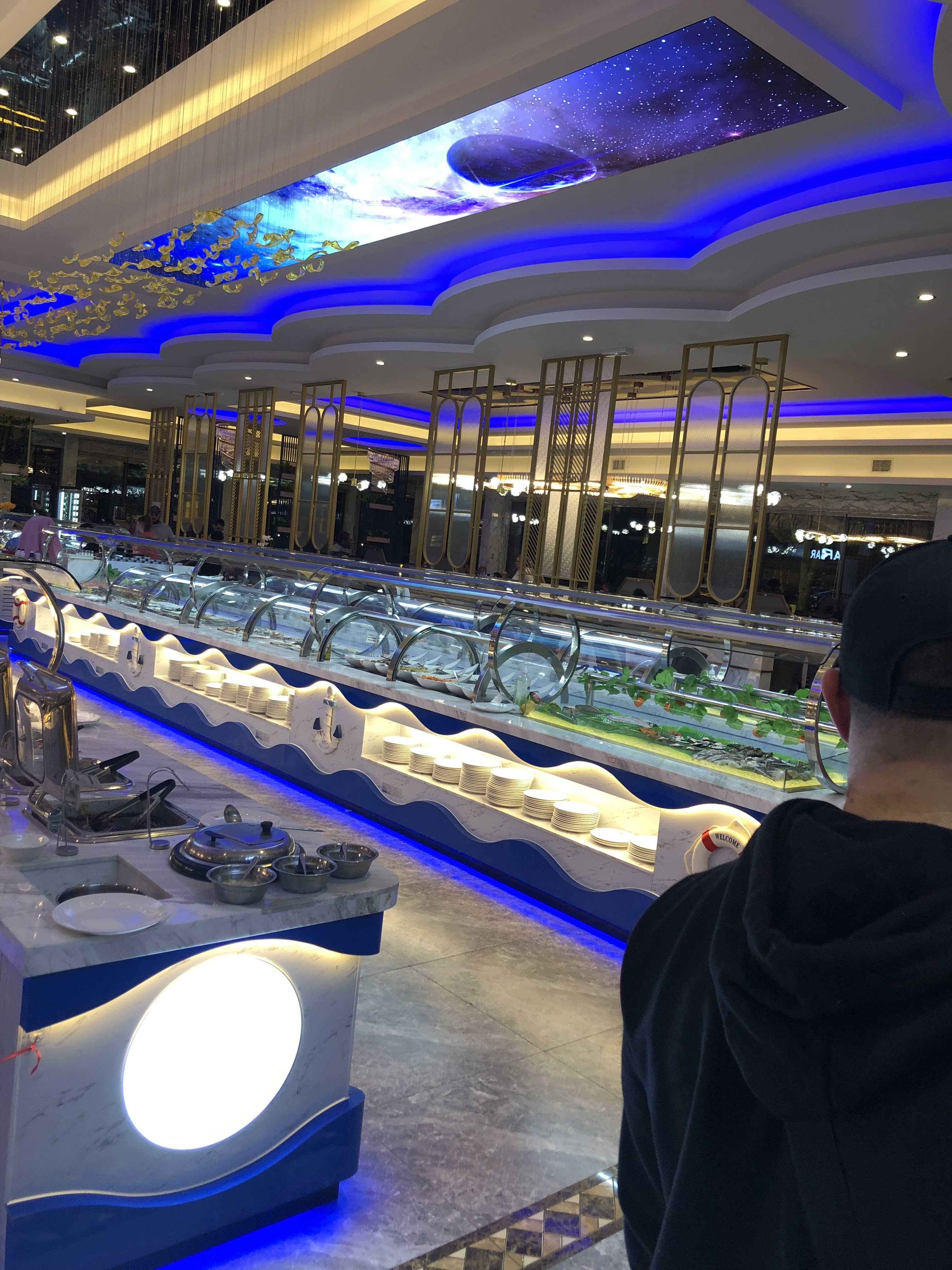 Restaurant spacieux et magnifiquement décoré. Énormément de choix, viandes, poissons, sushis, grill, salades, fritures, fruits de mer et desserts. C'est très bon 😋