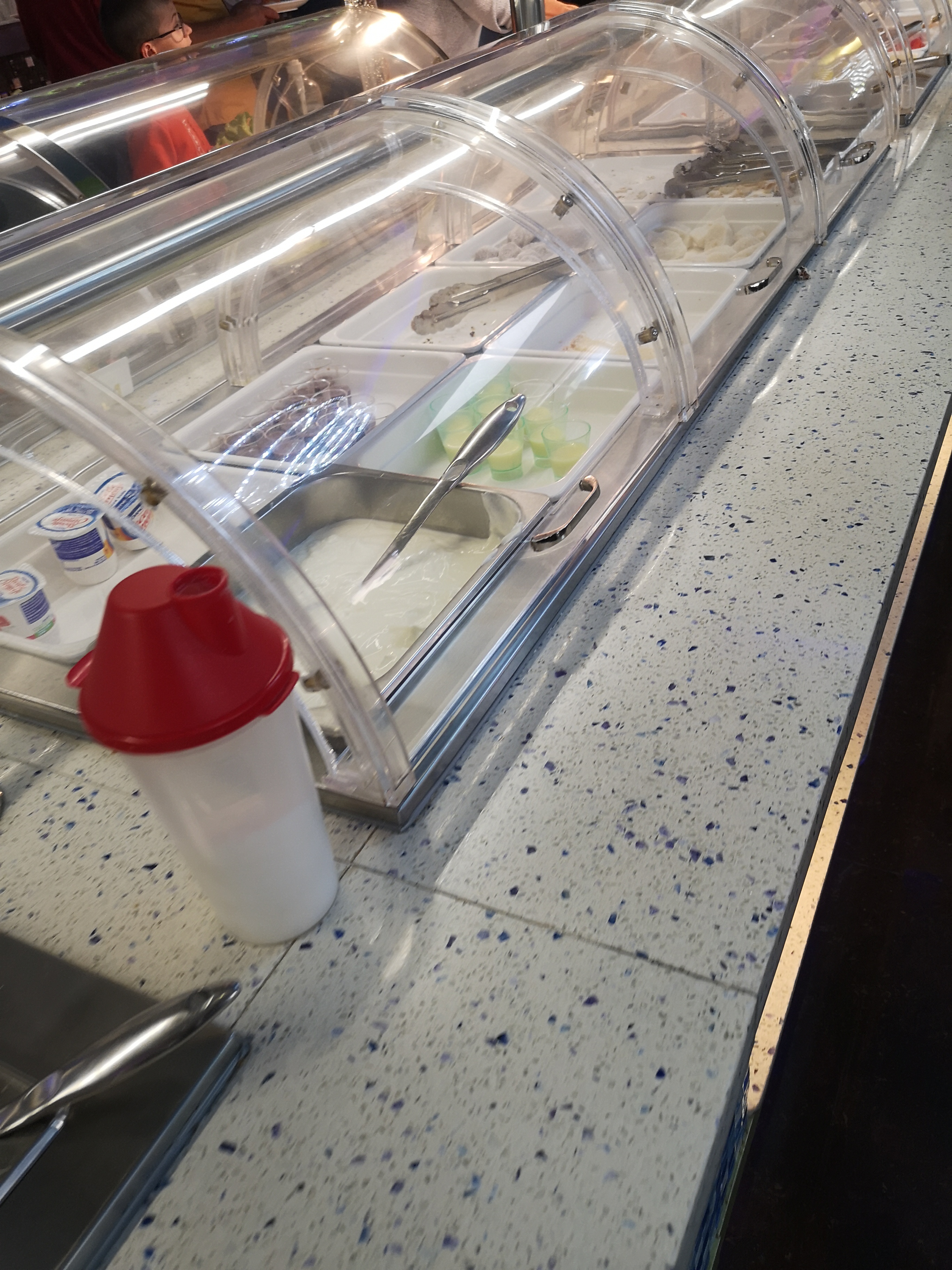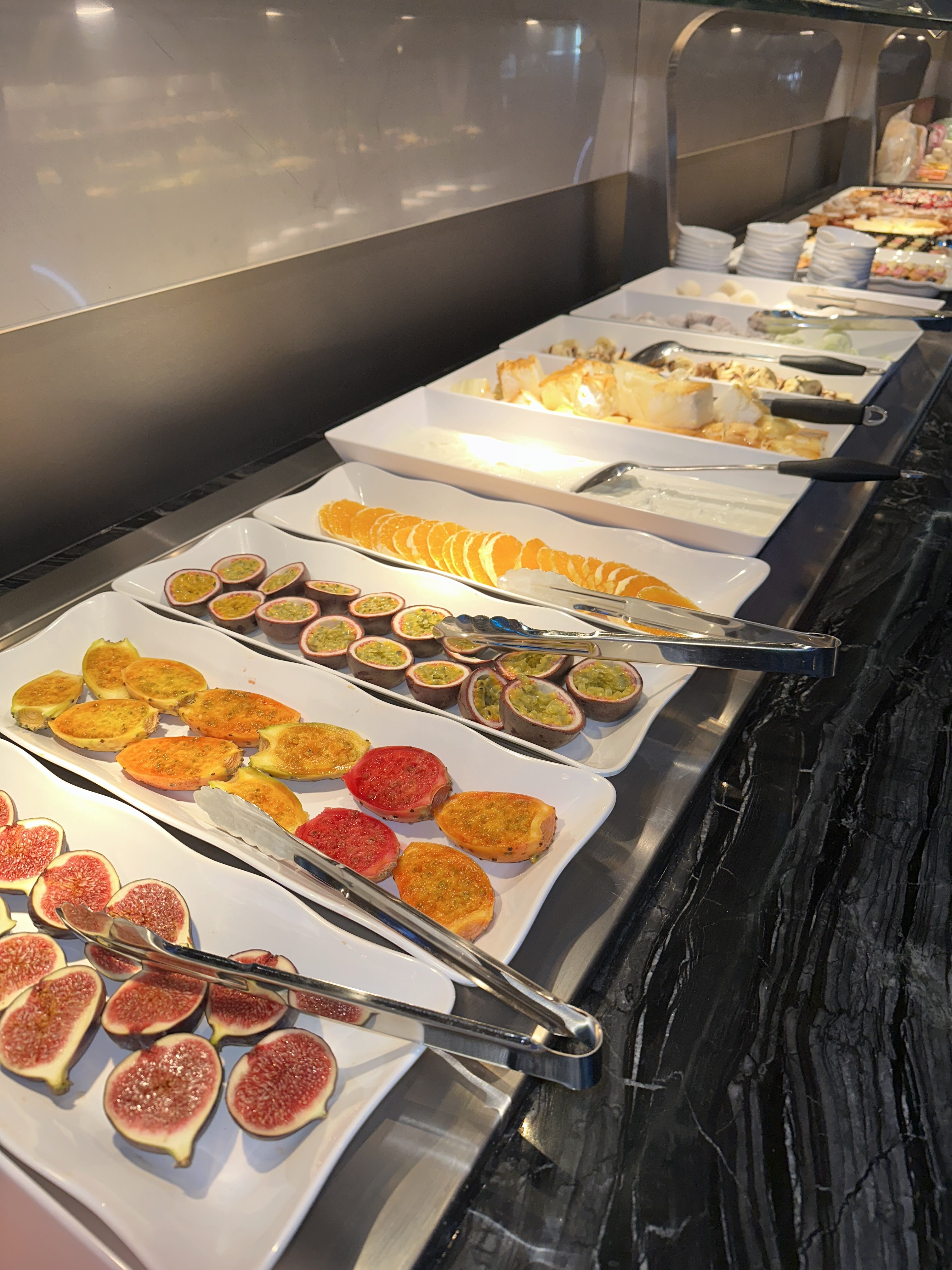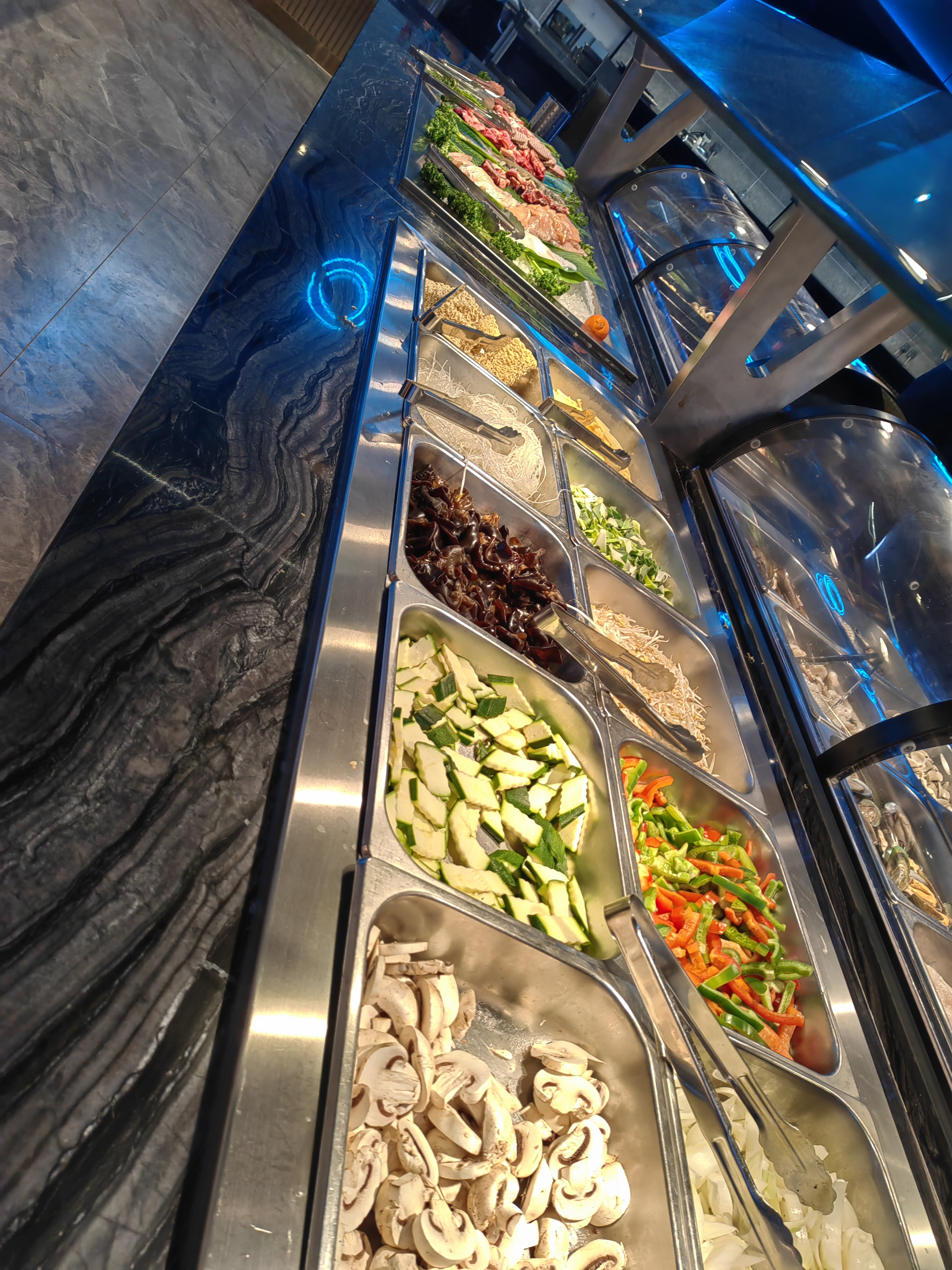 Arrivés vers 20h30, peu de choses dans les gastros, peu de choix. Trop gras, sans saveurs, desserts industriels à part crème vanille et chocolat. A part la serveuse sympathique et les robots serveurs, ce fut une grande déception. La personne qui encaisse ne demande même pas si ça s'est bien passé. Je ne recommande pas.