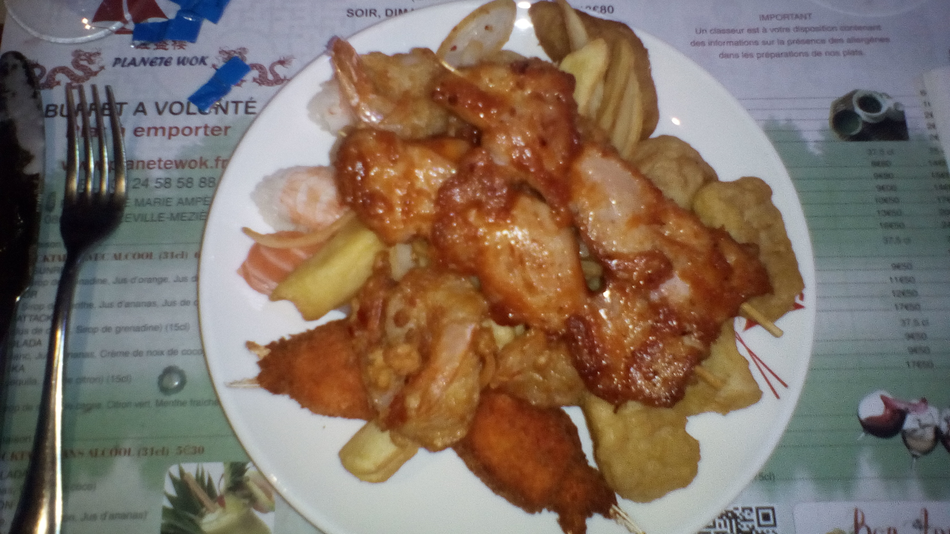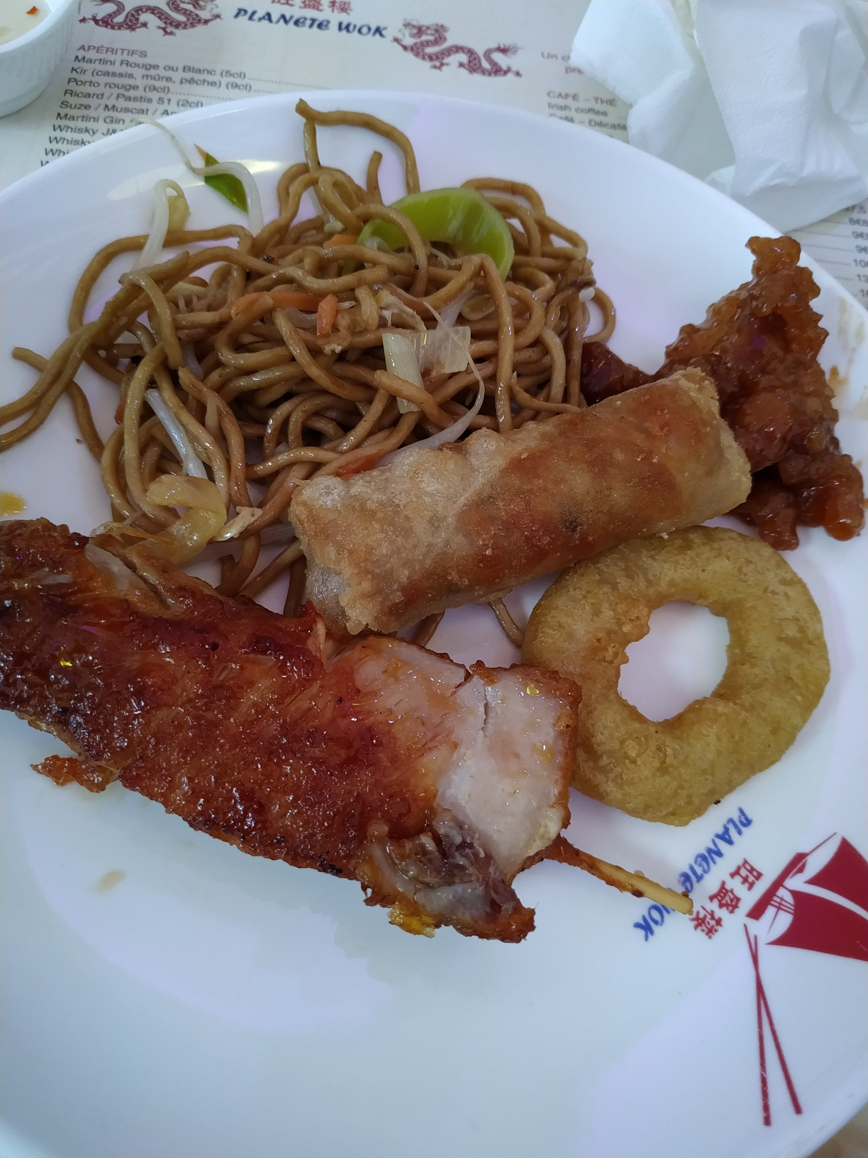 Déçue car l'ancien planète wok était vraiment mieux, la charcuterie n'avais l'air pas fraîche, yakitori avec un arrière goût qui n'inspire pas confiance... obligé d'aller au bar pour demander un pichet d'eau car le serveur avais oublier de nous l'apporter, plein de défauts malheureusement, ce n'est plus ce que c'était.