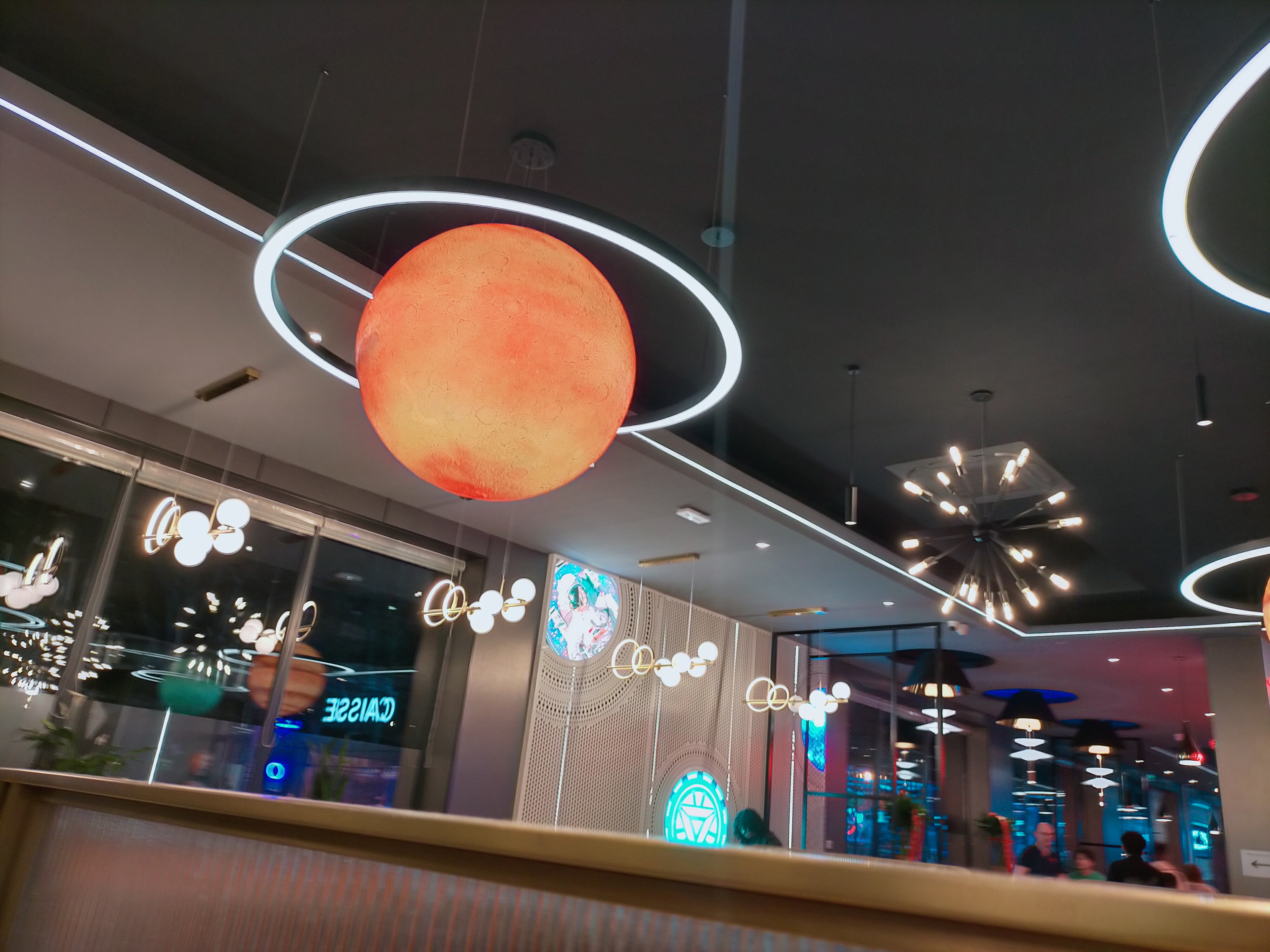 Bien que la décoration sur le thème de l'espace soit magnifique, il n'en est pas moins que la qualité de produits a fortement baissée: pâte à beignets épaisses, nems aux crevettes fade et avec un goût de veille, faux-filet nervuré etc. Cocktail (Shark attak) dont la grenadine ressort plus que le reste. Bref l'envie d'y retourner n'y est plus.