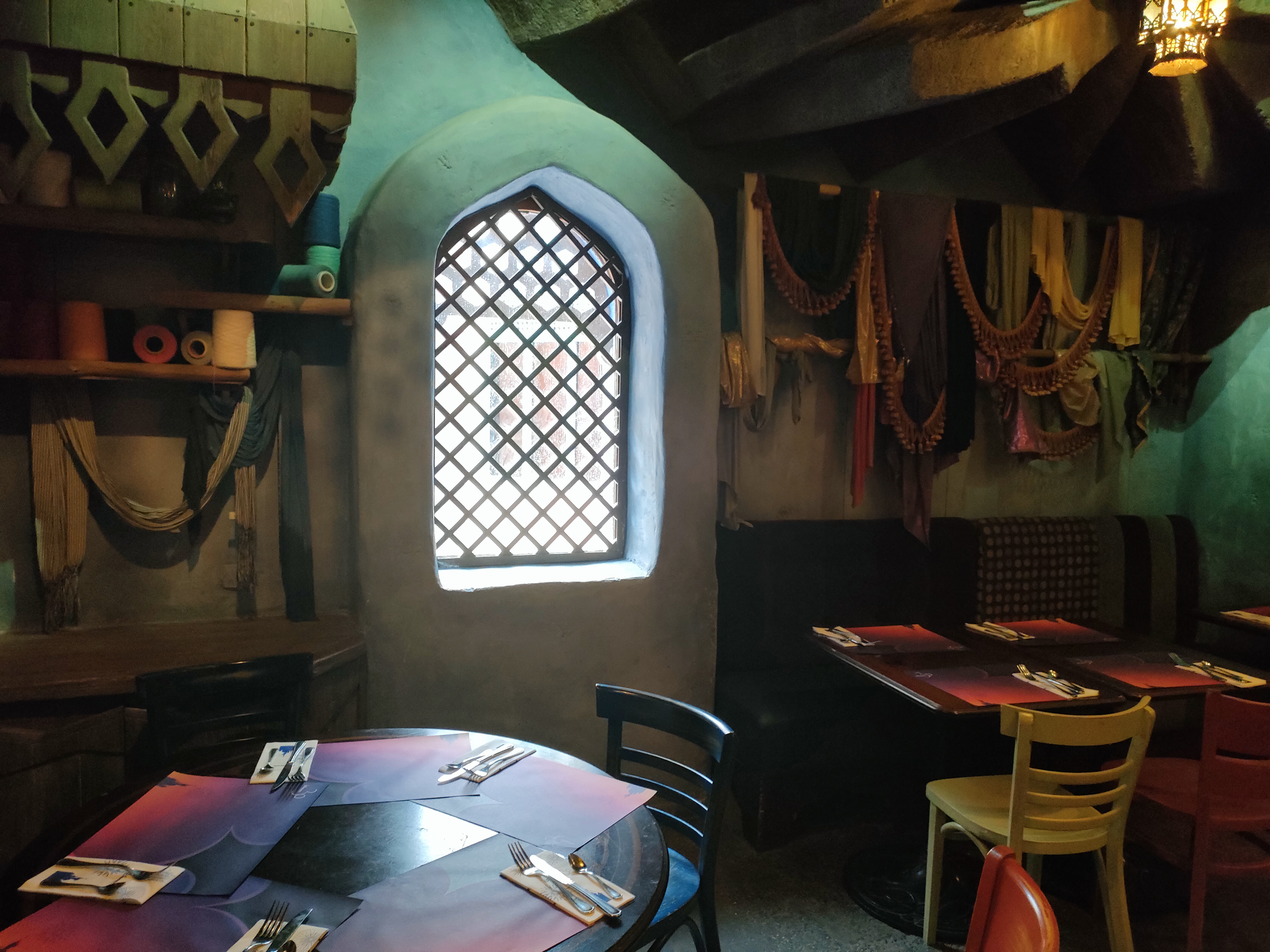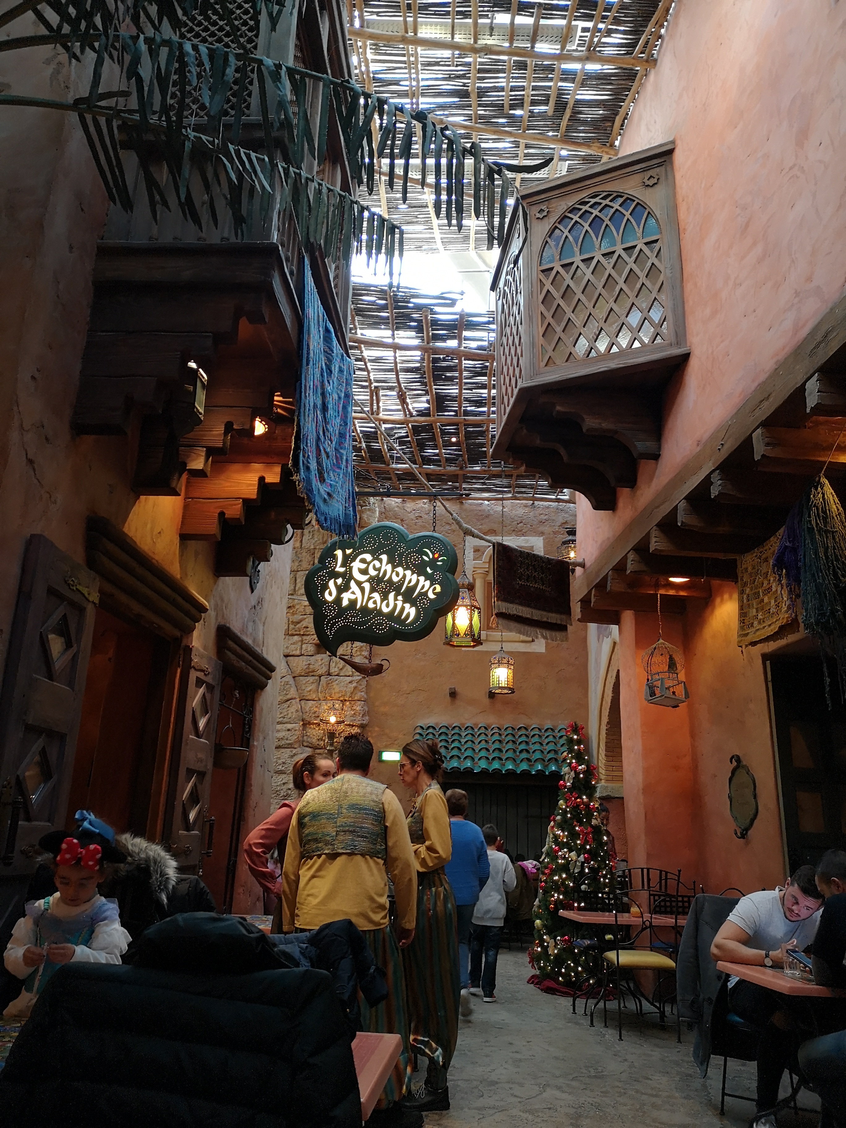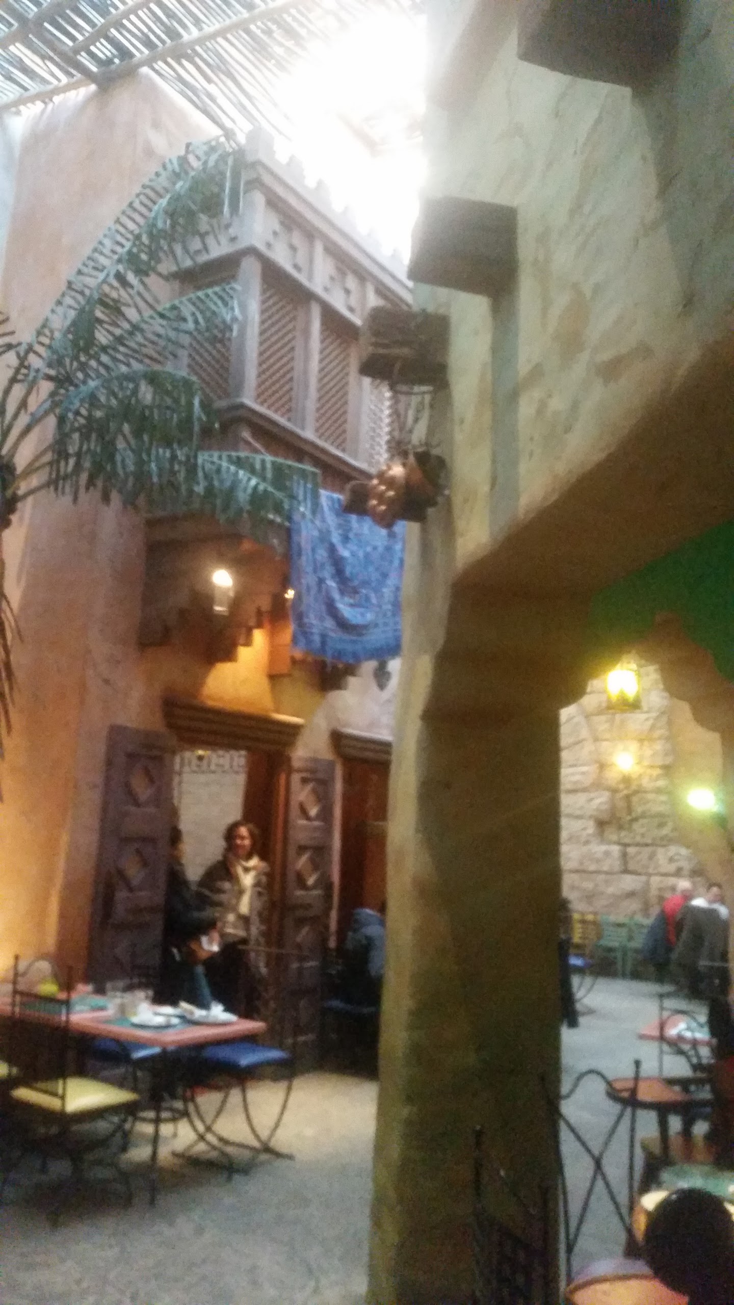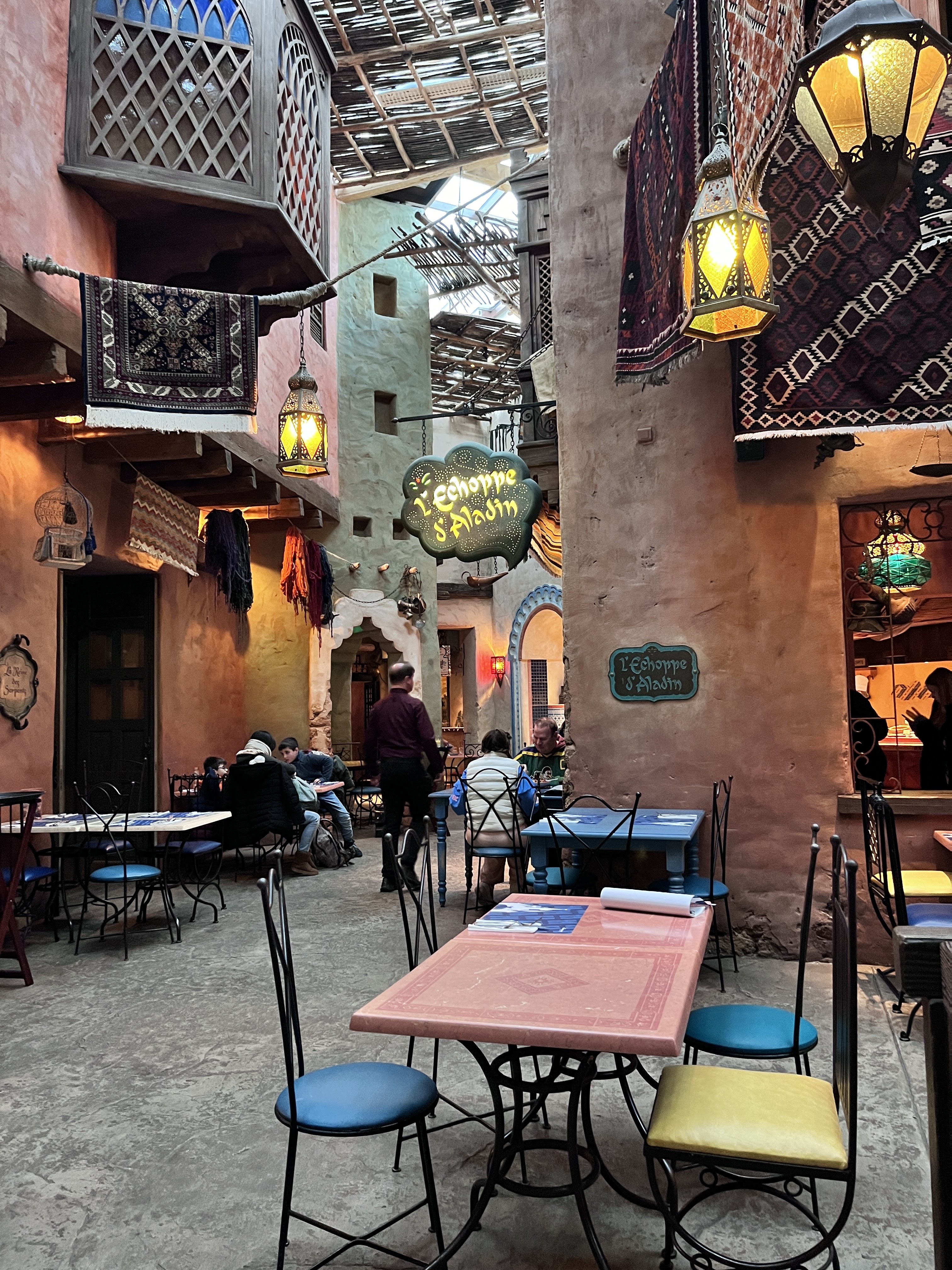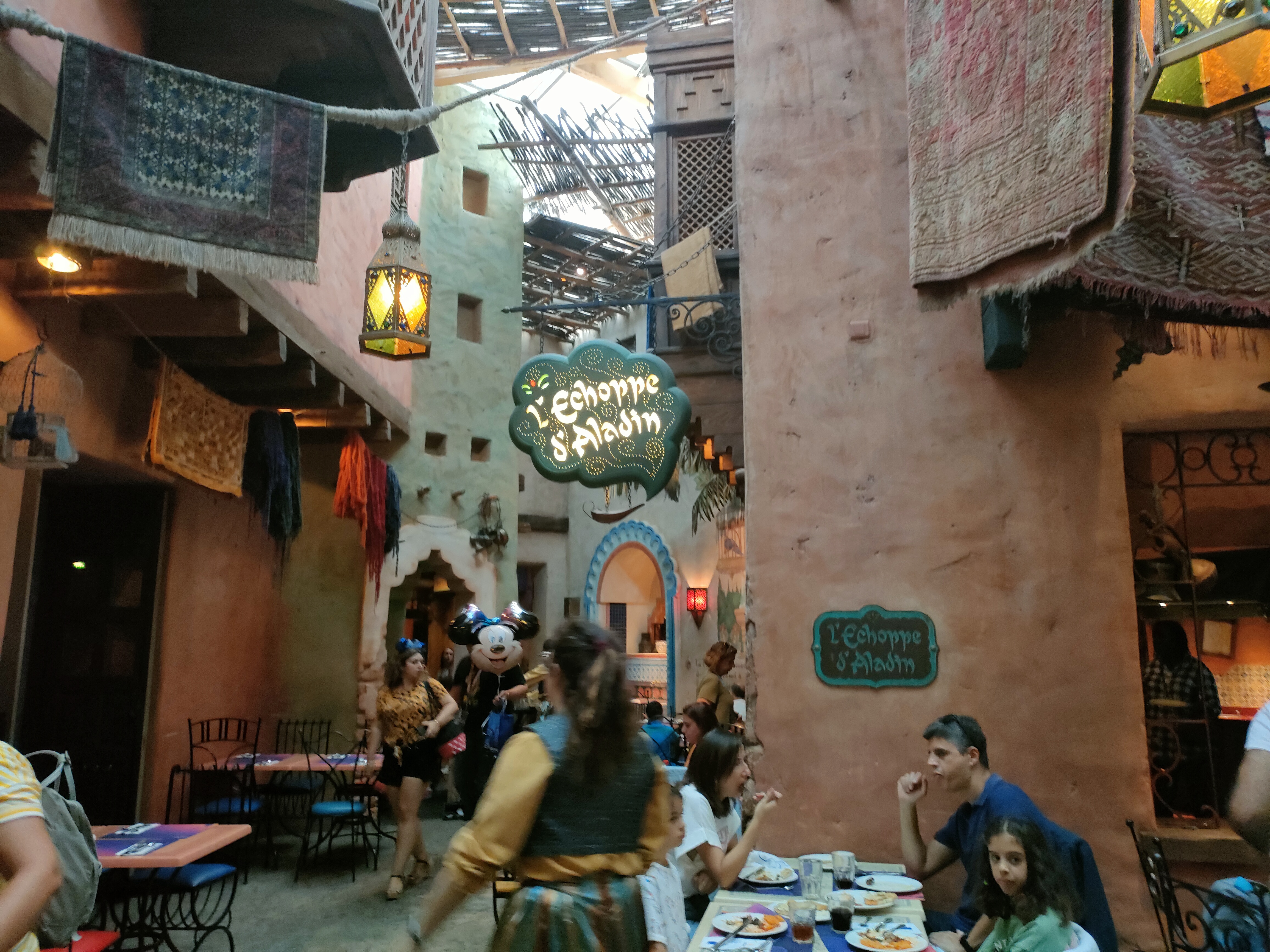 Je déconseille ce restaurant à Disney. Les décors sont certes magnifiques mais la nourriture n'est pas terrible et méfiez-vous vous risquez d'être malade. J'y ai mangé vendredi 28 août un couscous et j'ai été malade quelques heures après et impossible de me lever depuis à part pour une visite chez le médecin qui me confirme que c'est une intoxication alimentaire. De quoi gâcher la fin d'un tel séjour. Heureusement que nous avions mangé là-bas le dernier jour. Payer si cher pour être malade... allez plutôt aux restaurants pirates ou ratatouille... mais fuyez celui ci même si cest le décor donne envie. Le prix est excessif pour manger quelques choses d aussi médiocre ! Et visiblement pas frais...