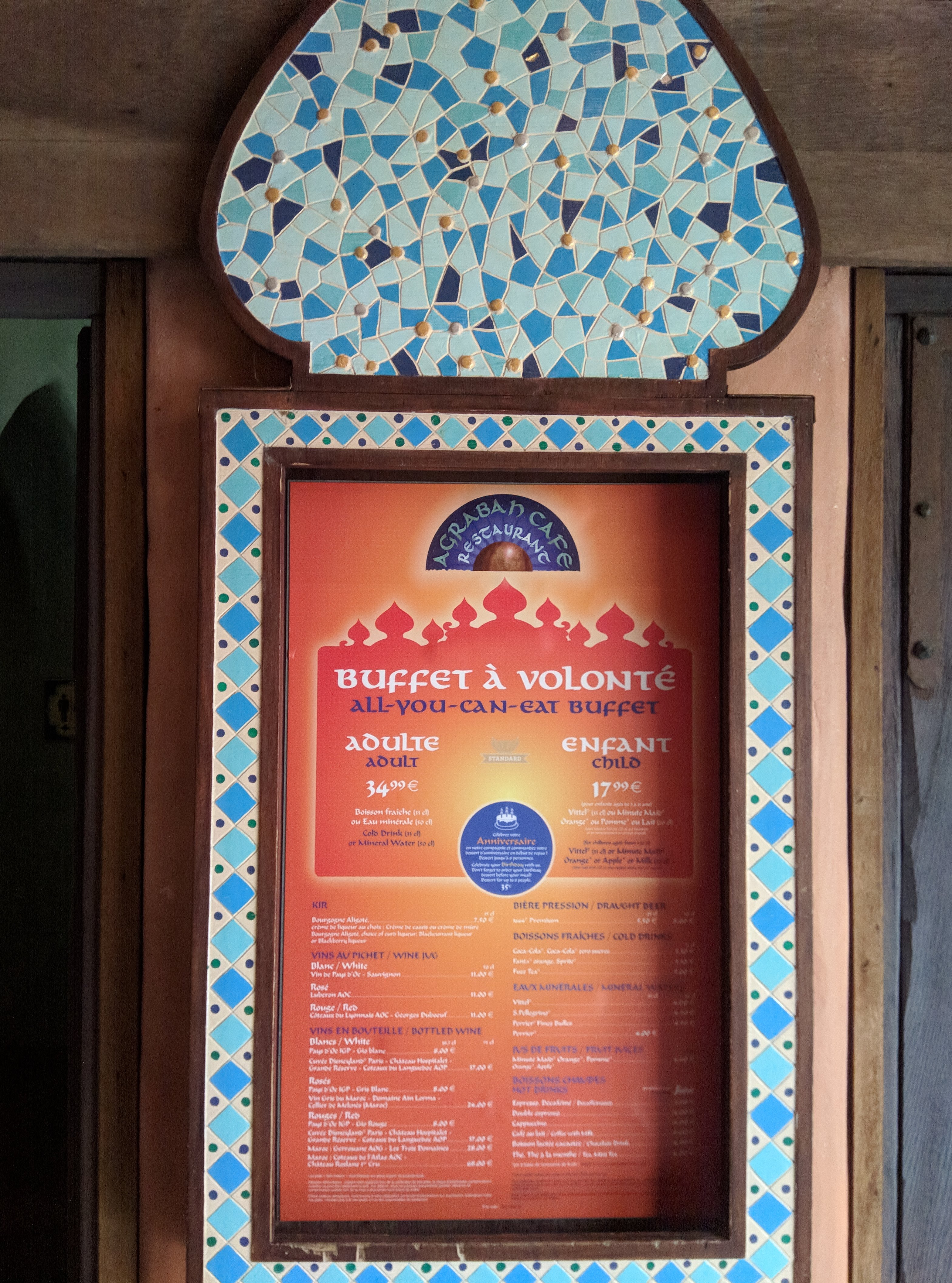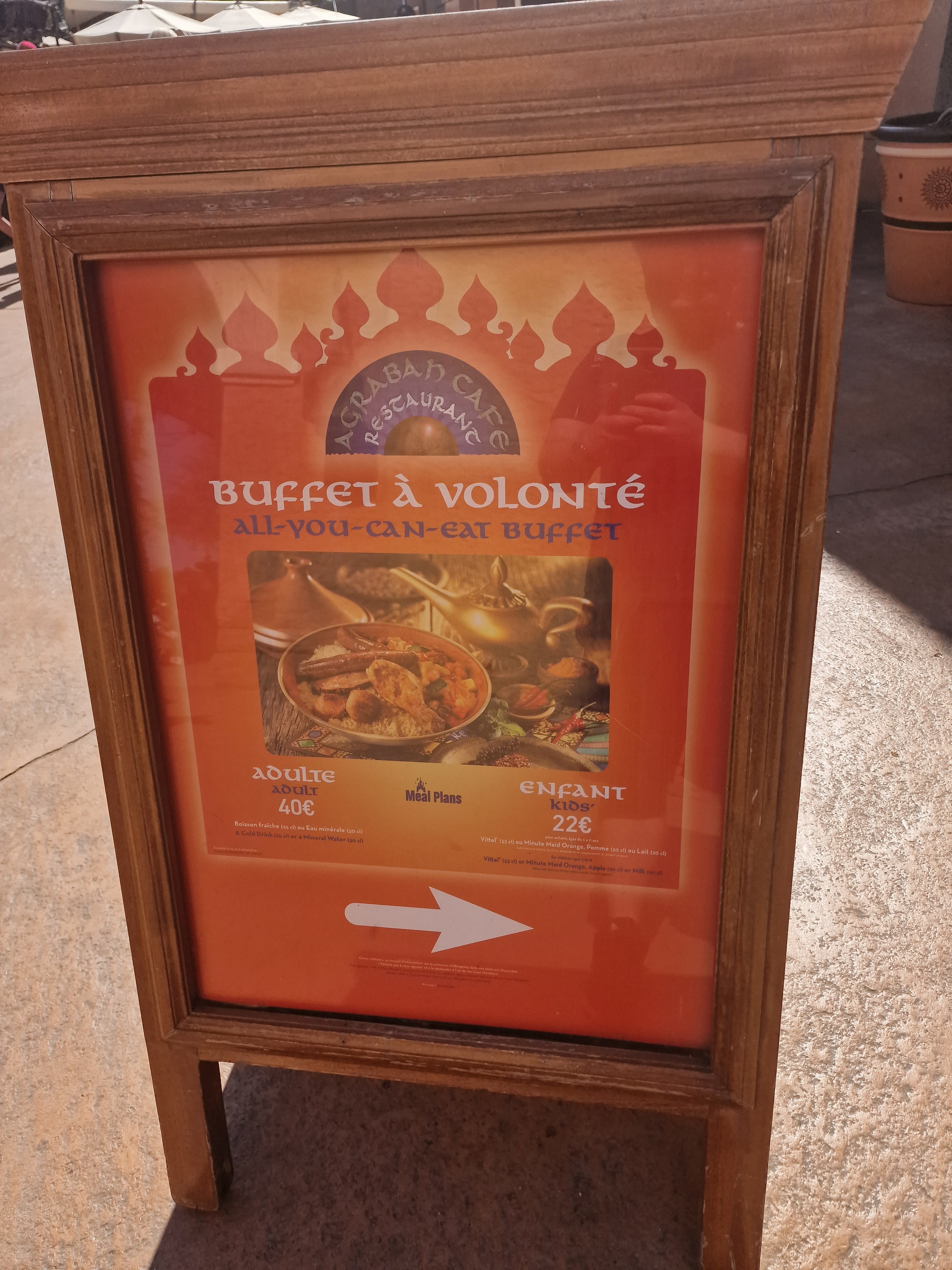 Le buffet à volonté est un plus. Cependant pour les adeptes de vrais couscous, je ne recommande pas car celui-ci est un peu fade. Je conseille tout de même ce restaurant pour le cadre et l'ambiance, c'est un endroit à découvrir à Disneyland Paris 😊